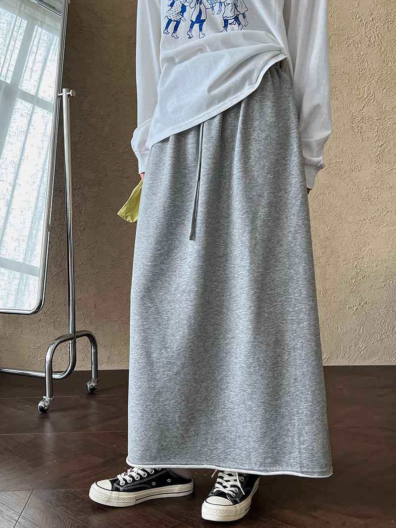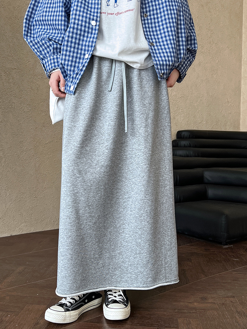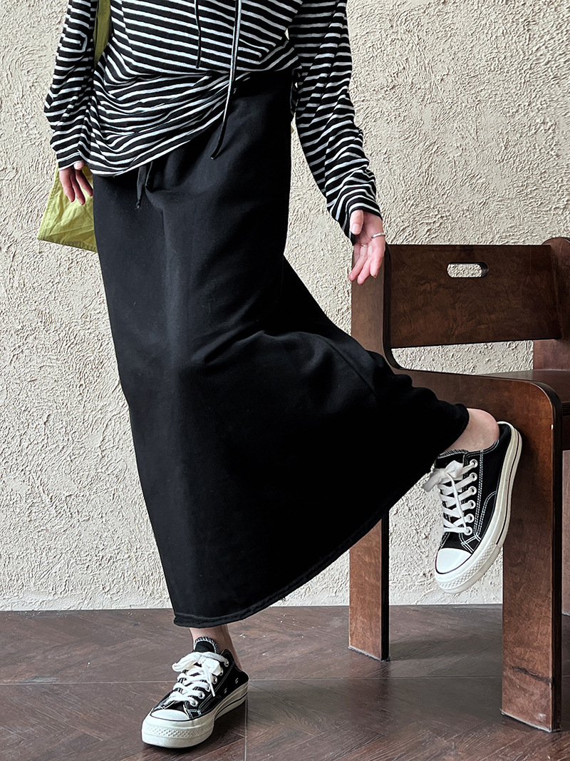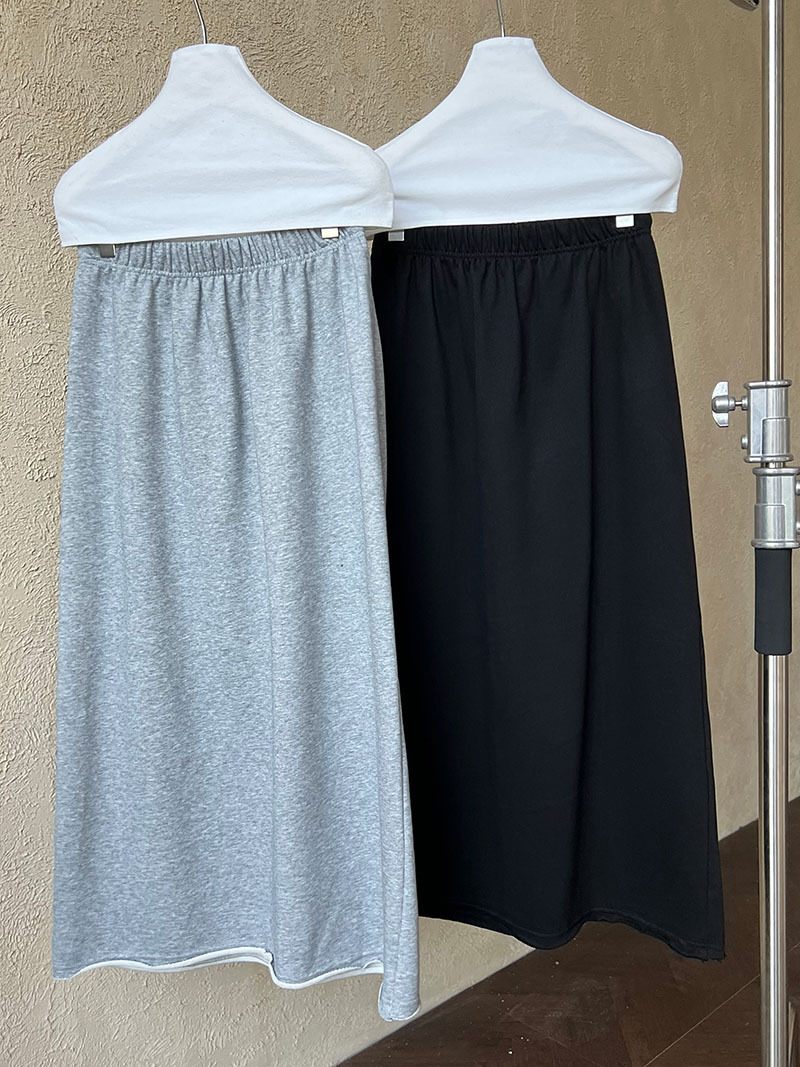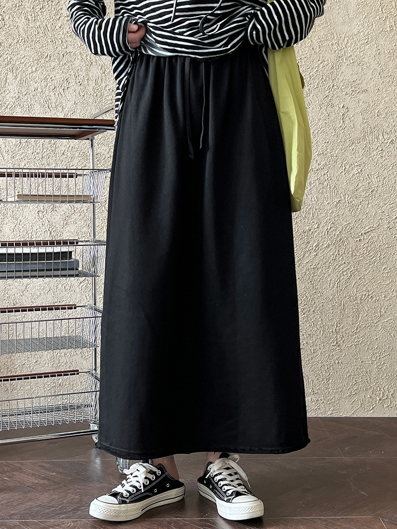休閒慵懶感卷邊鬆緊腰裙子-2色