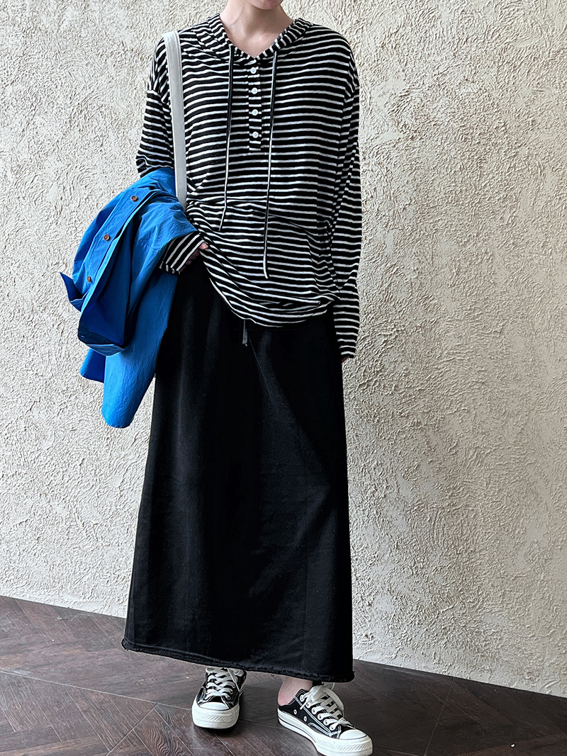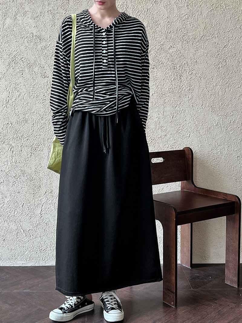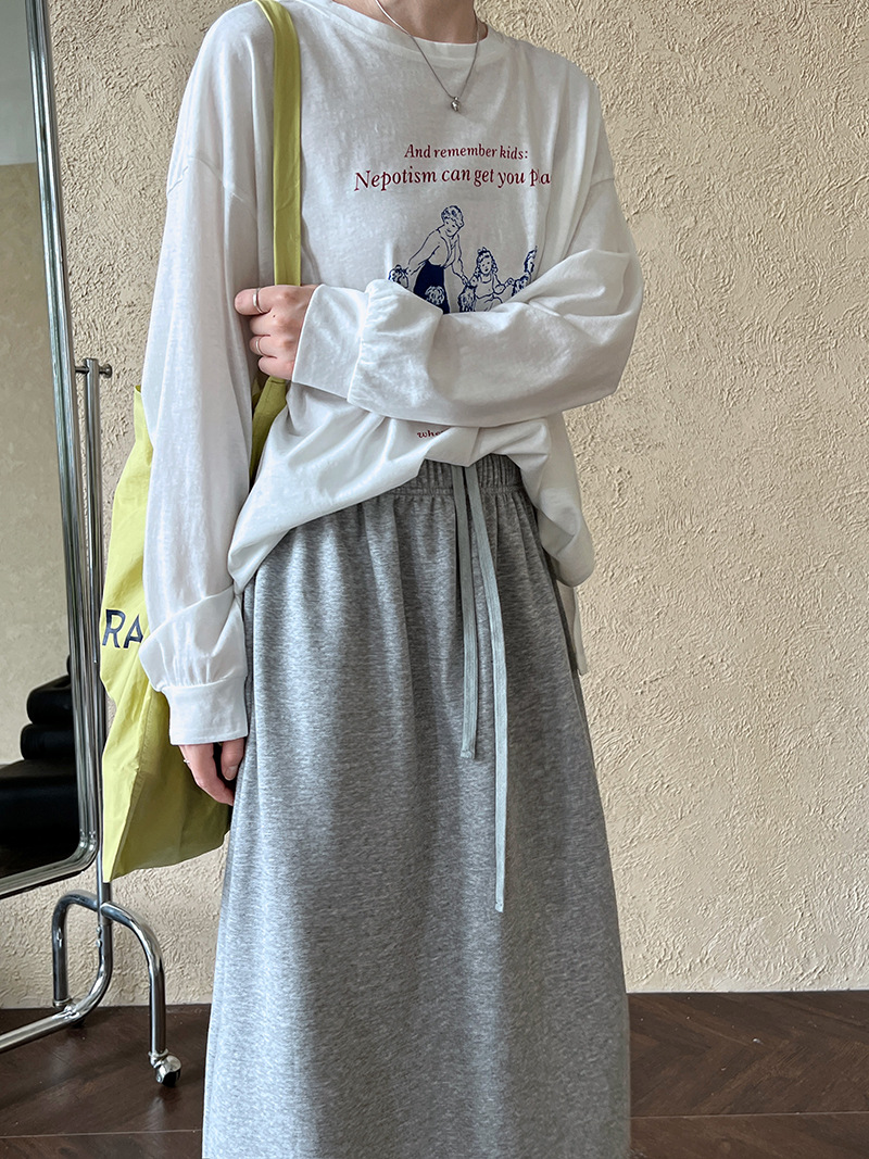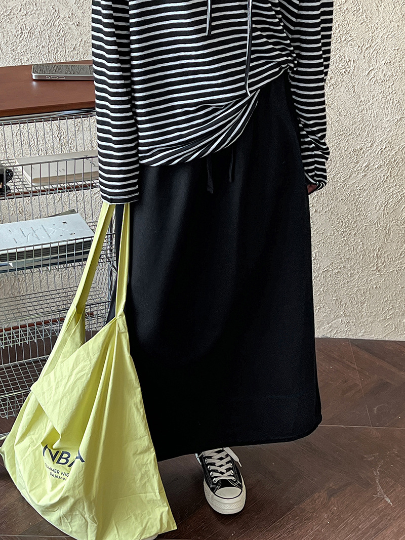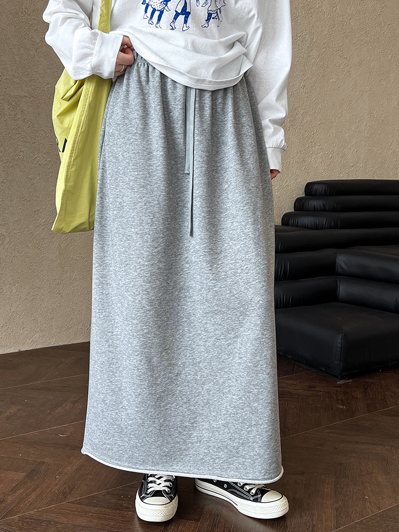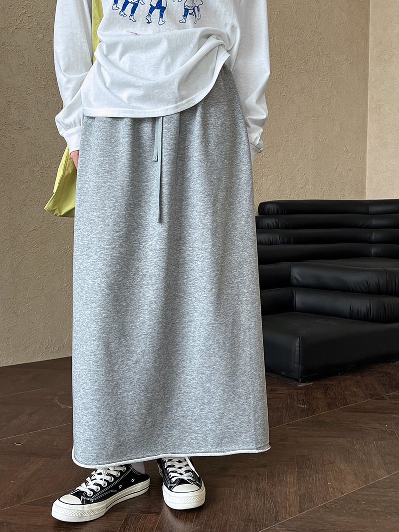 休閒慵懶感卷邊鬆緊腰裙子-2色