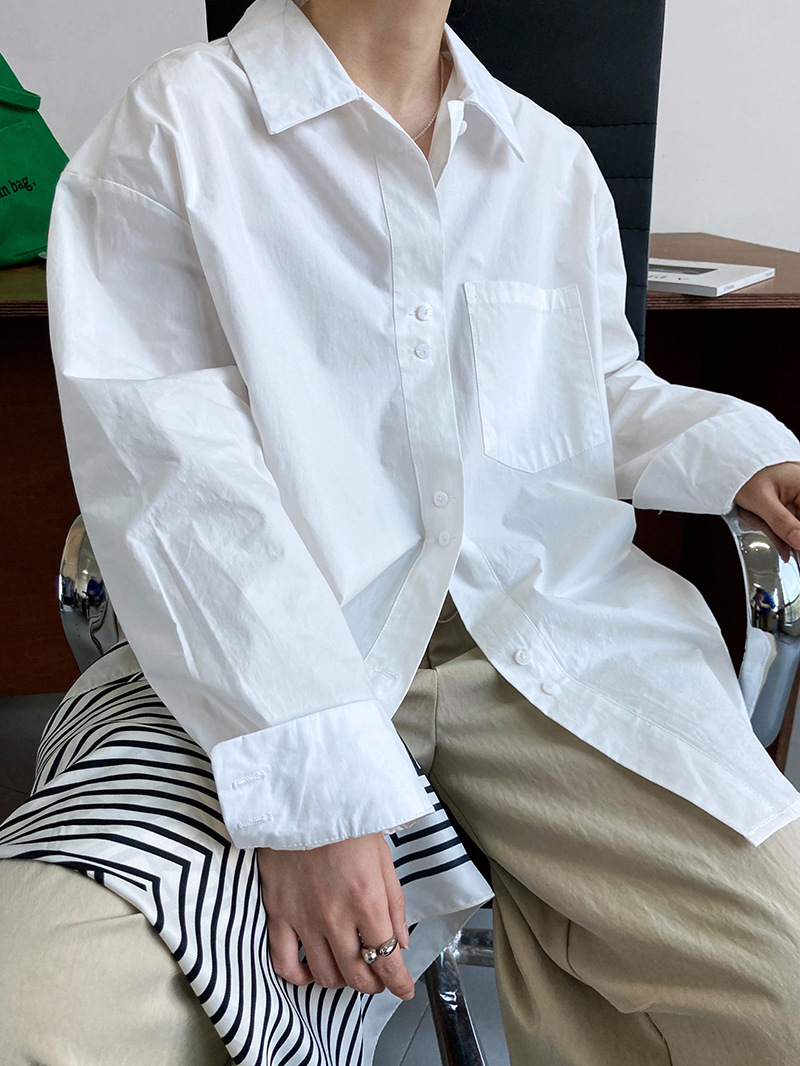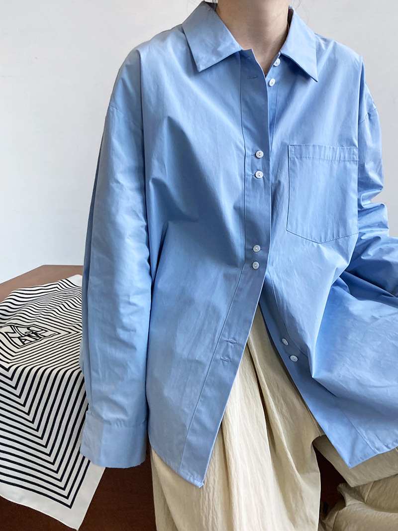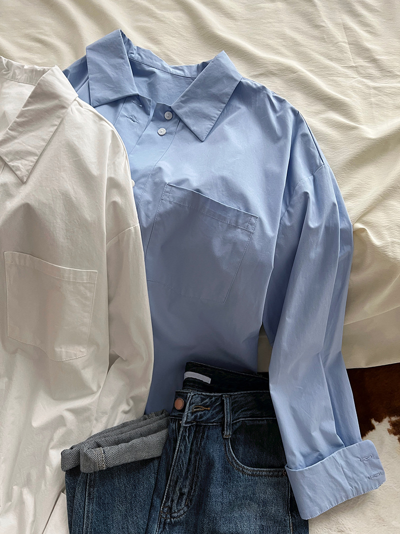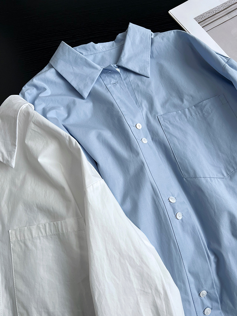 休閒簡約純色慵懶寬鬆襯衫-2色