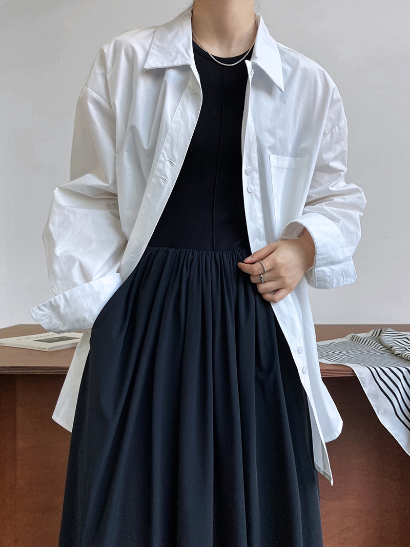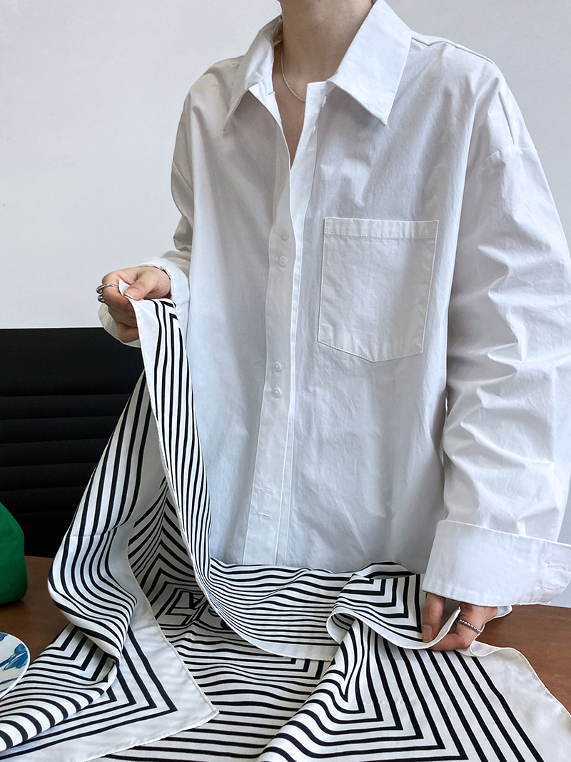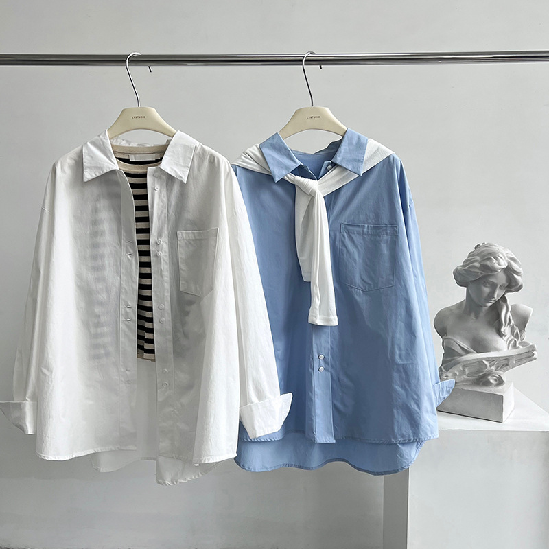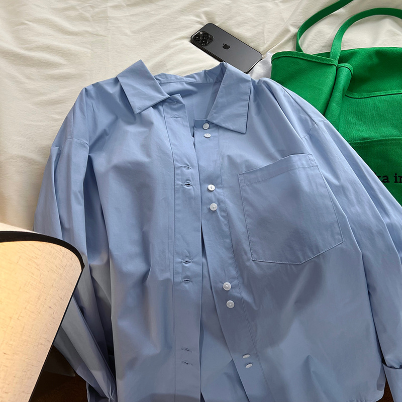 休閒簡約純色慵懶寬鬆襯衫-2色