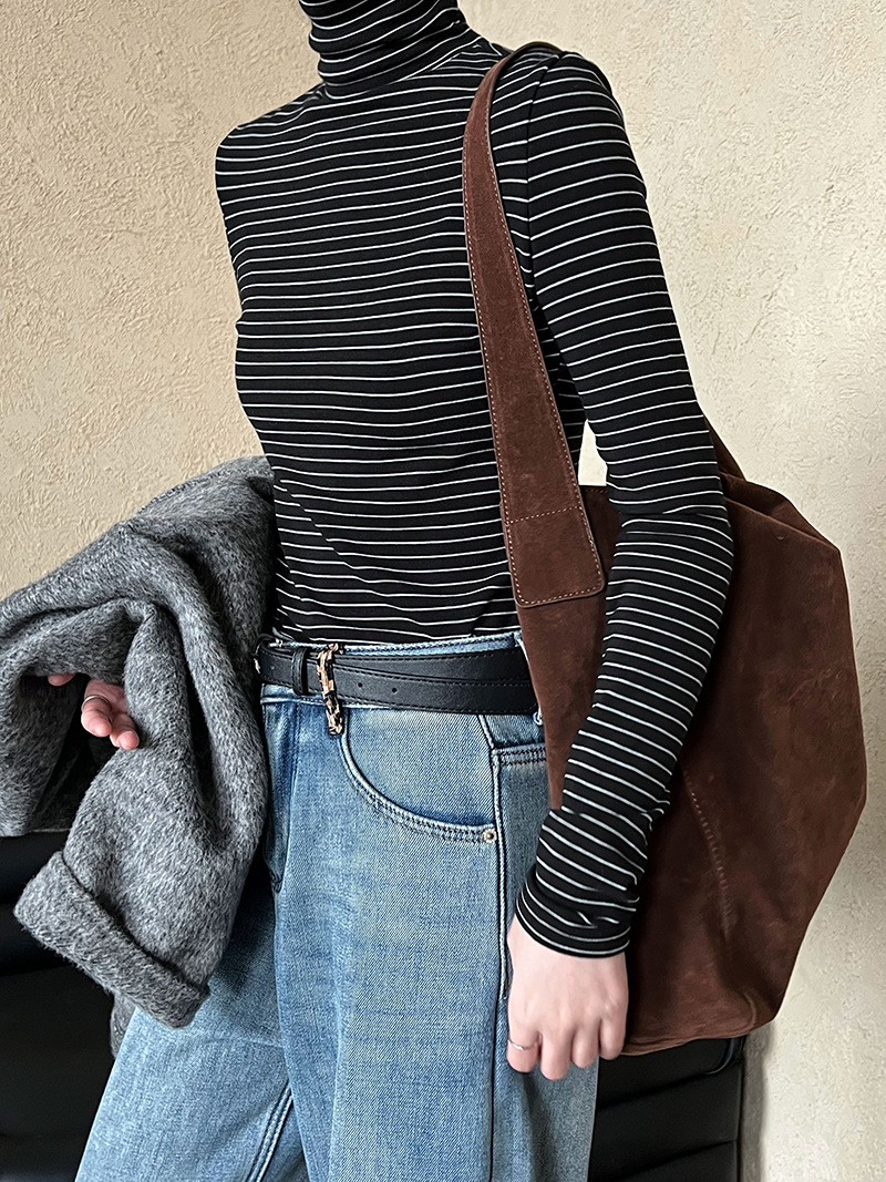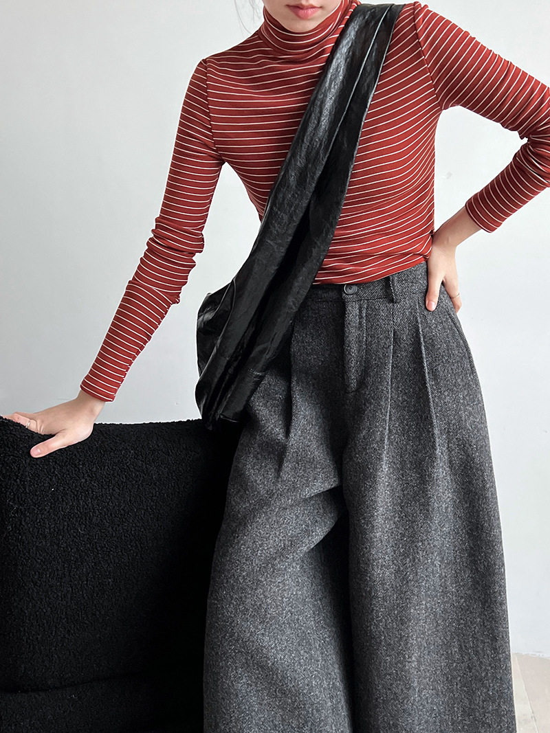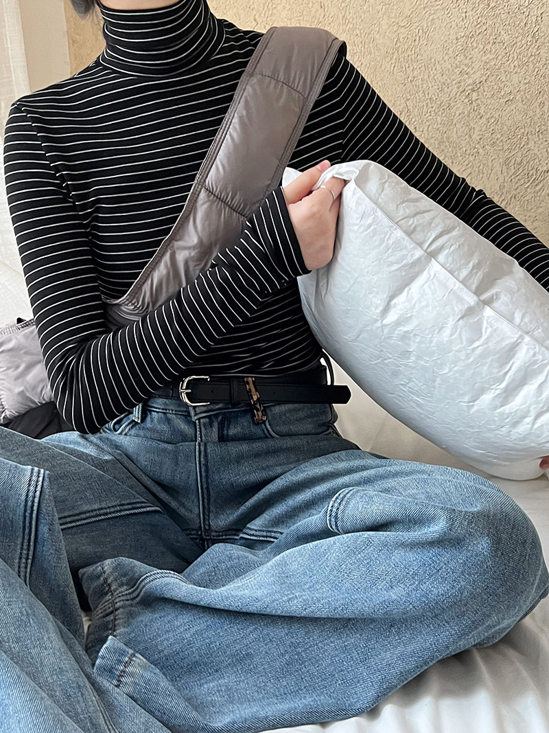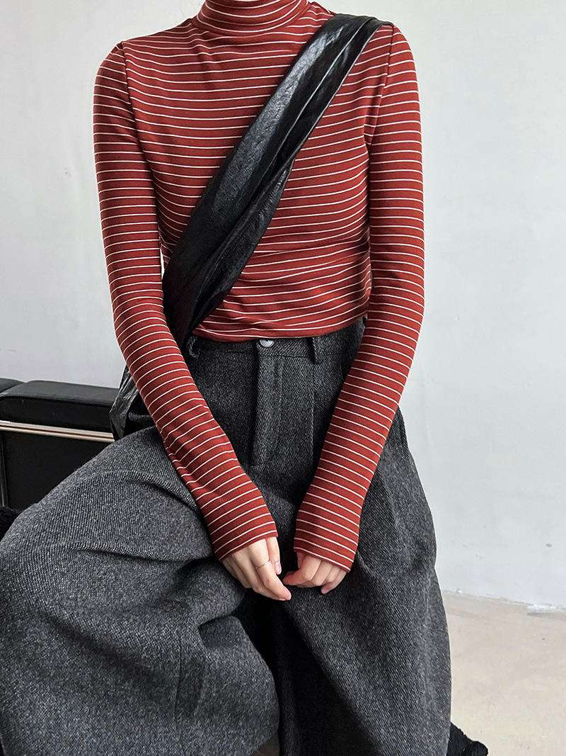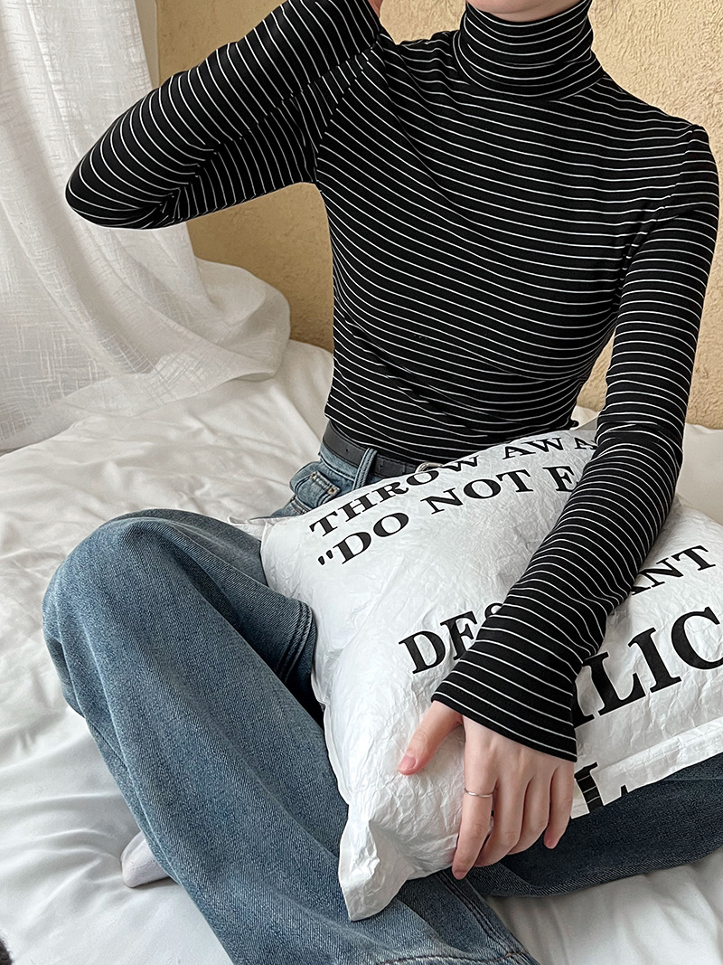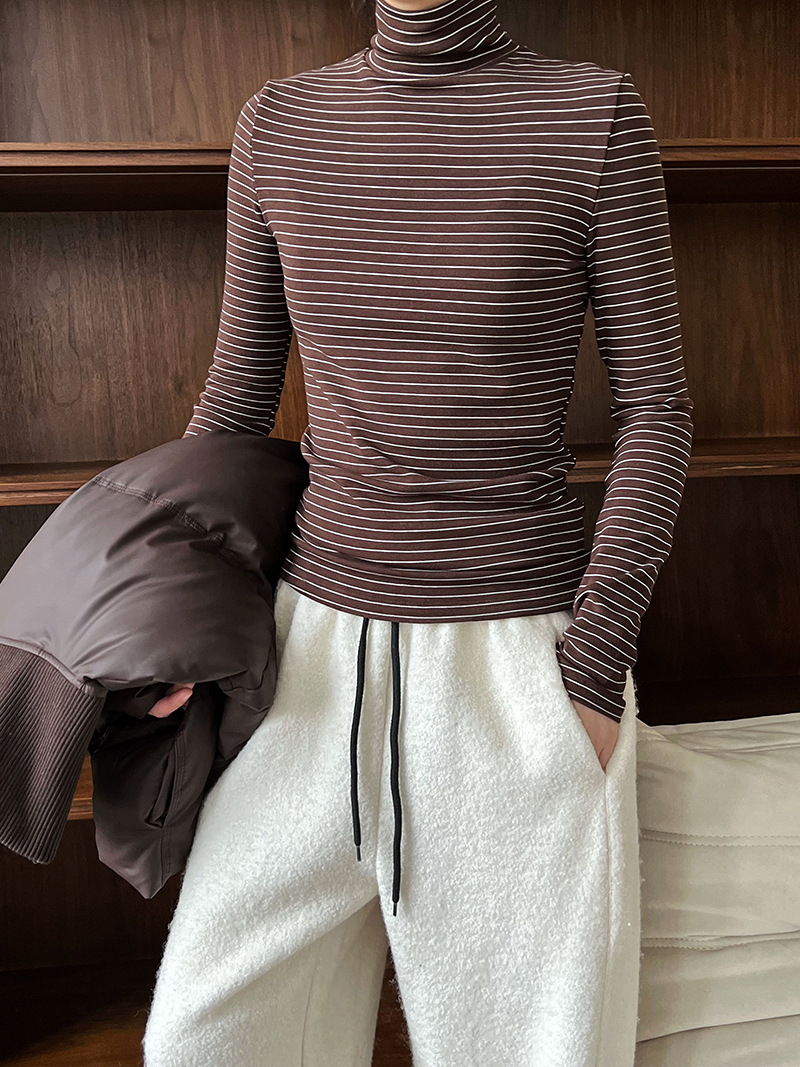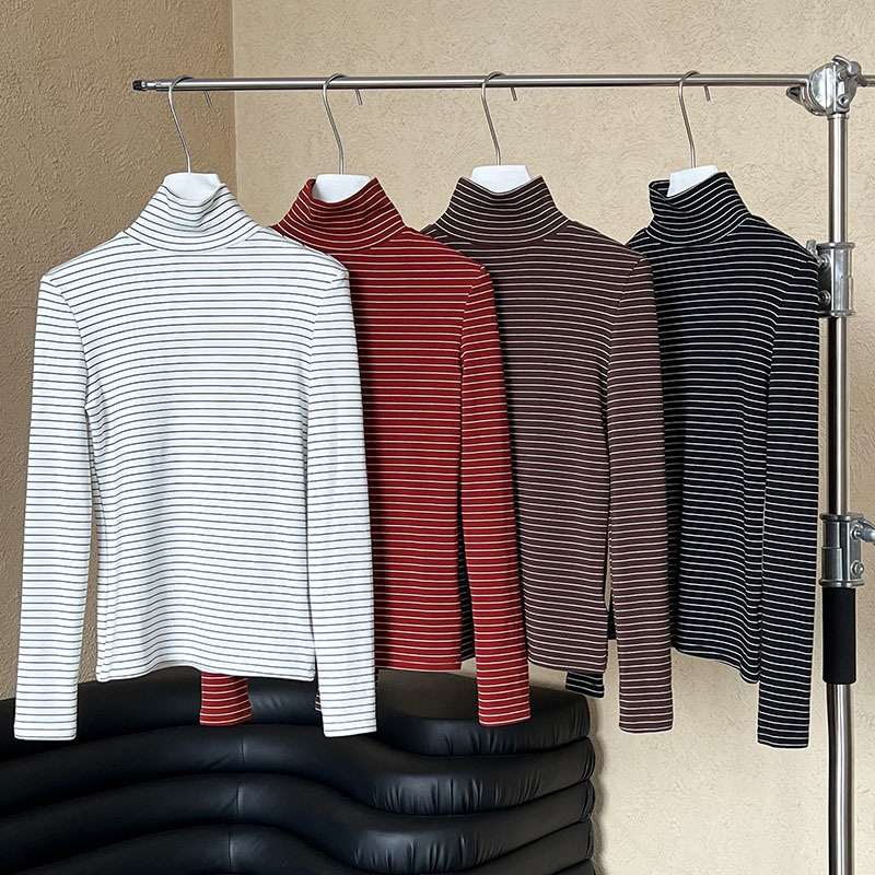 半高領條紋加絨磨毛打底衫-4色