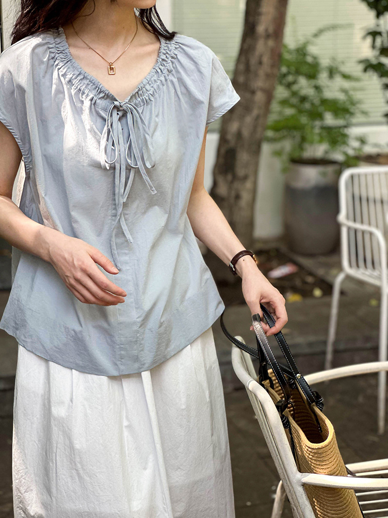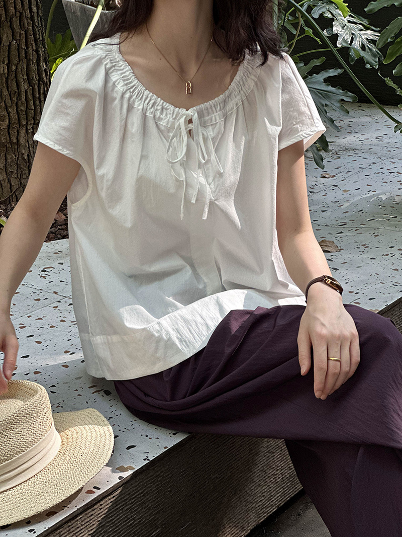 寬鬆設計透氣蝴蝶結優質柔軟襯衫-2色