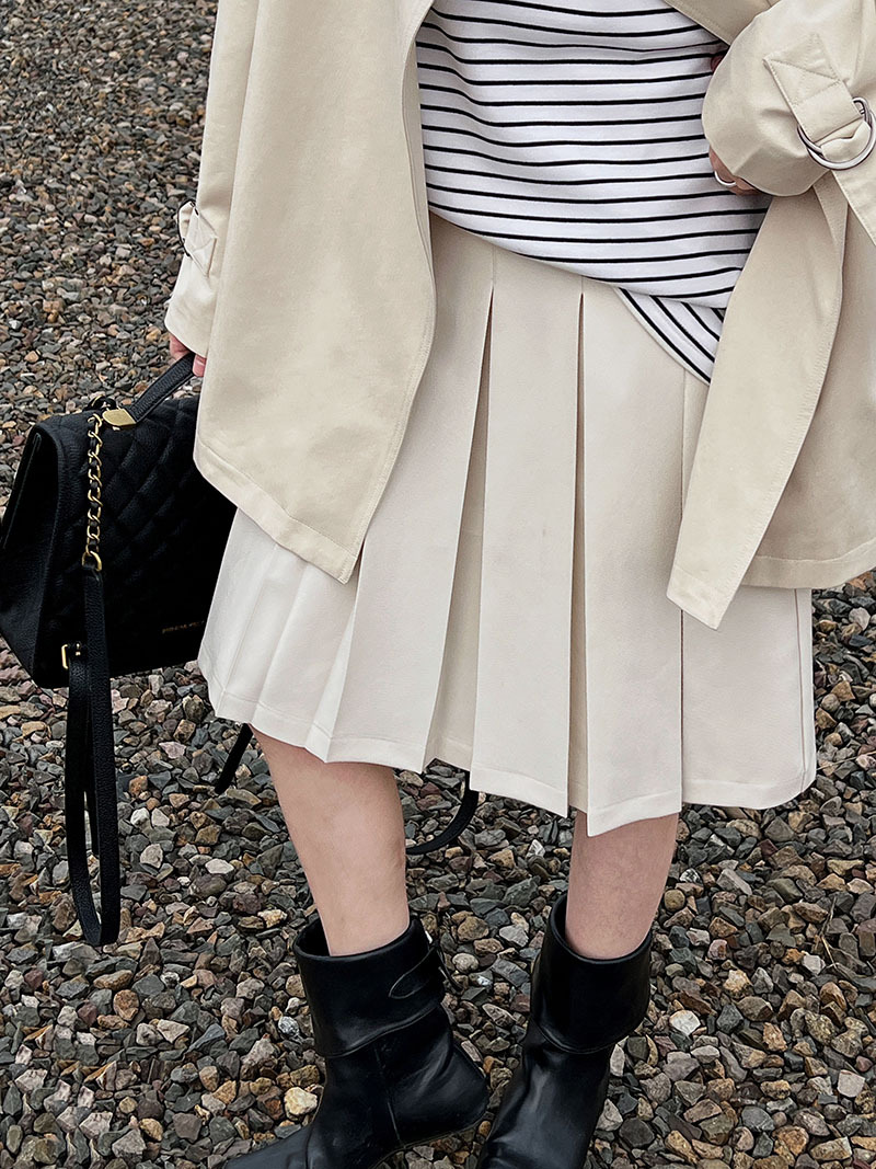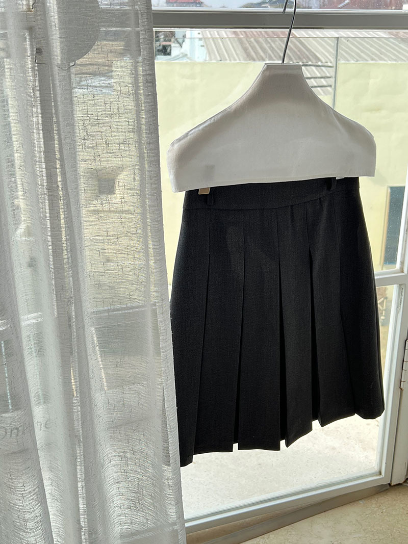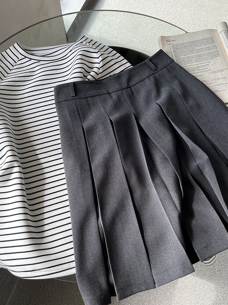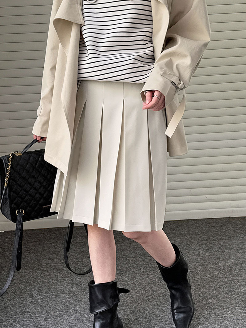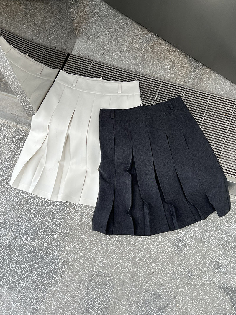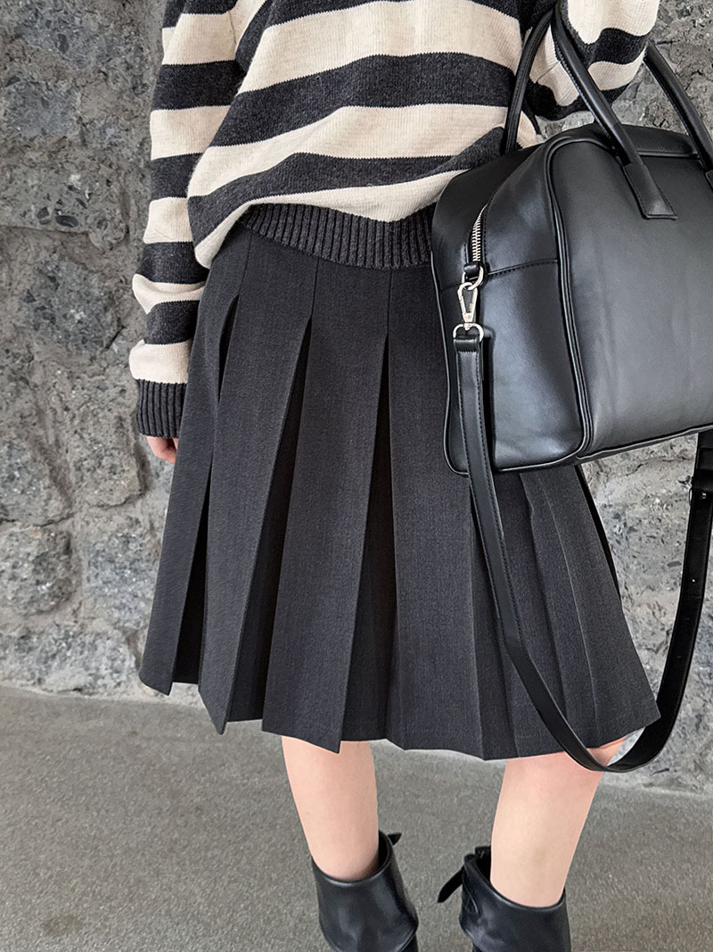 復古系學院風高腰顯瘦百褶半身裙-2色