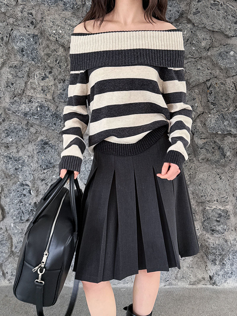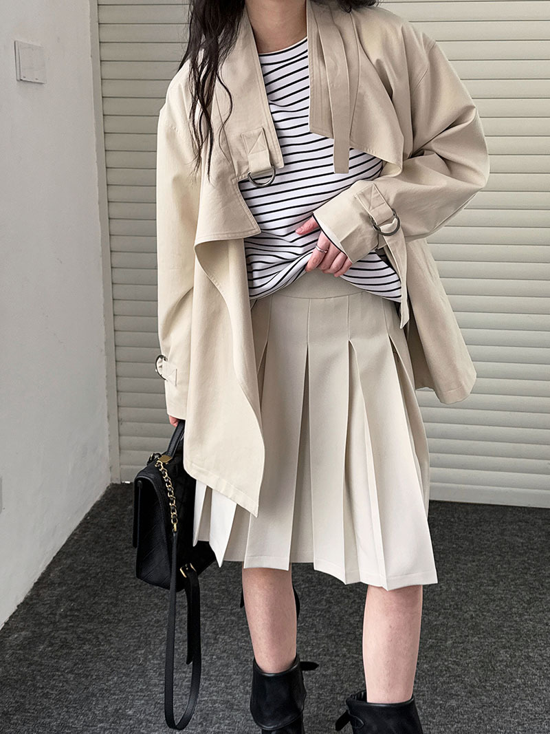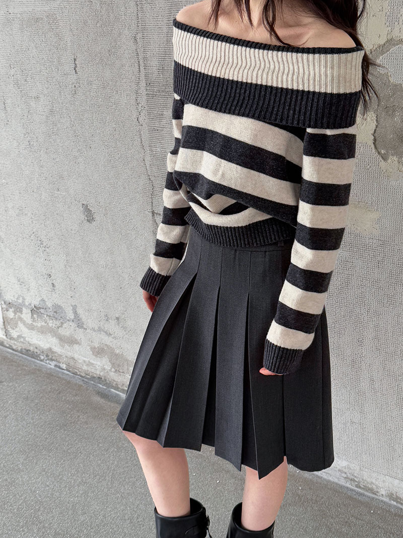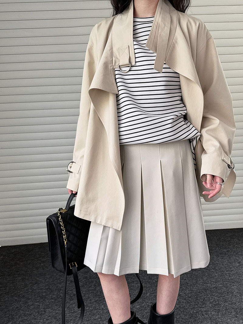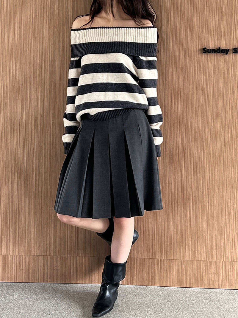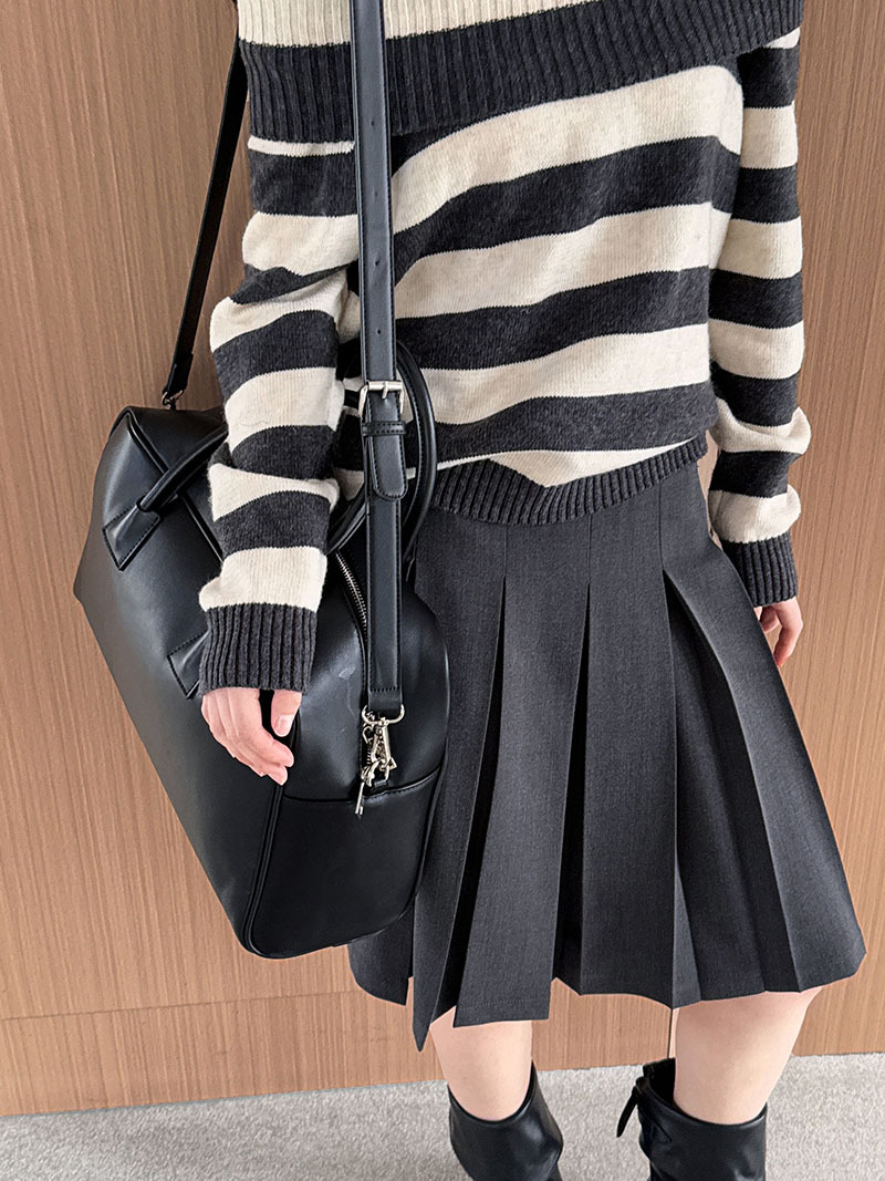 復古系學院風高腰顯瘦百褶半身裙-2色