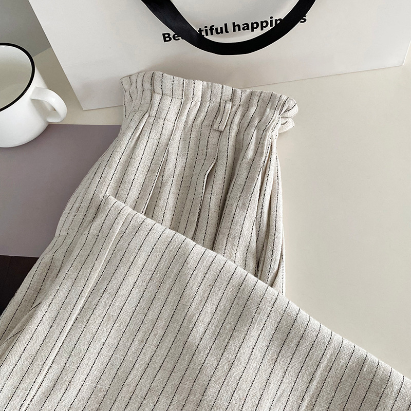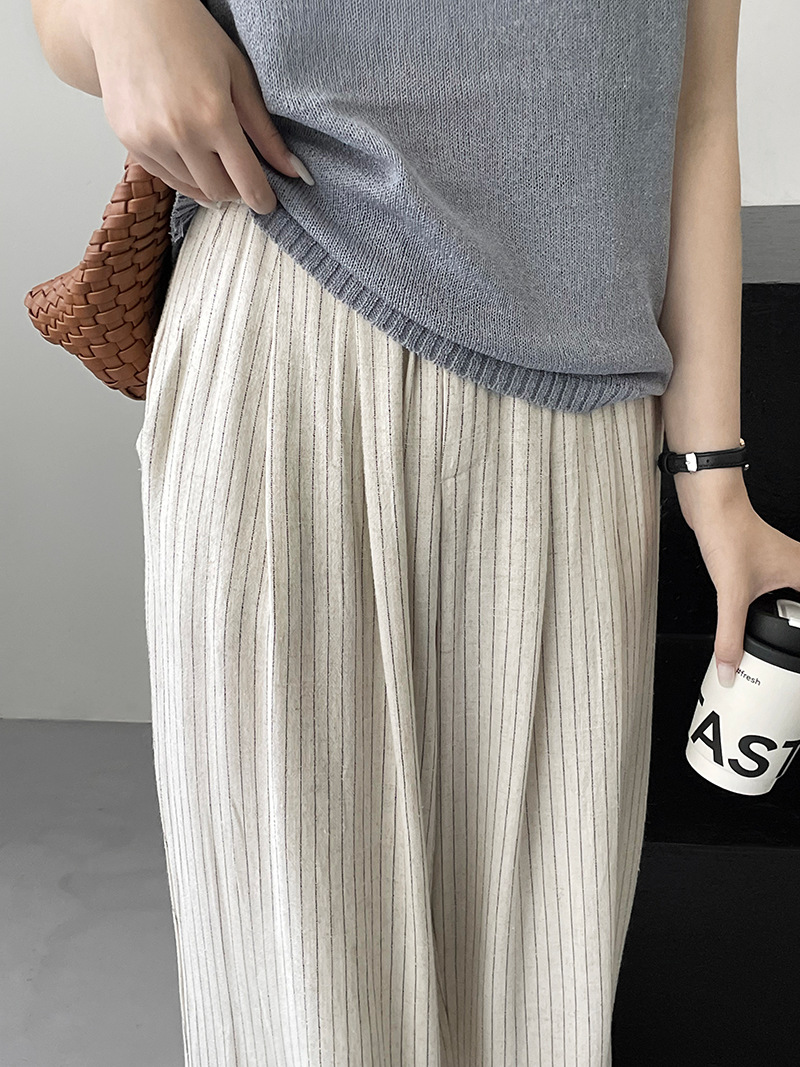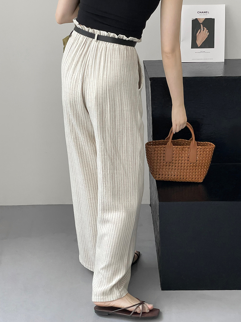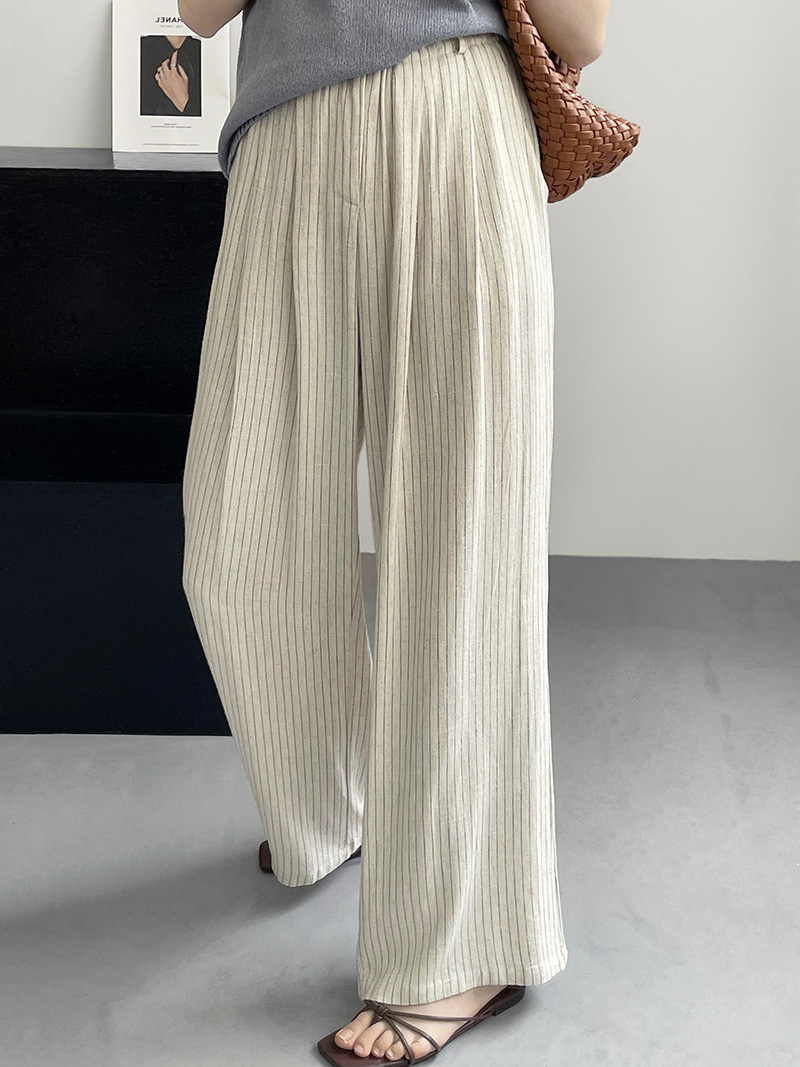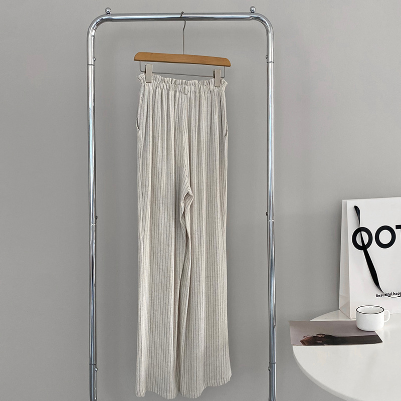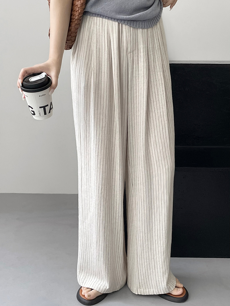 慵懶風垂感鬆緊腰直筒闊腿褲