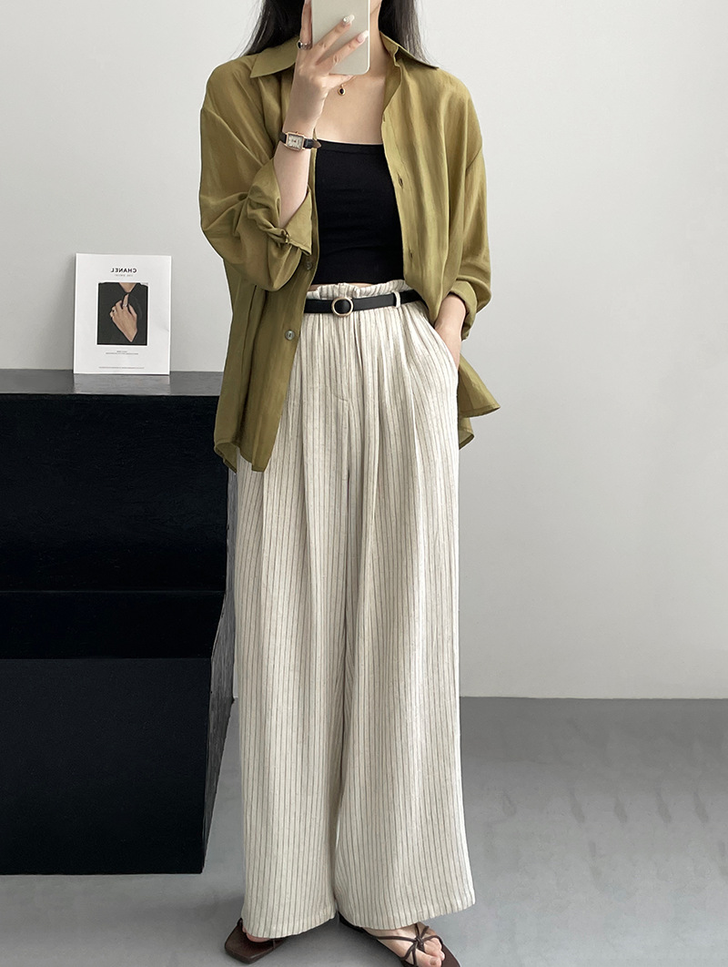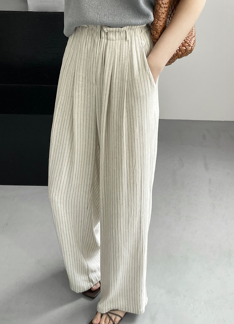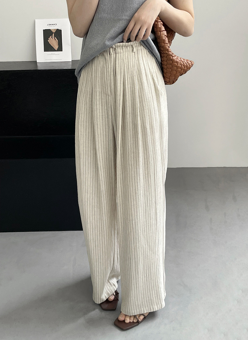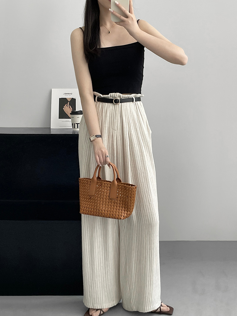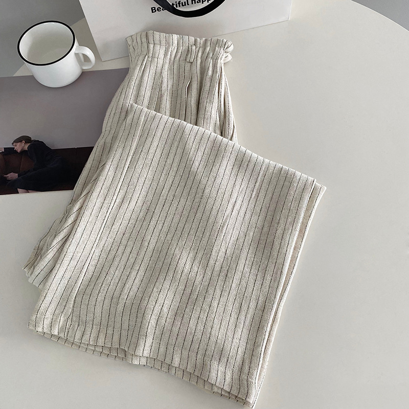 慵懶風垂感鬆緊腰直筒闊腿褲