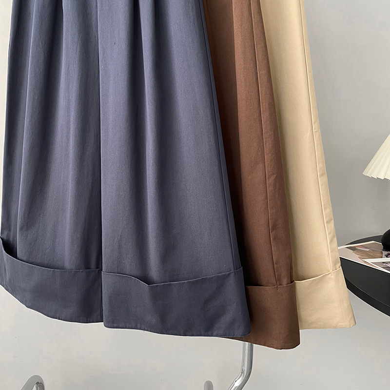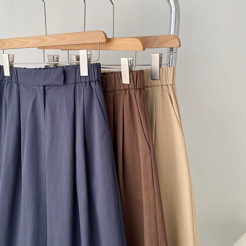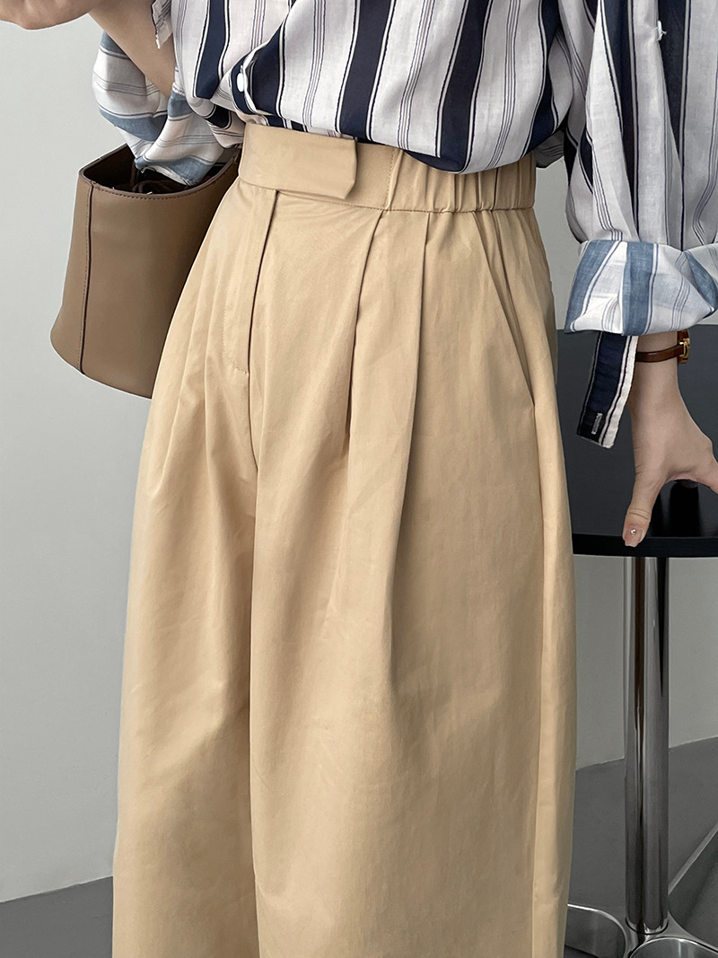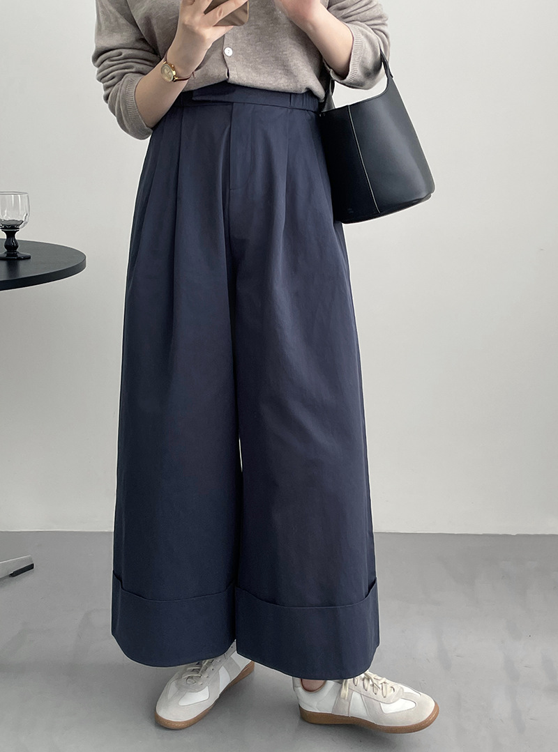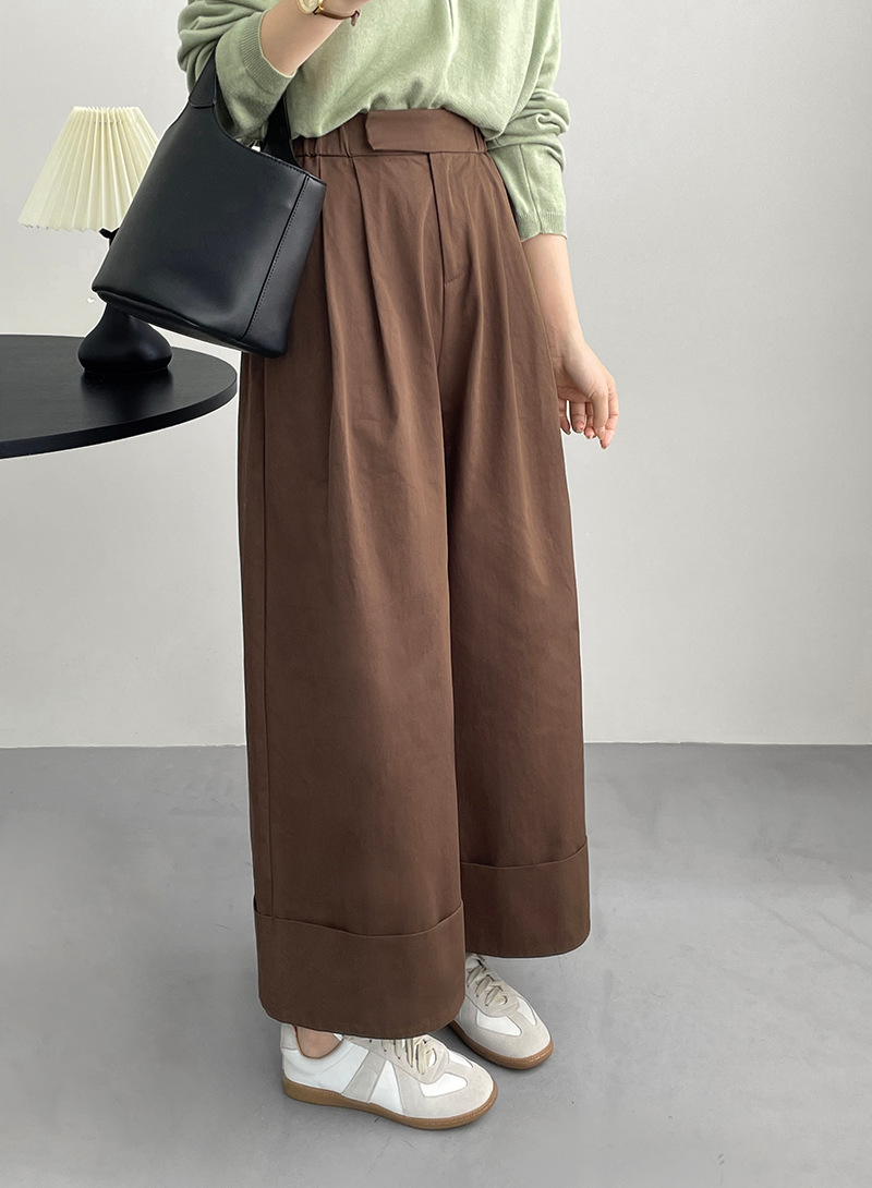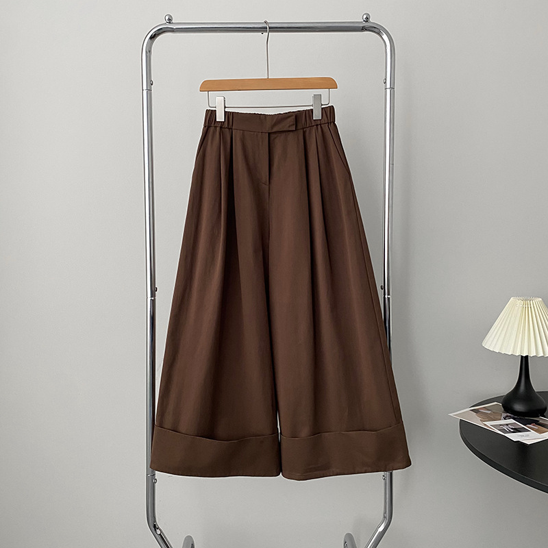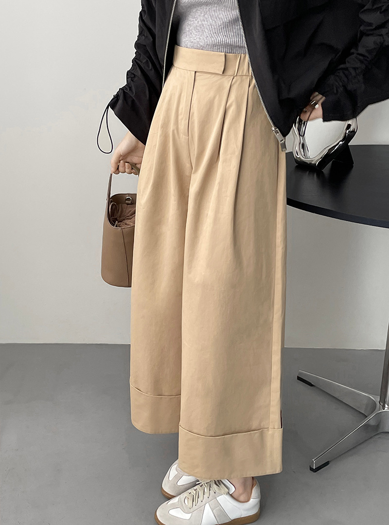 日系顯瘦捲邊鬆緊高腰闊腿褲-3色
