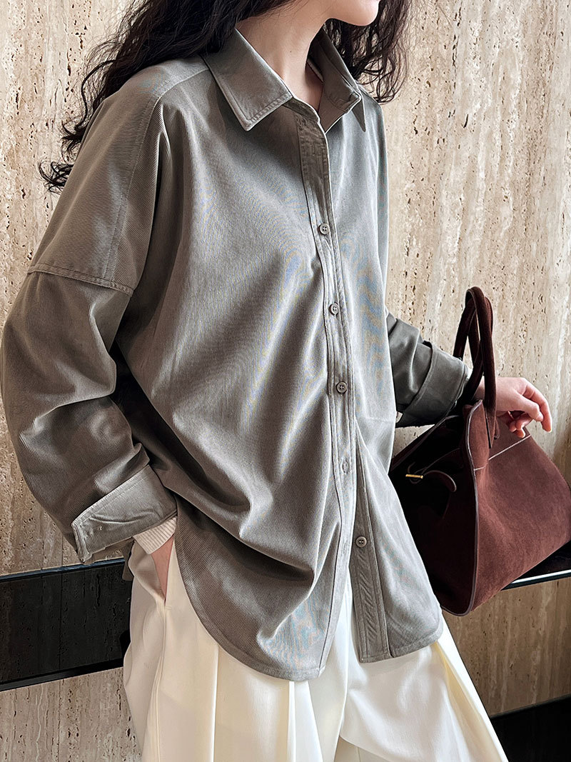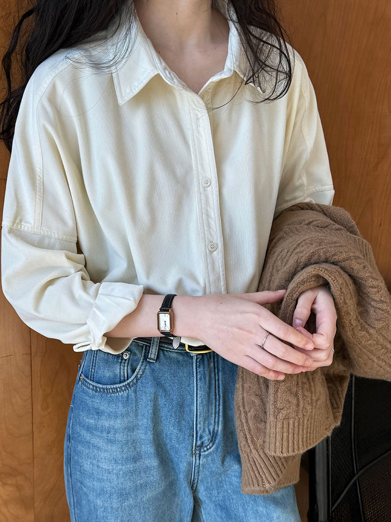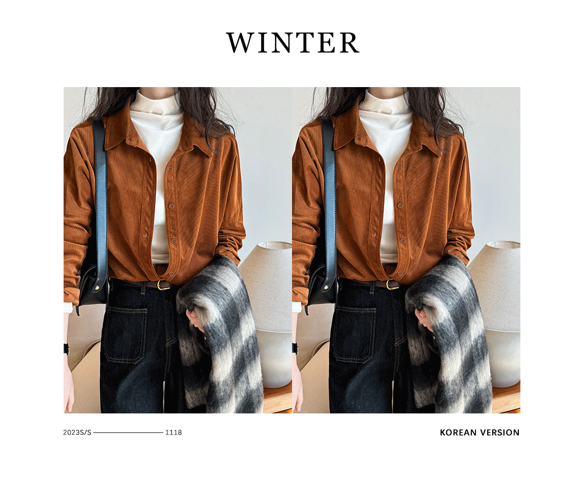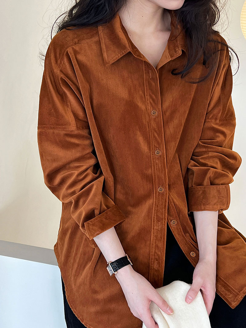 極簡加厚磨毛燈芯絨打底襯衫-4色