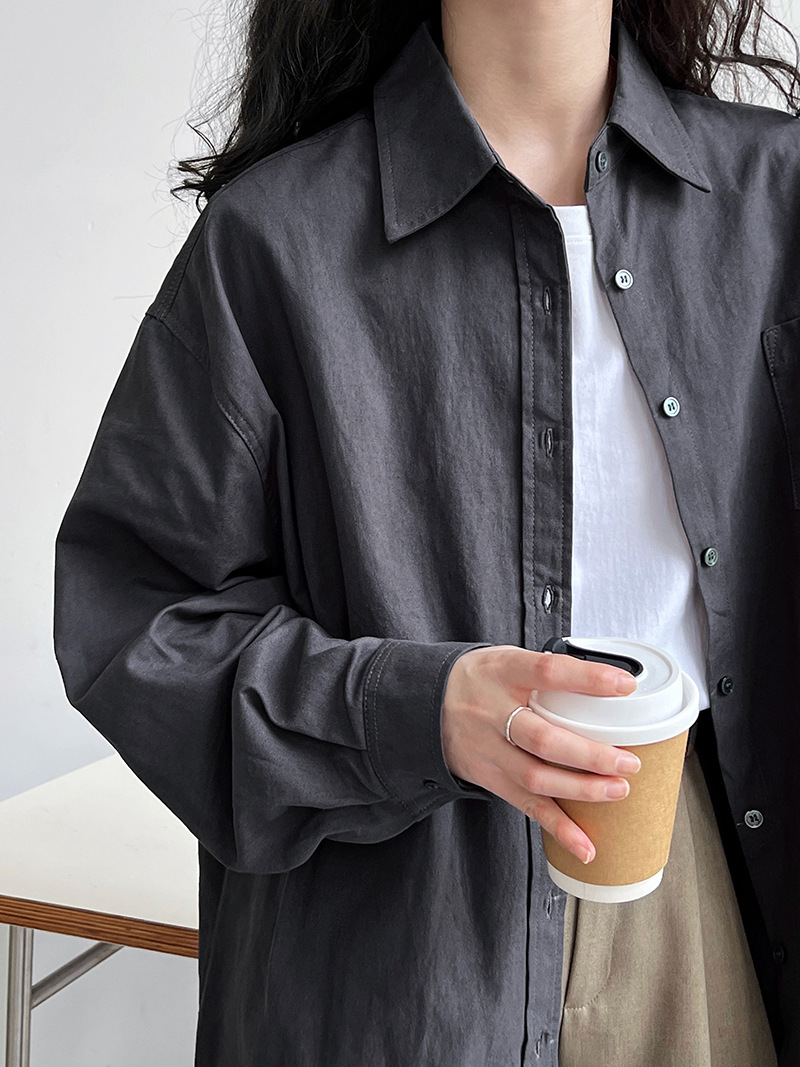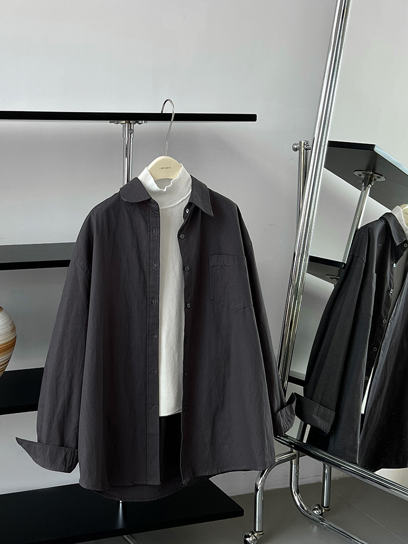 牛津布經典闊版長袖休閒襯衫-2色