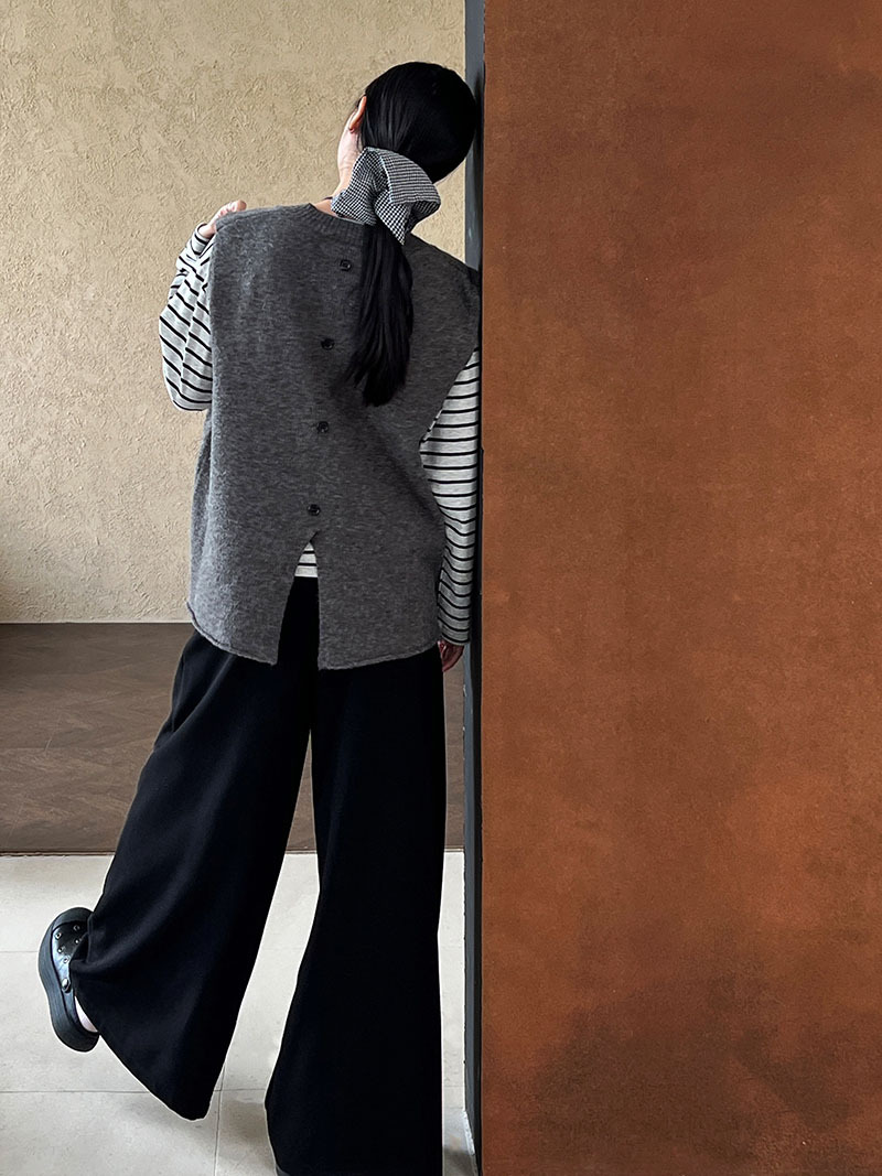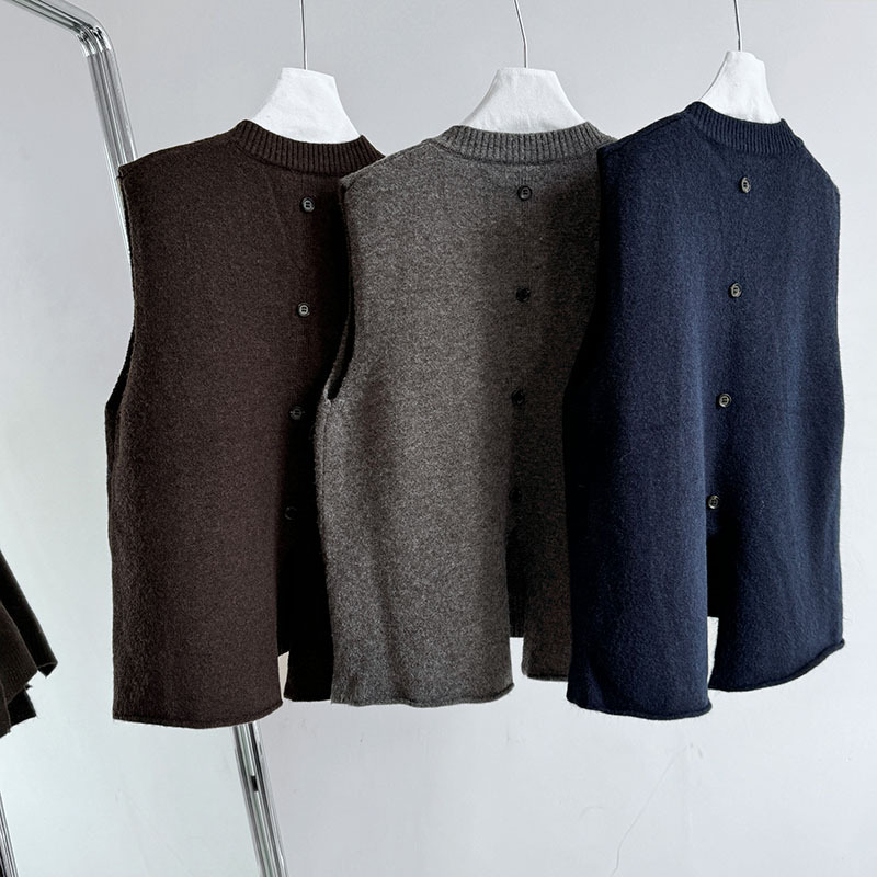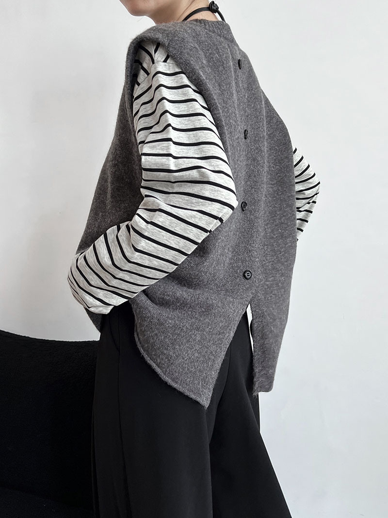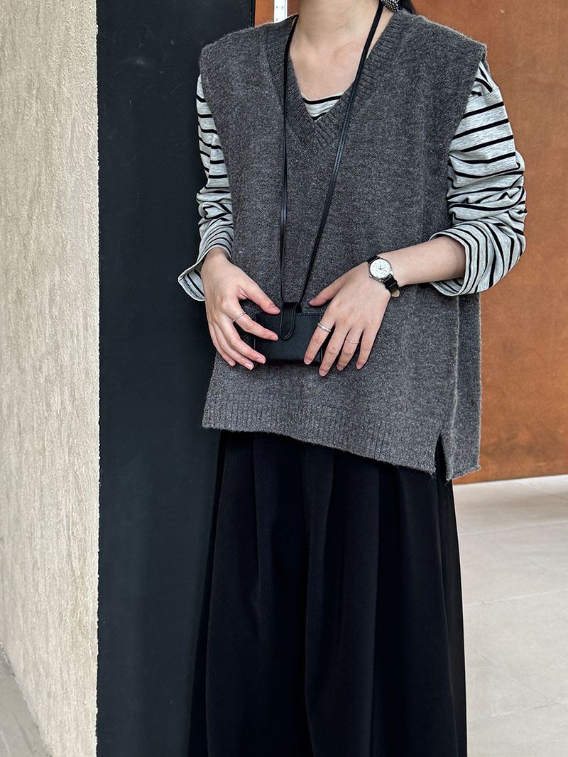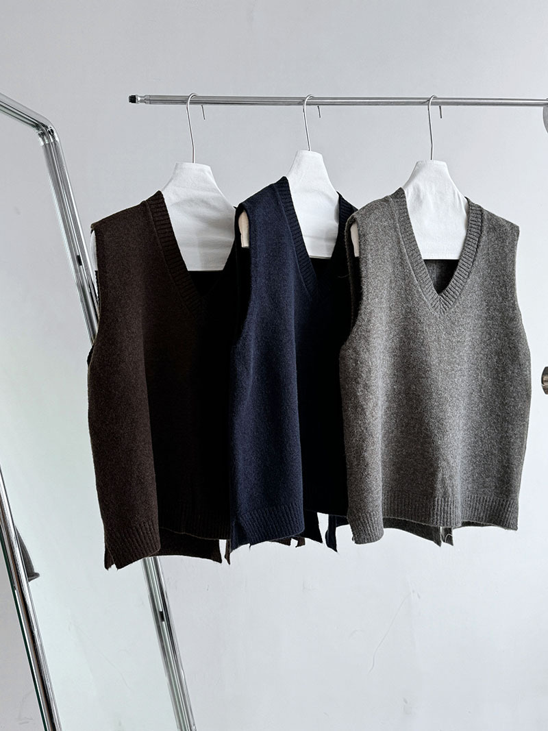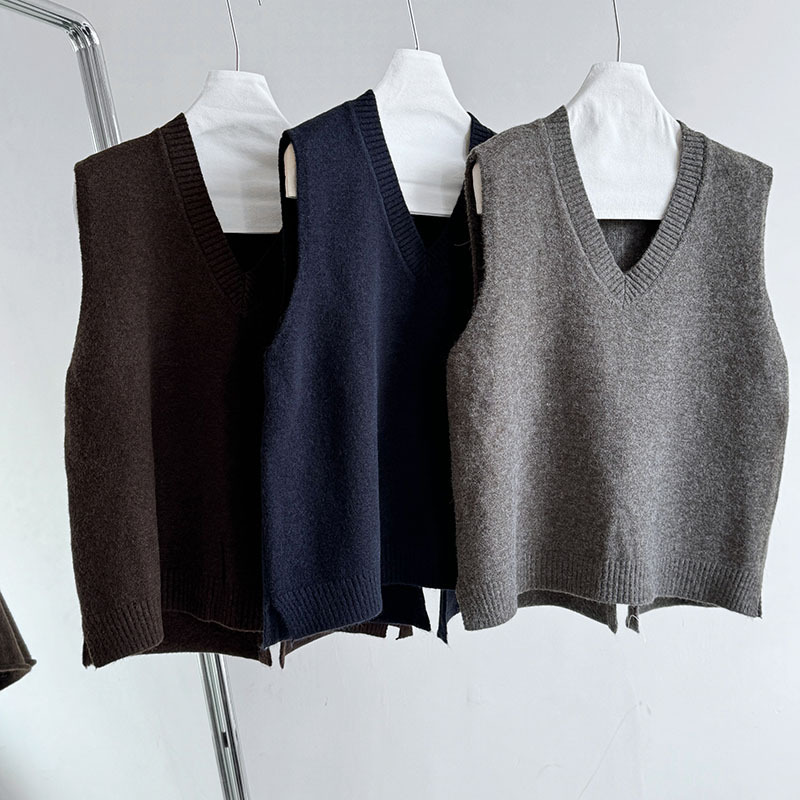 疊穿開叉背心馬甲無袖針織馬甲-3色