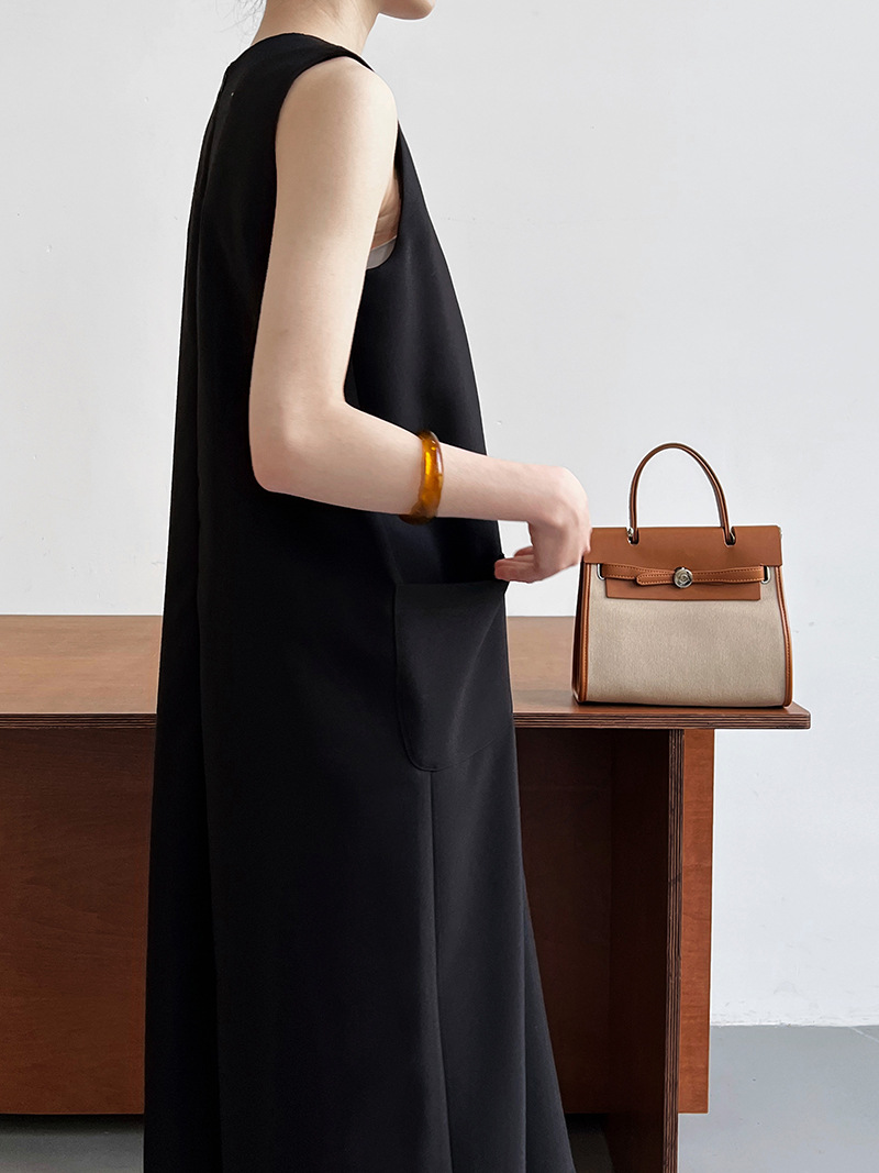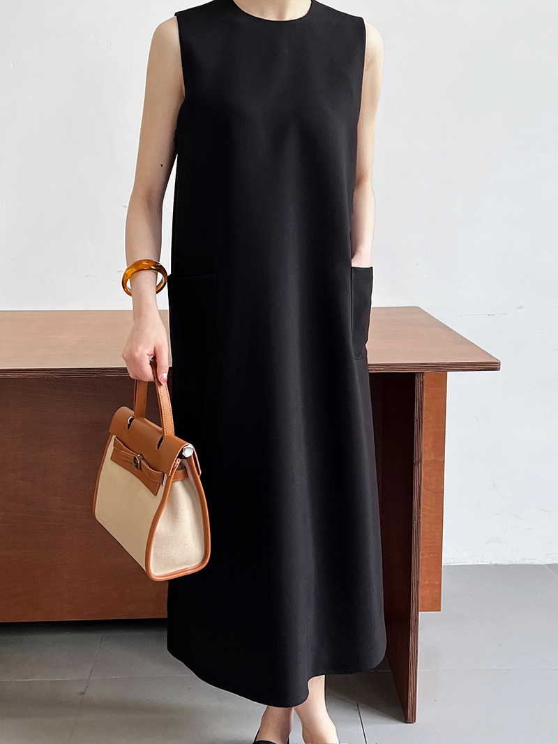 簡約通勤無袖西裝背心連衣裙-2色