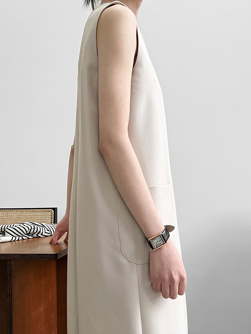 簡約通勤無袖西裝背心連衣裙-2色 - Moon Peach