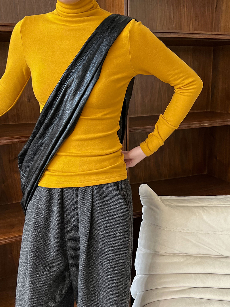 純色軟糯堆堆領加絨修身長袖內搭上衣