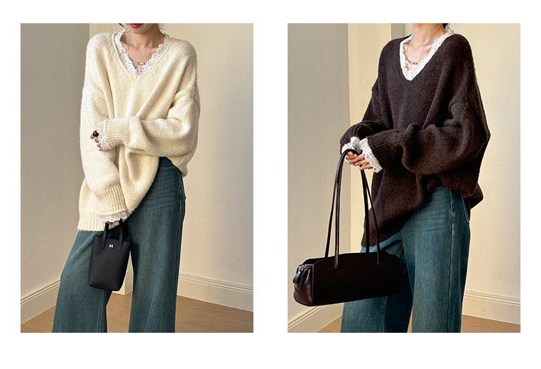 絕美蕾絲花邊寬鬆保暖軟糯毛衣-3色