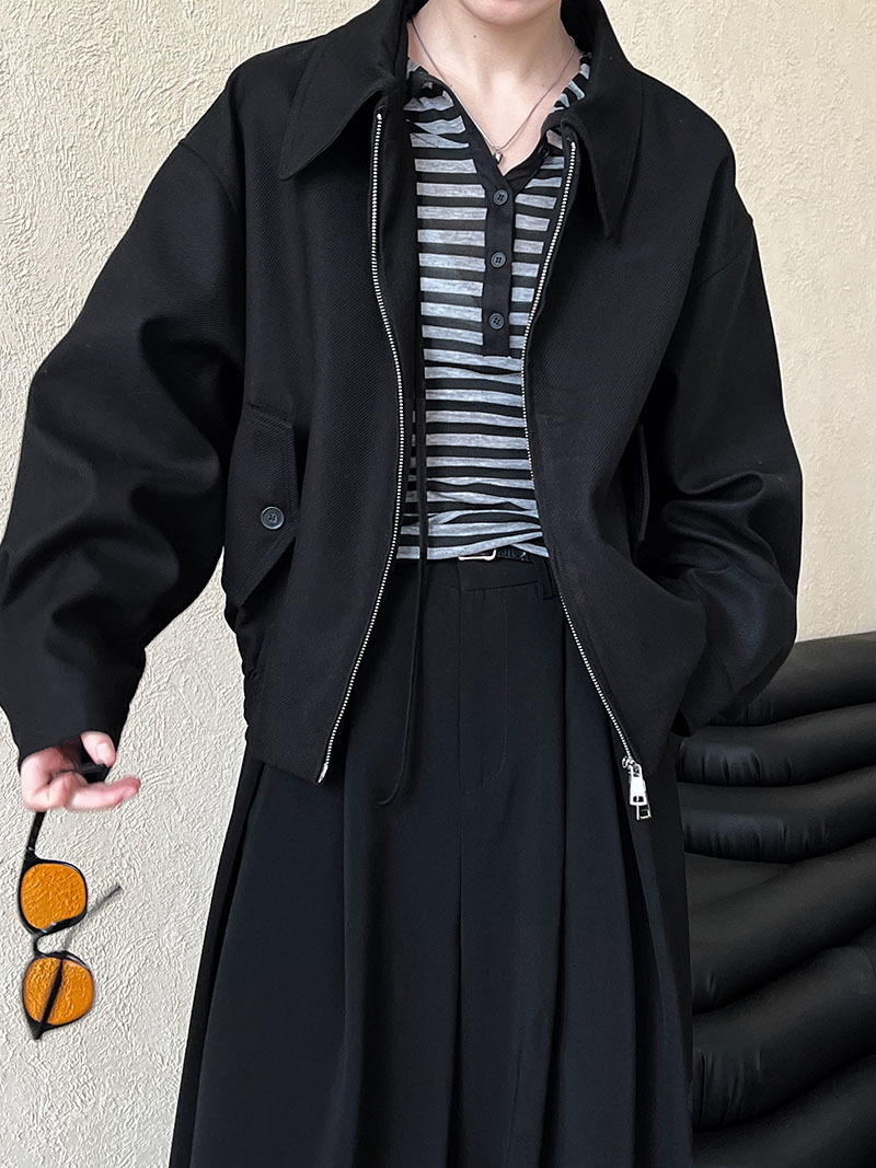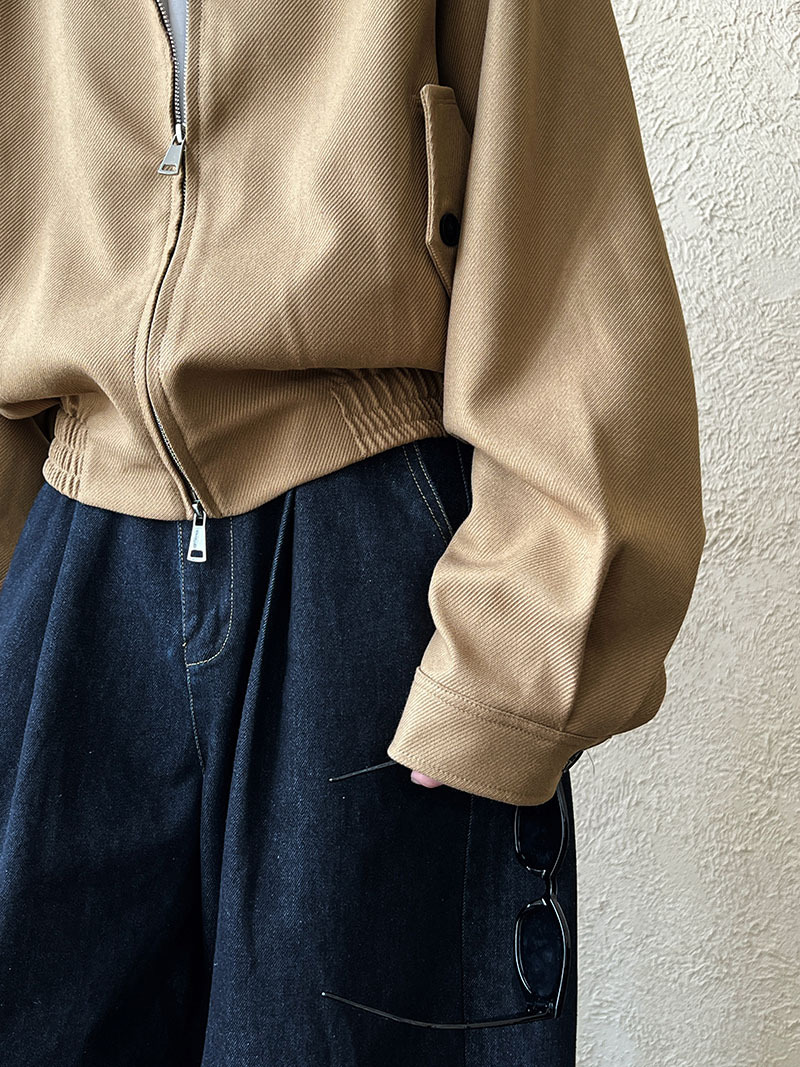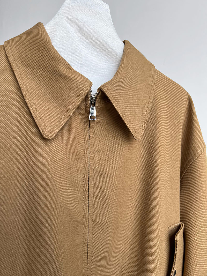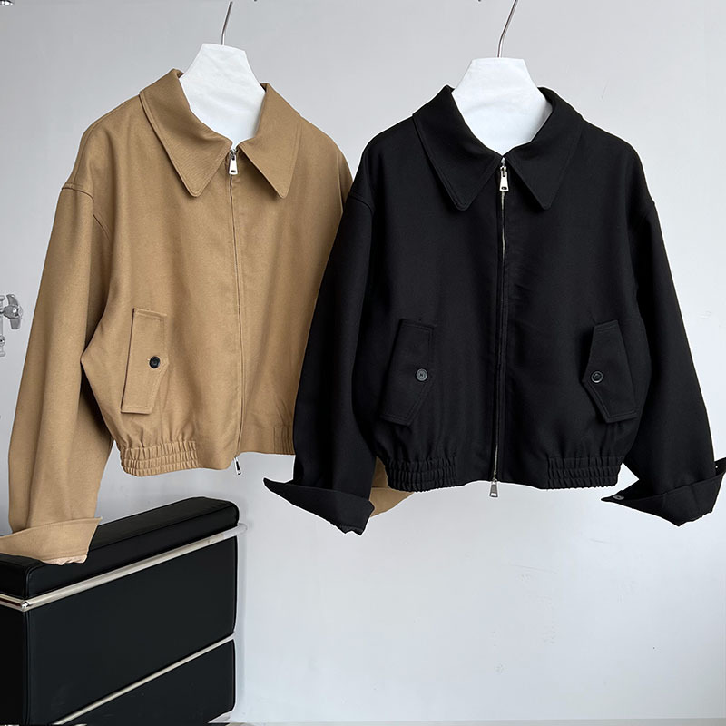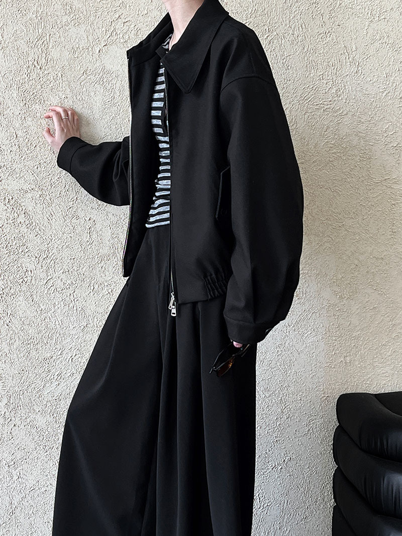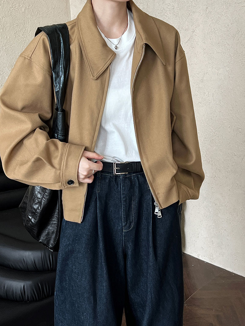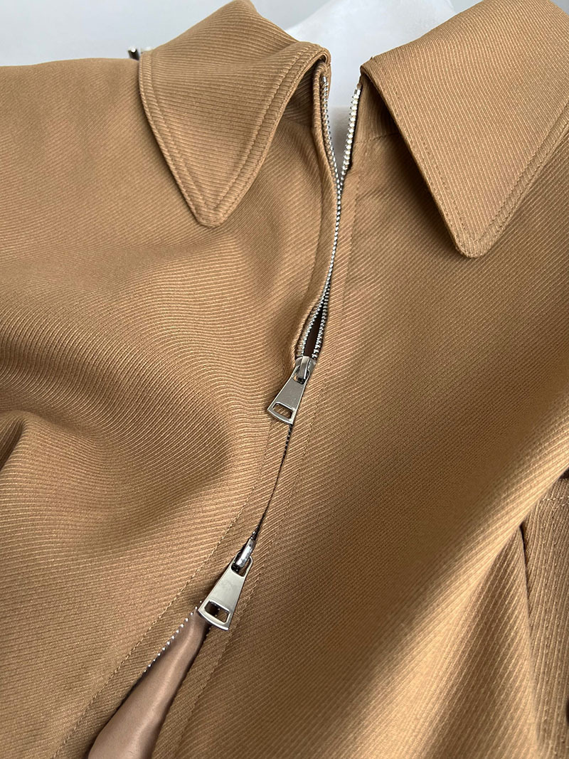 美拉德翻領落肩拉鍊長袖夾克外套-2色