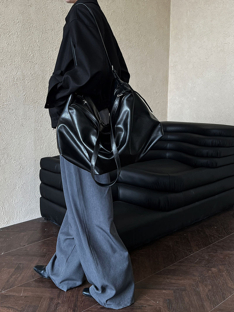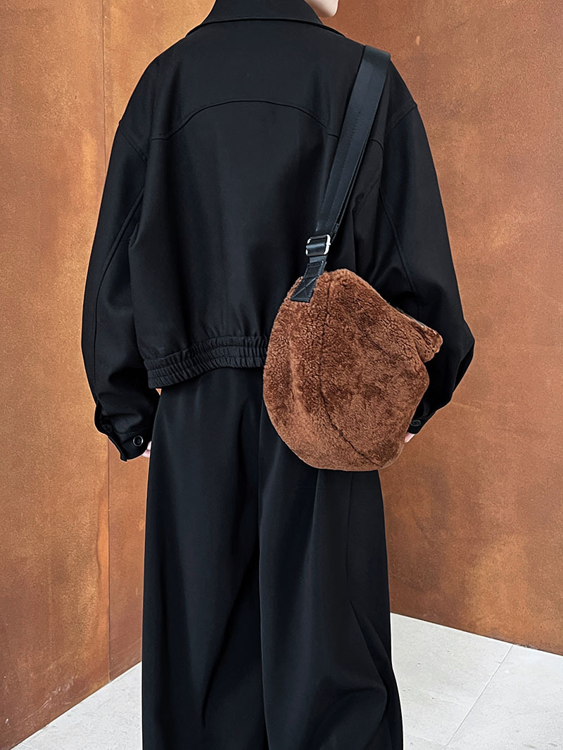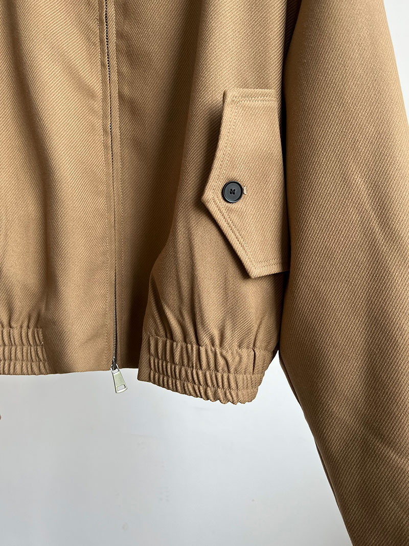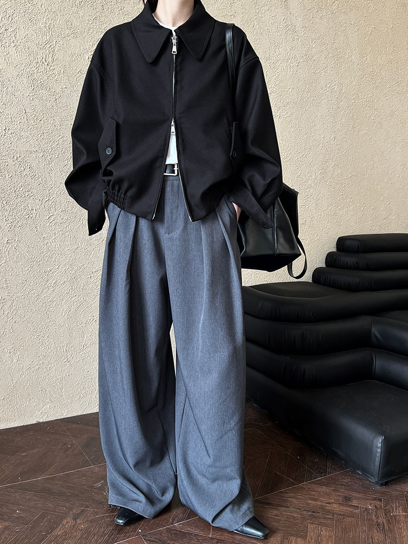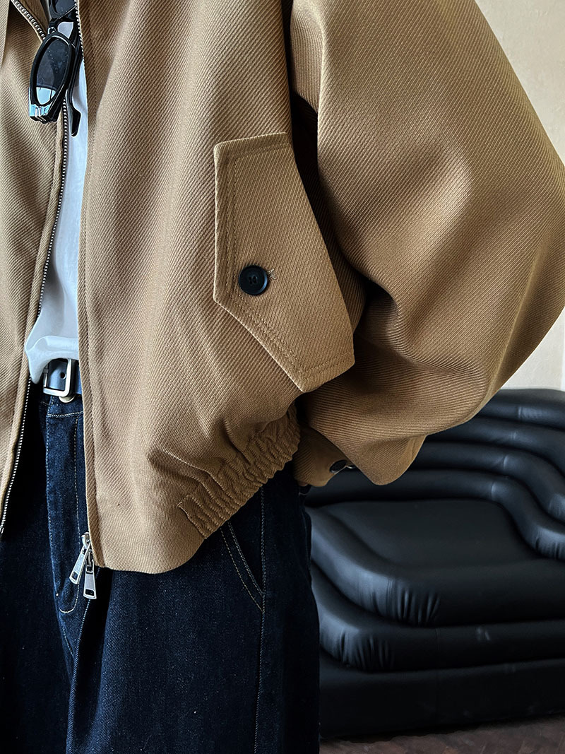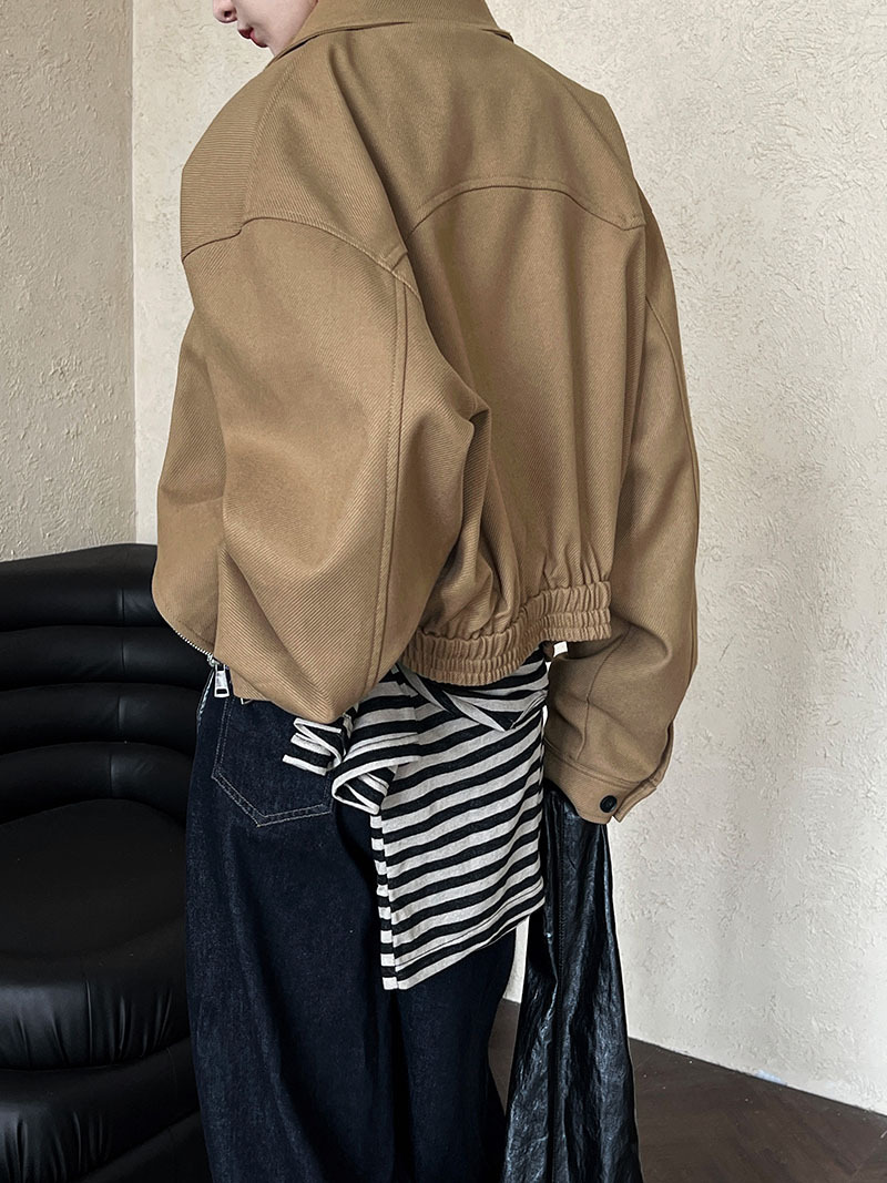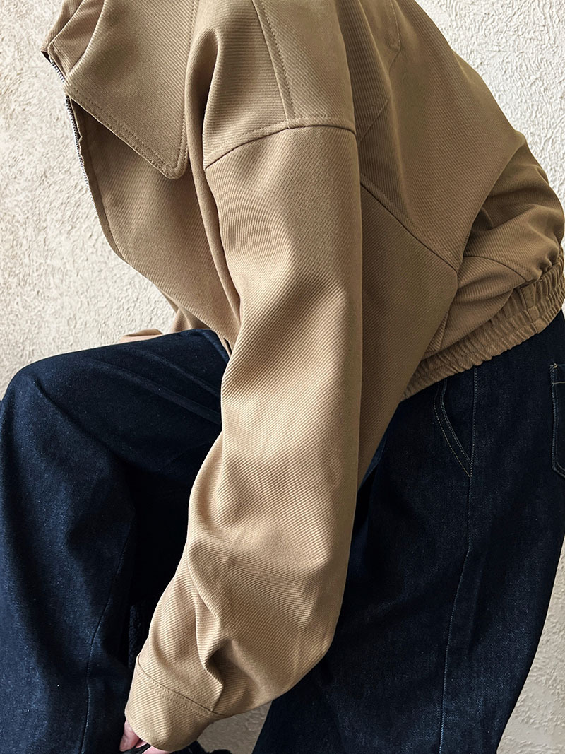 美拉德翻領落肩拉鍊長袖夾克外套-2色