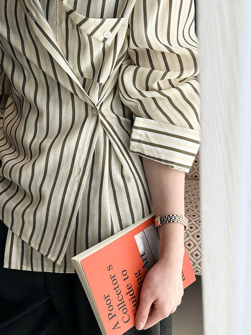 韓系不規則側扣條紋襯衫