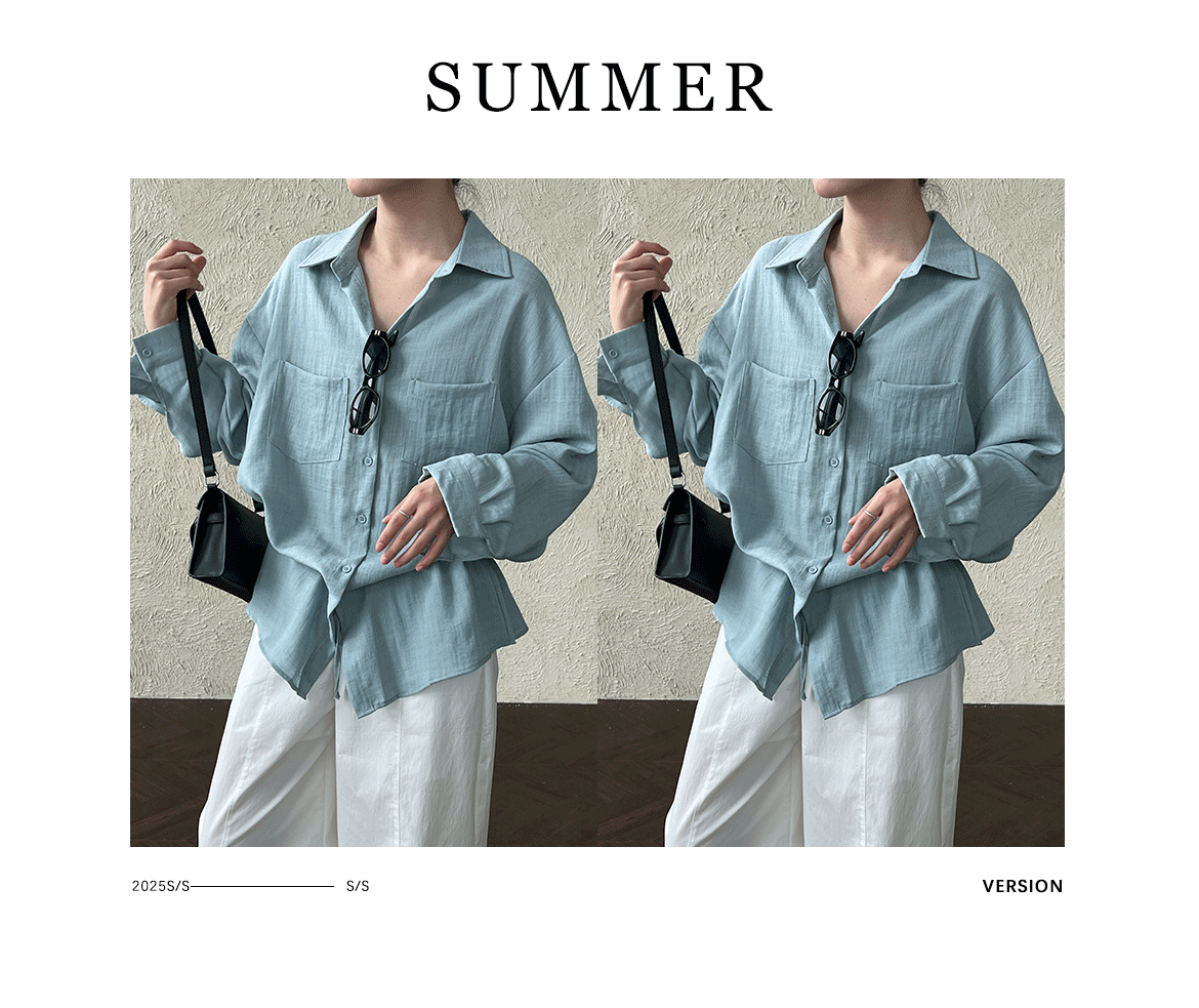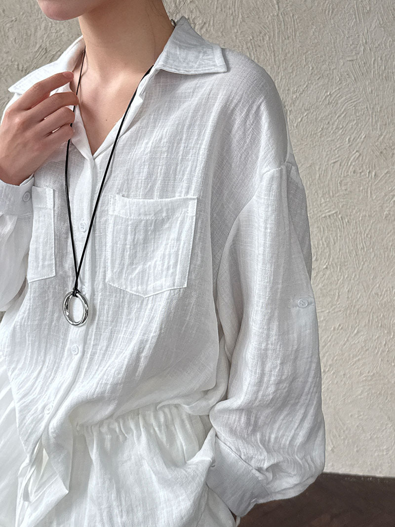 韓系肌理感慵懶腰部抽繩長袖襯衫-2色