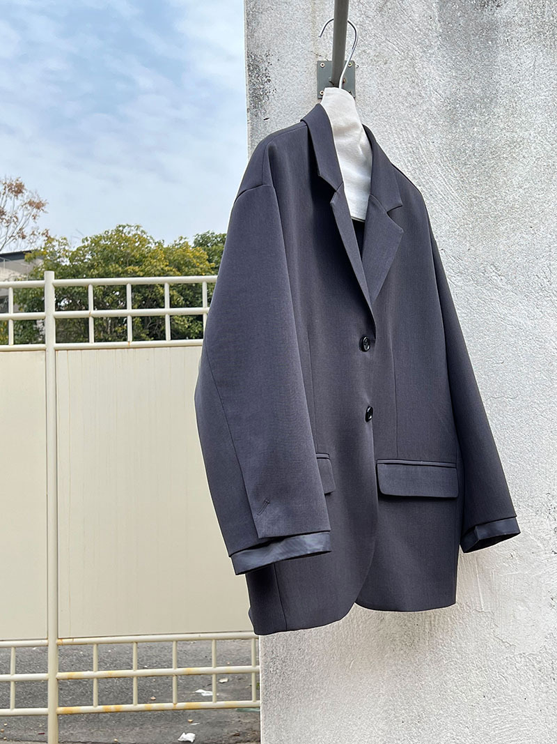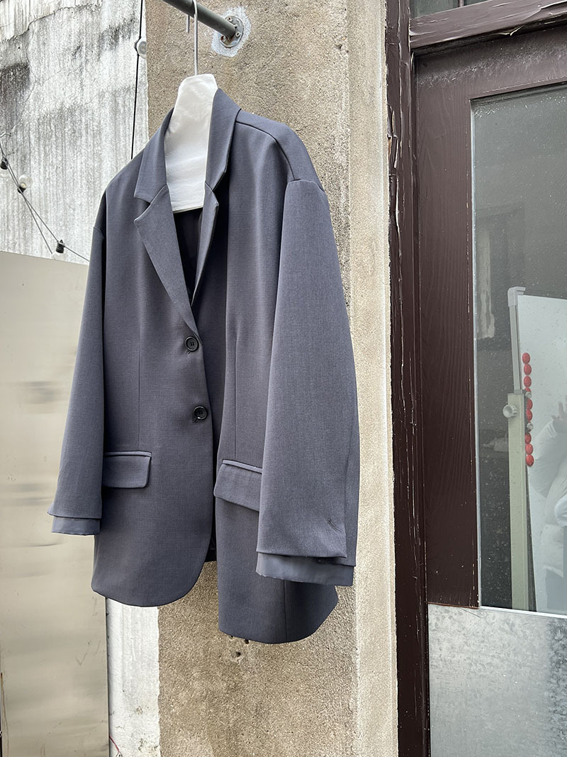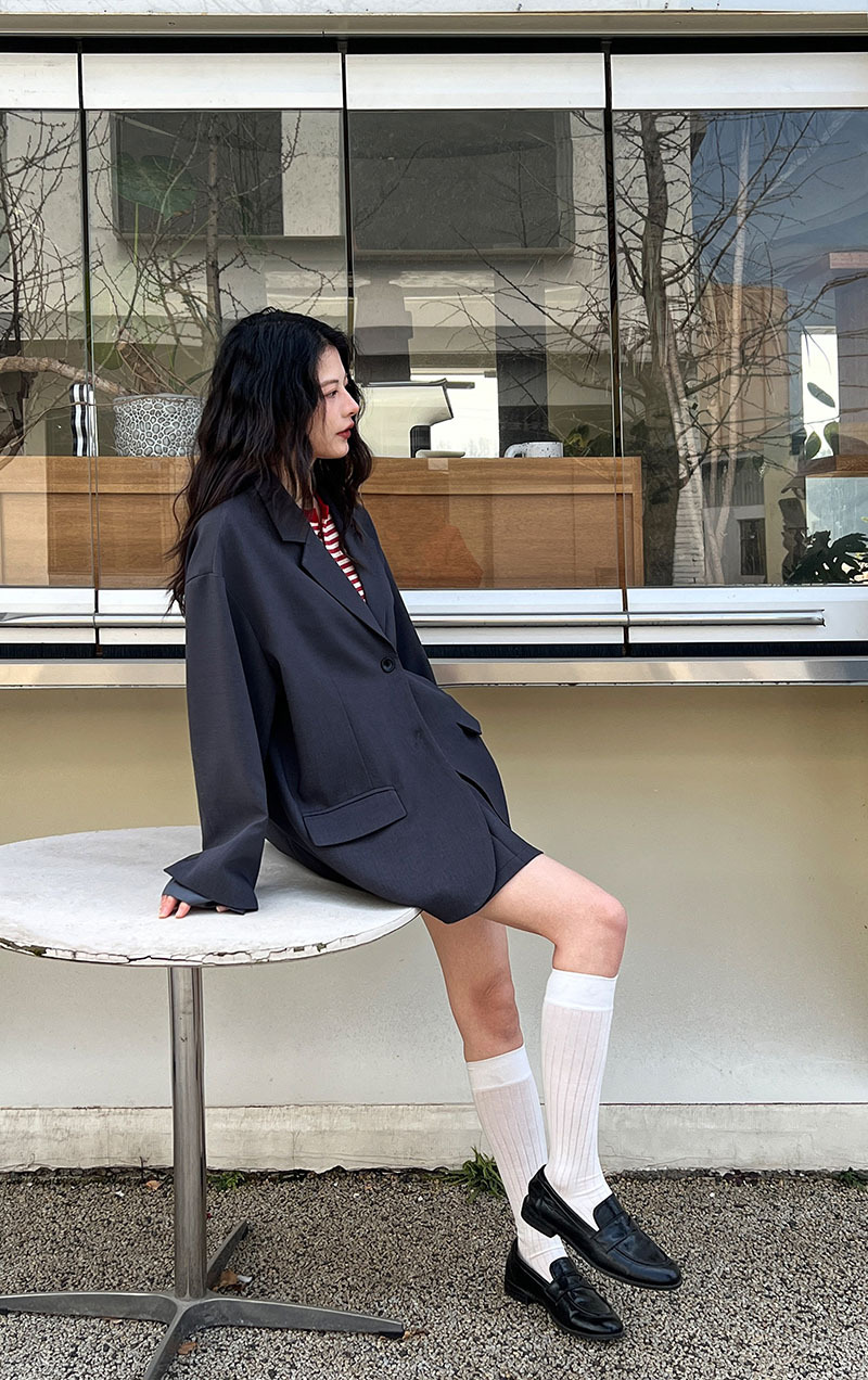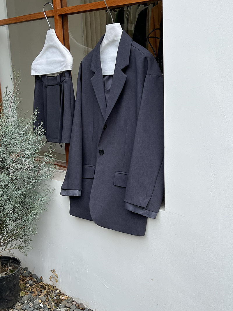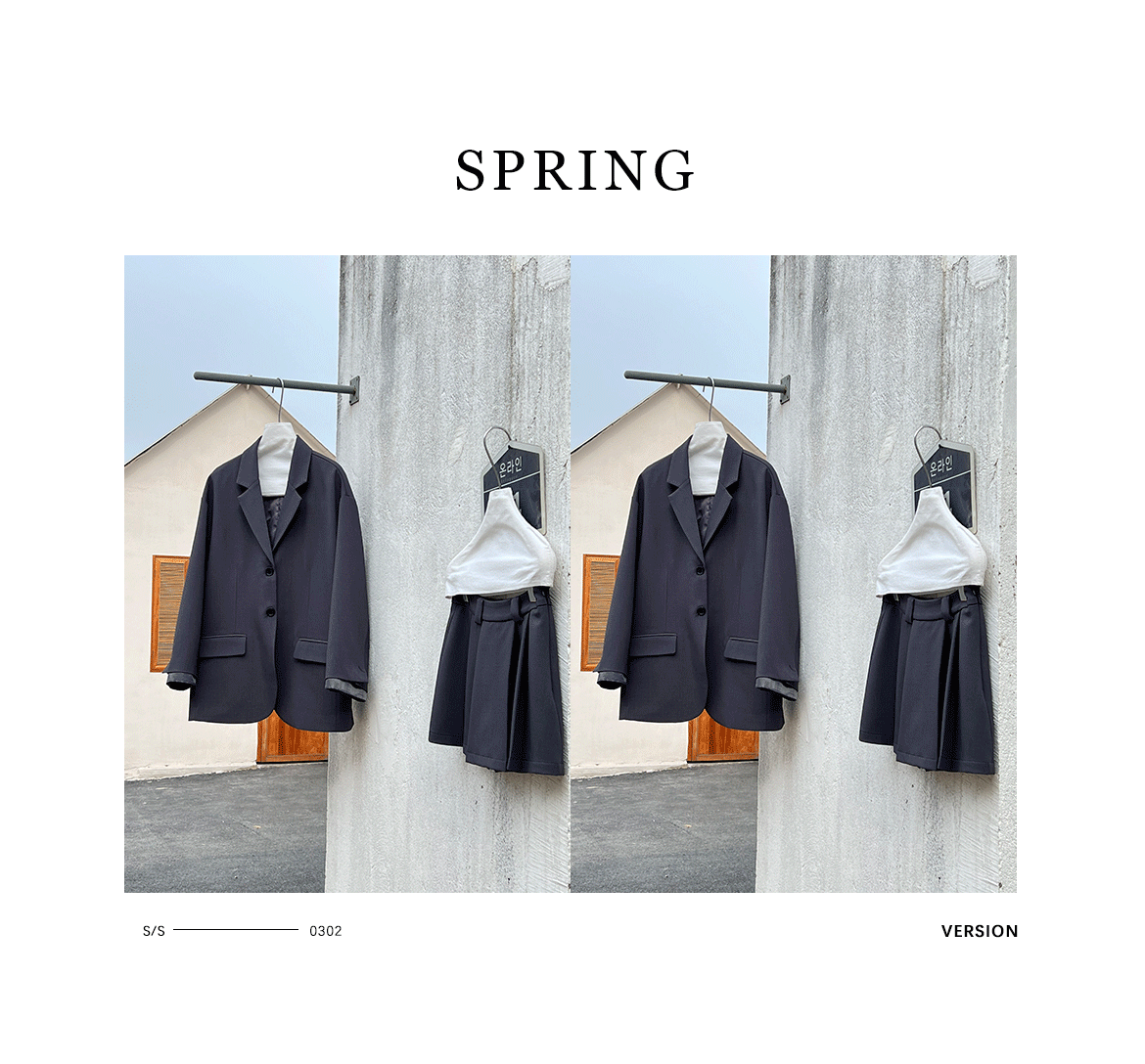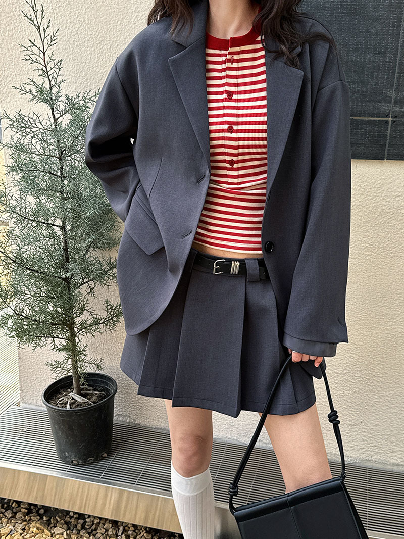 韓系高級感休閒袖口拼接西裝外套+百褶半身裙兩件式套裝-2色