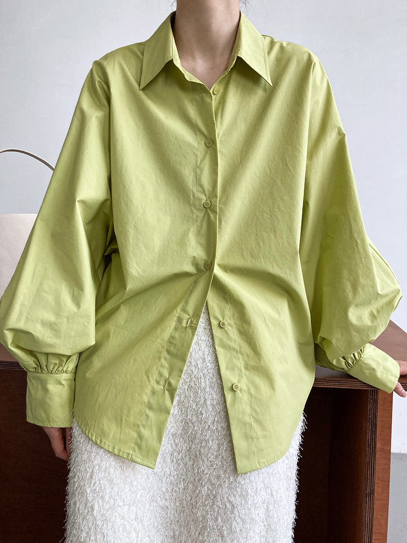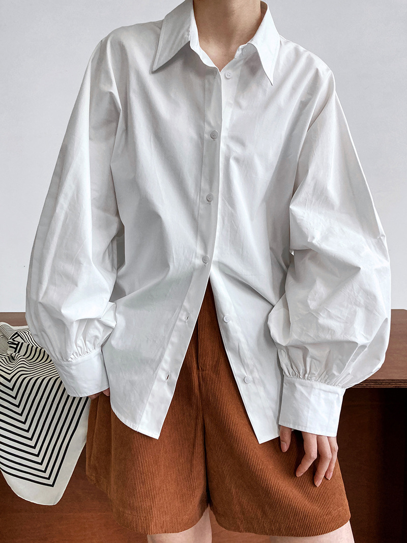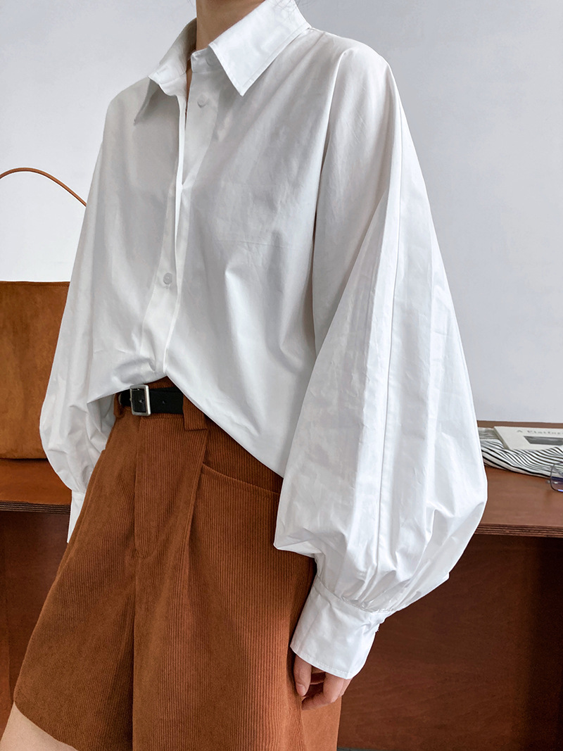 高級感燈籠袖寬鬆慵懶襯衫-4色