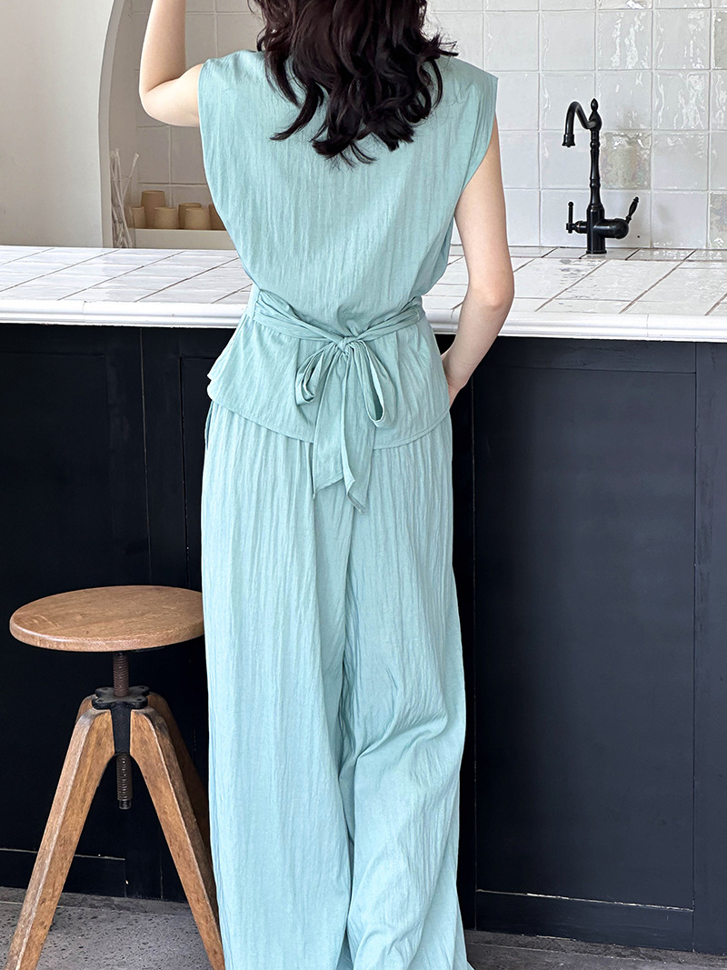 高級感綁帶無袖背心+法式闊腿褲-兩件式套裝-2色