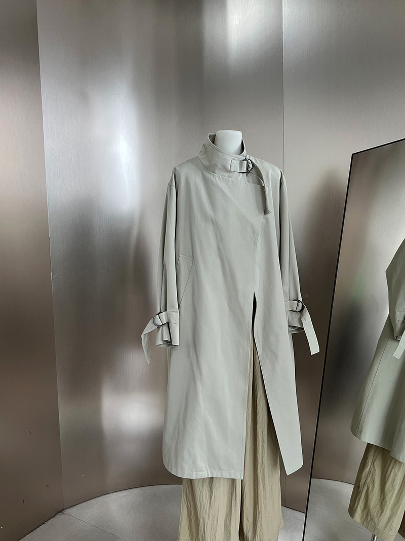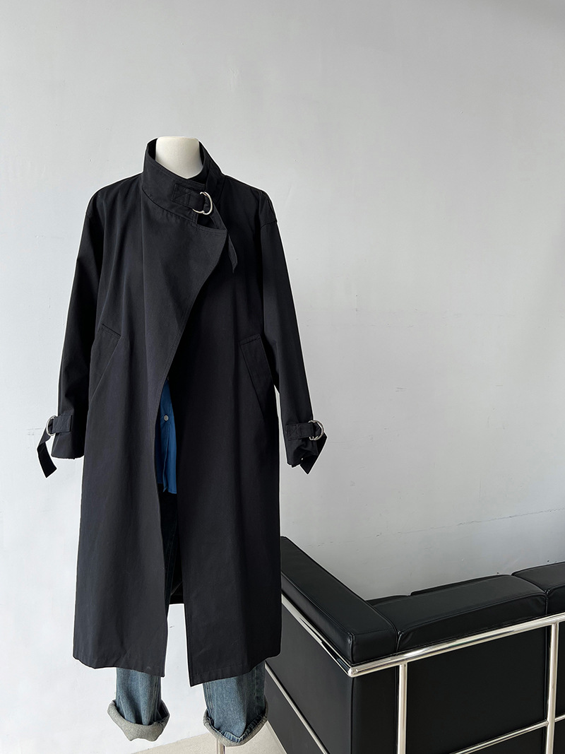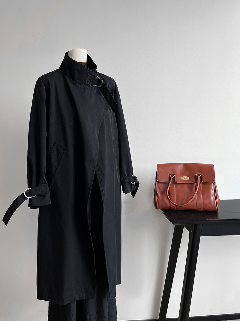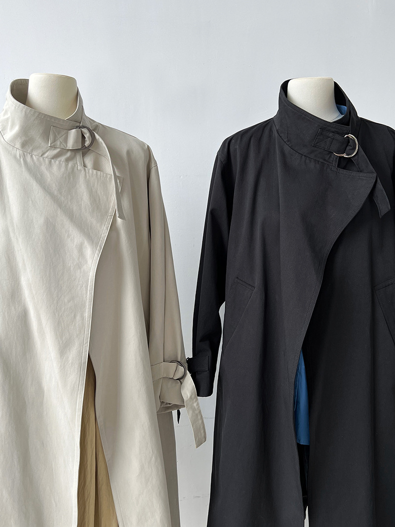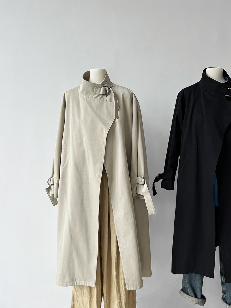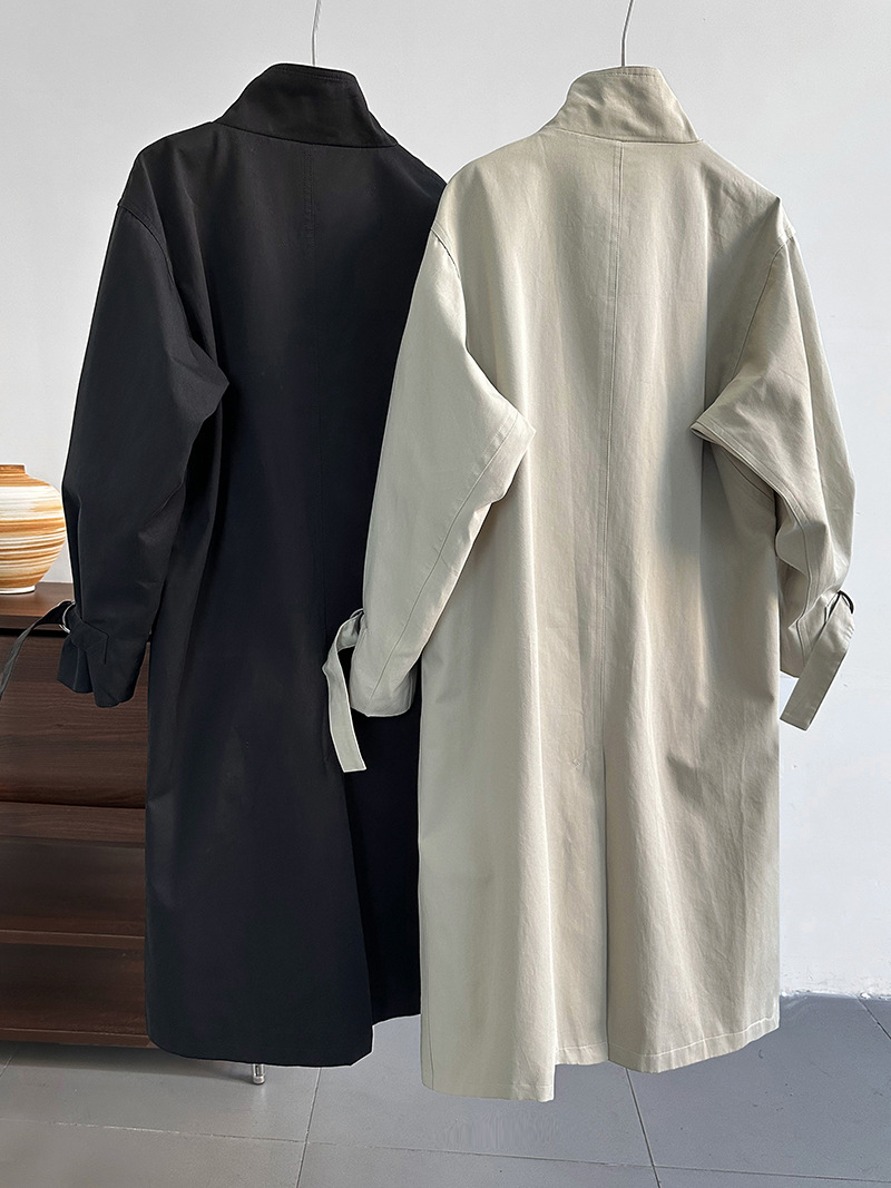 高級感英倫極簡長款風衣外套-2色