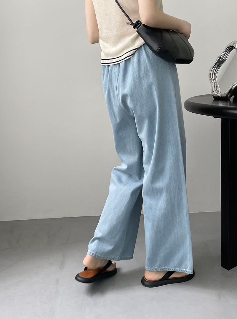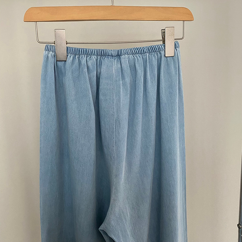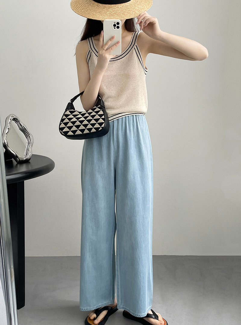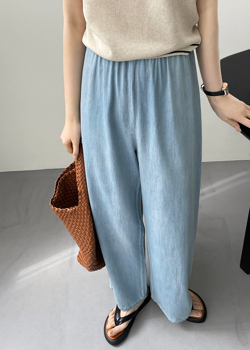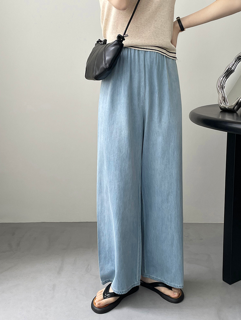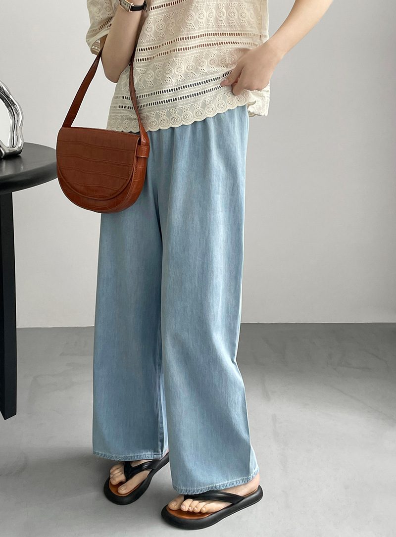 鬆緊高腰寬鬆休閒直筒牛仔褲