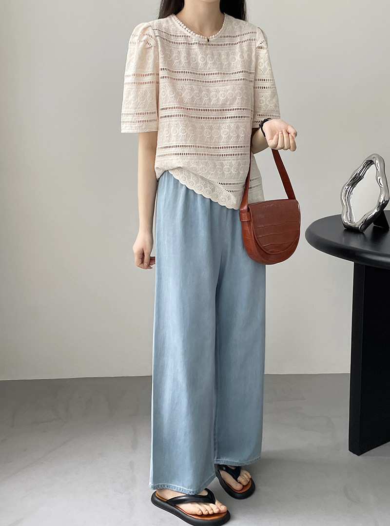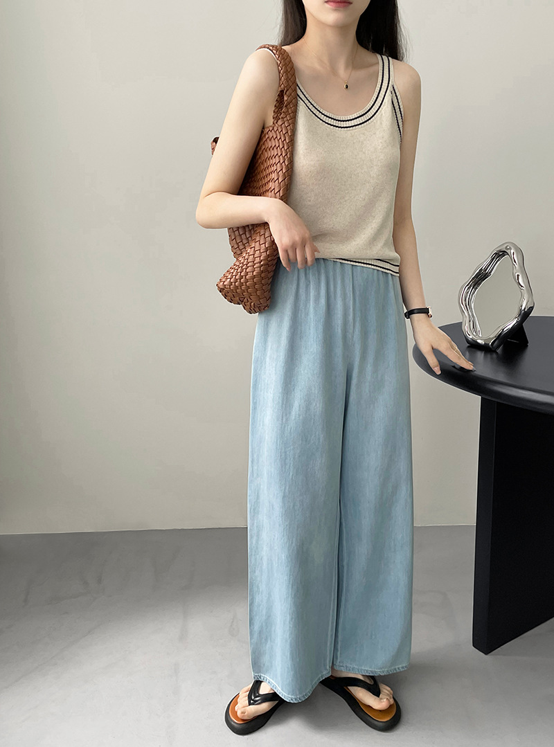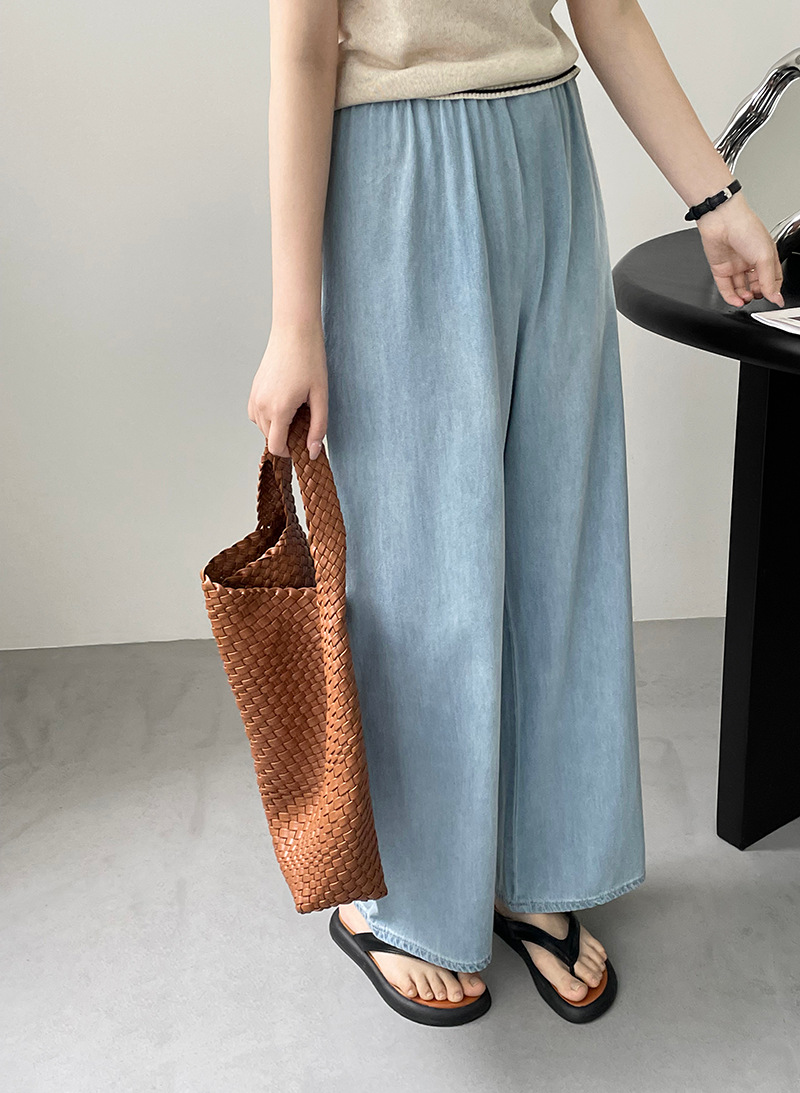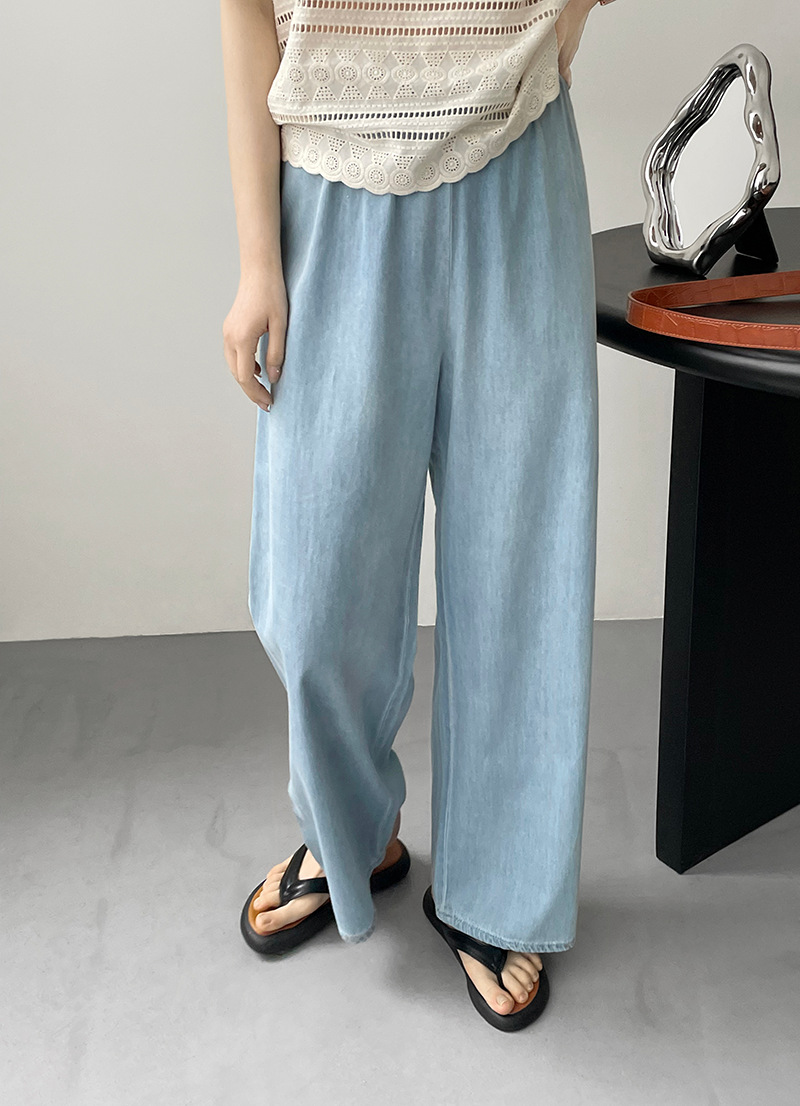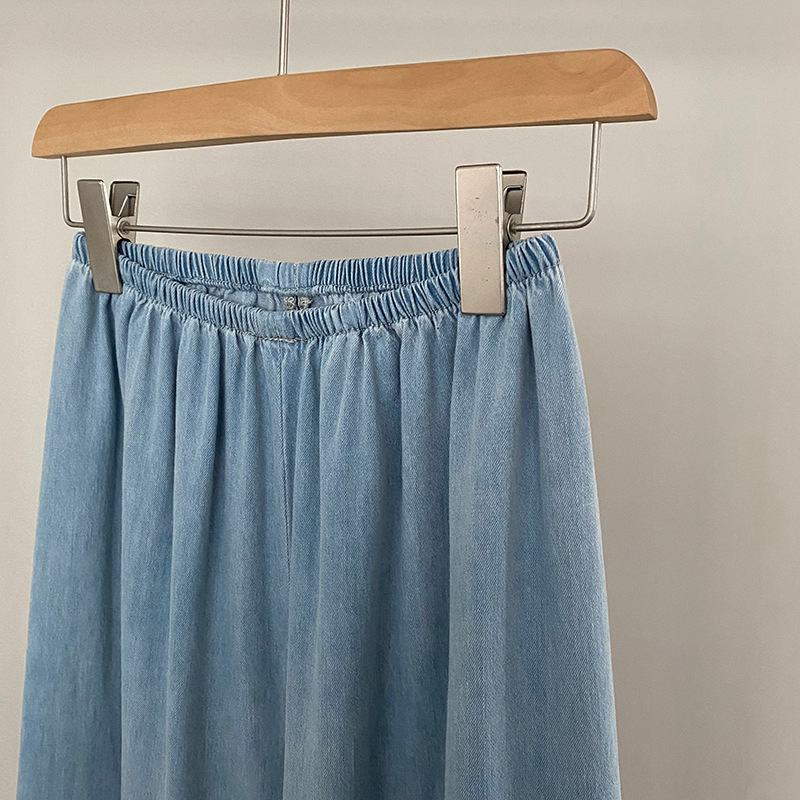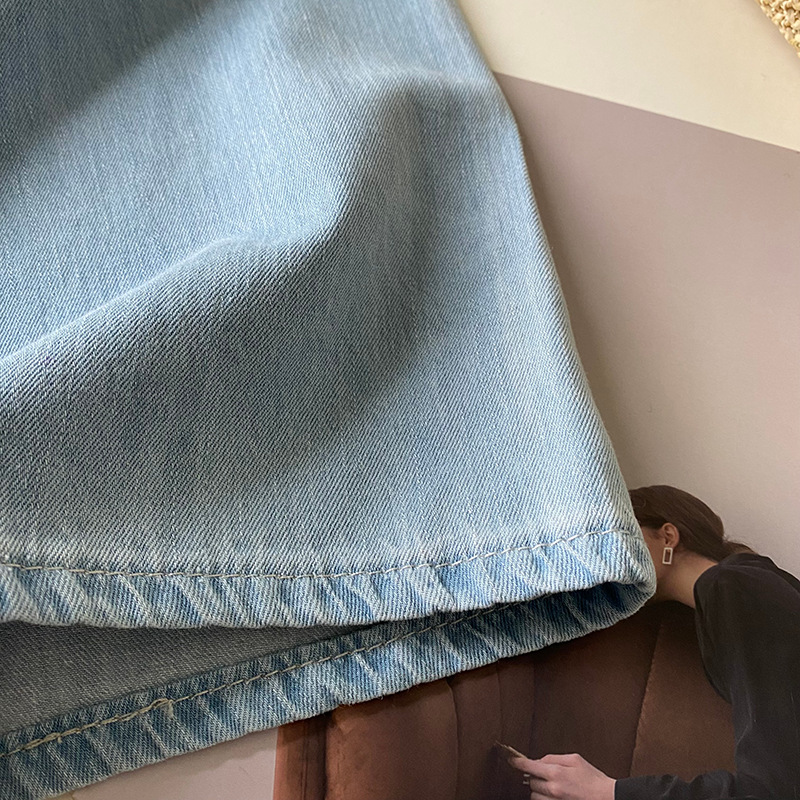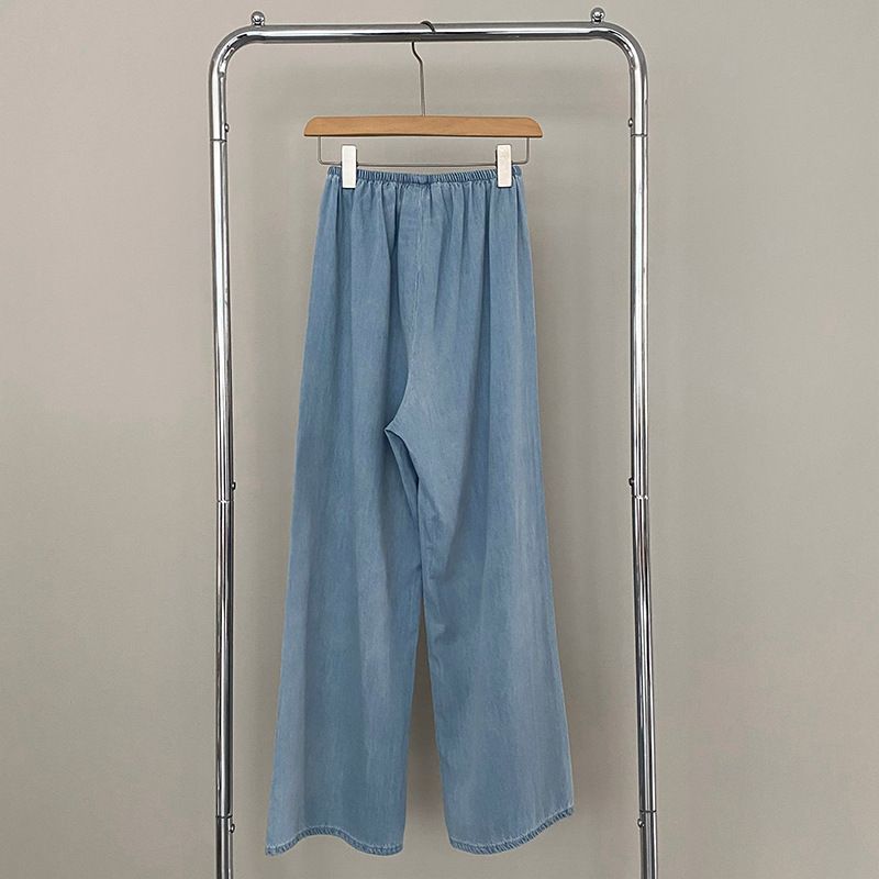 鬆緊高腰寬鬆休閒直筒牛仔褲