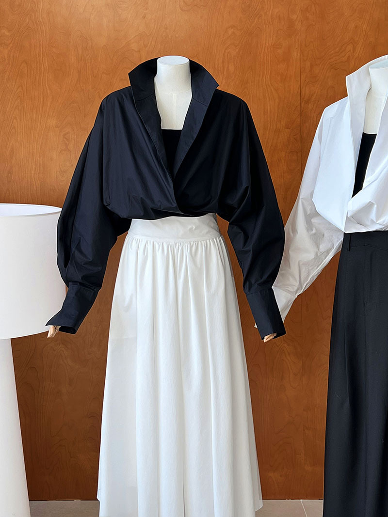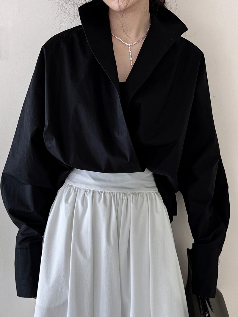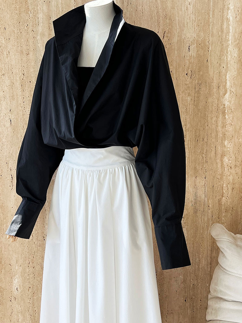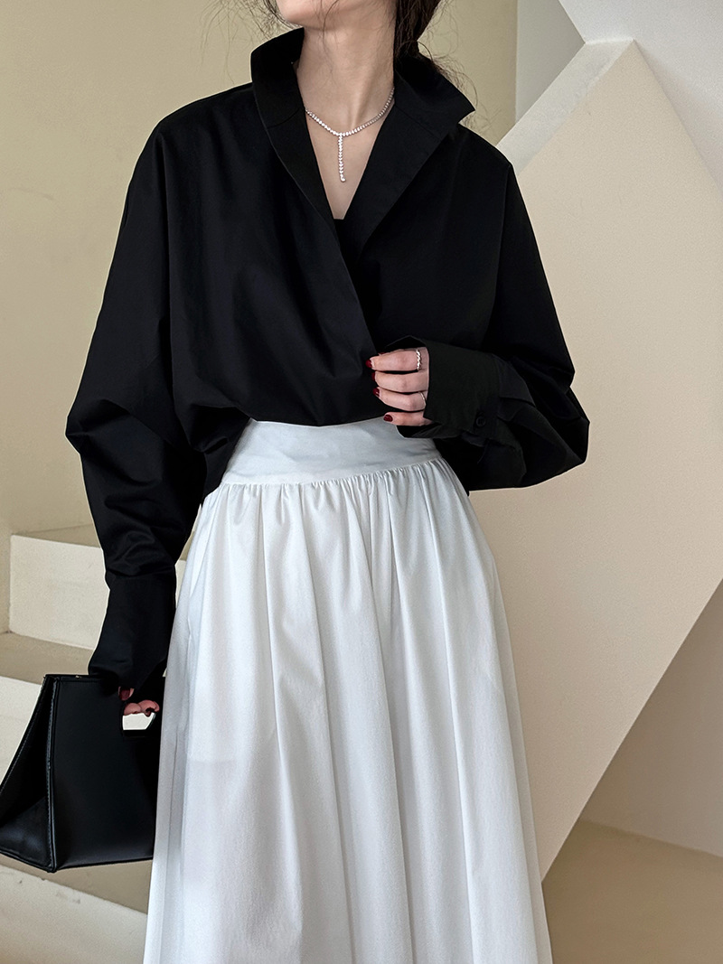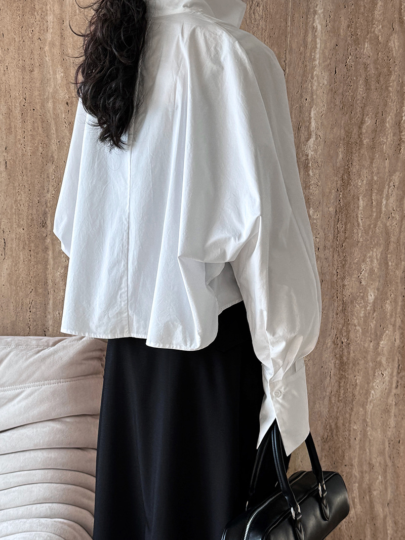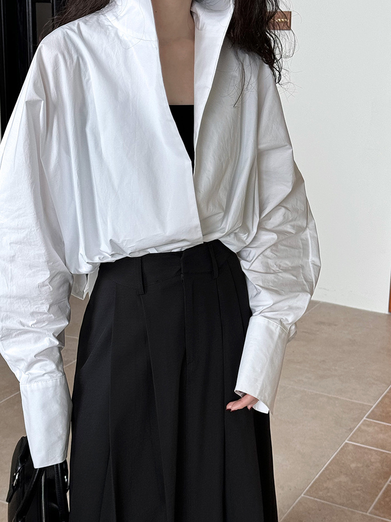 廓形疊穿蝙蝠袖深V立領襯衫-2色