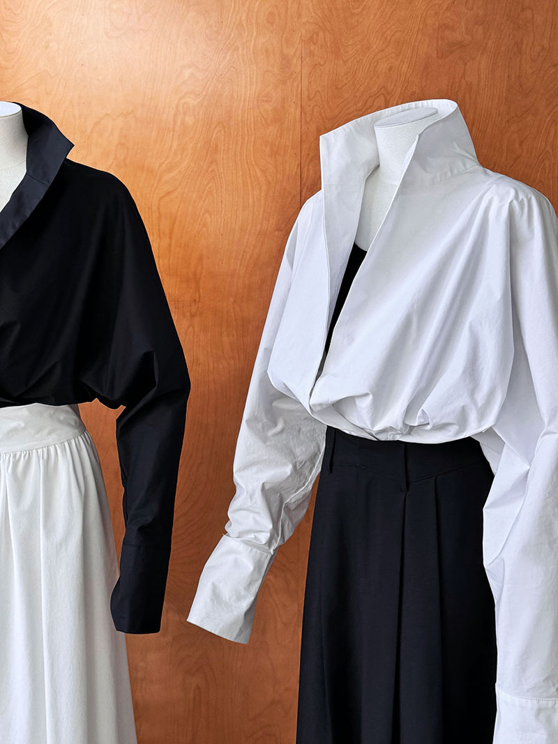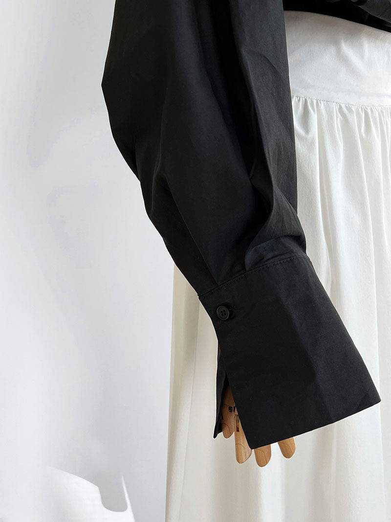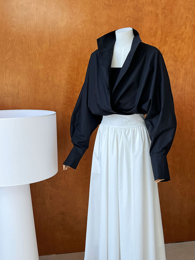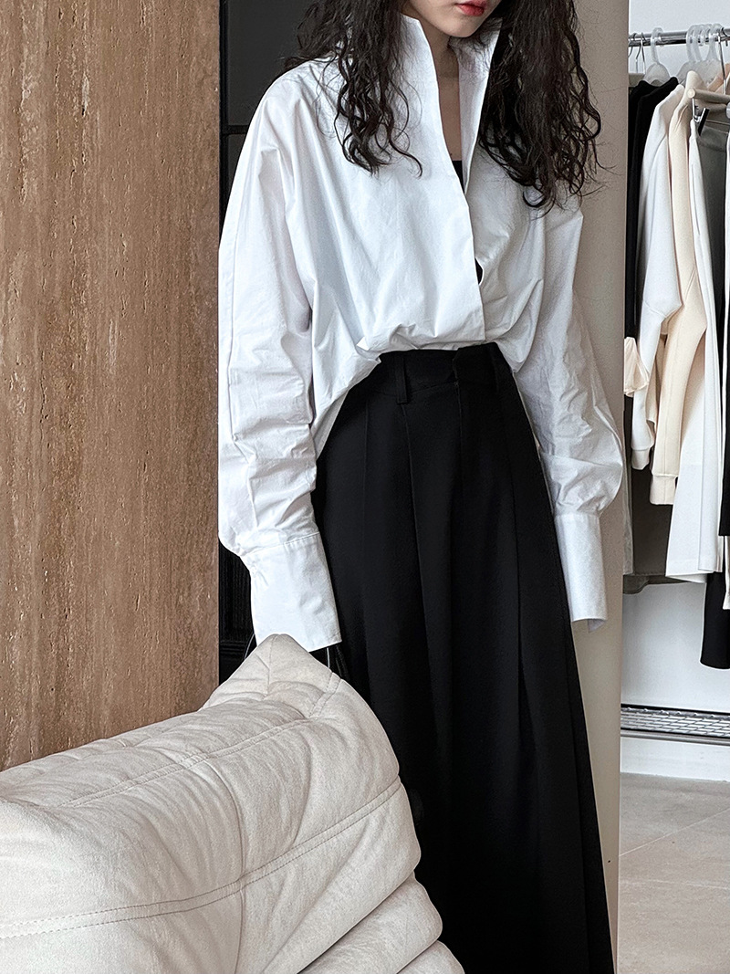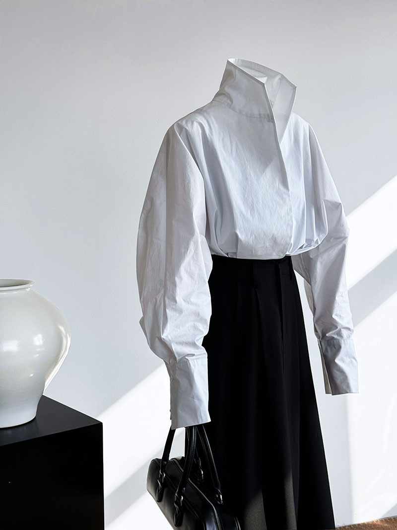 廓形疊穿蝙蝠袖深V立領襯衫-2色