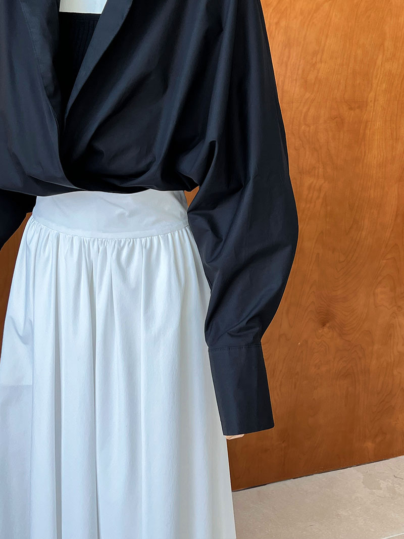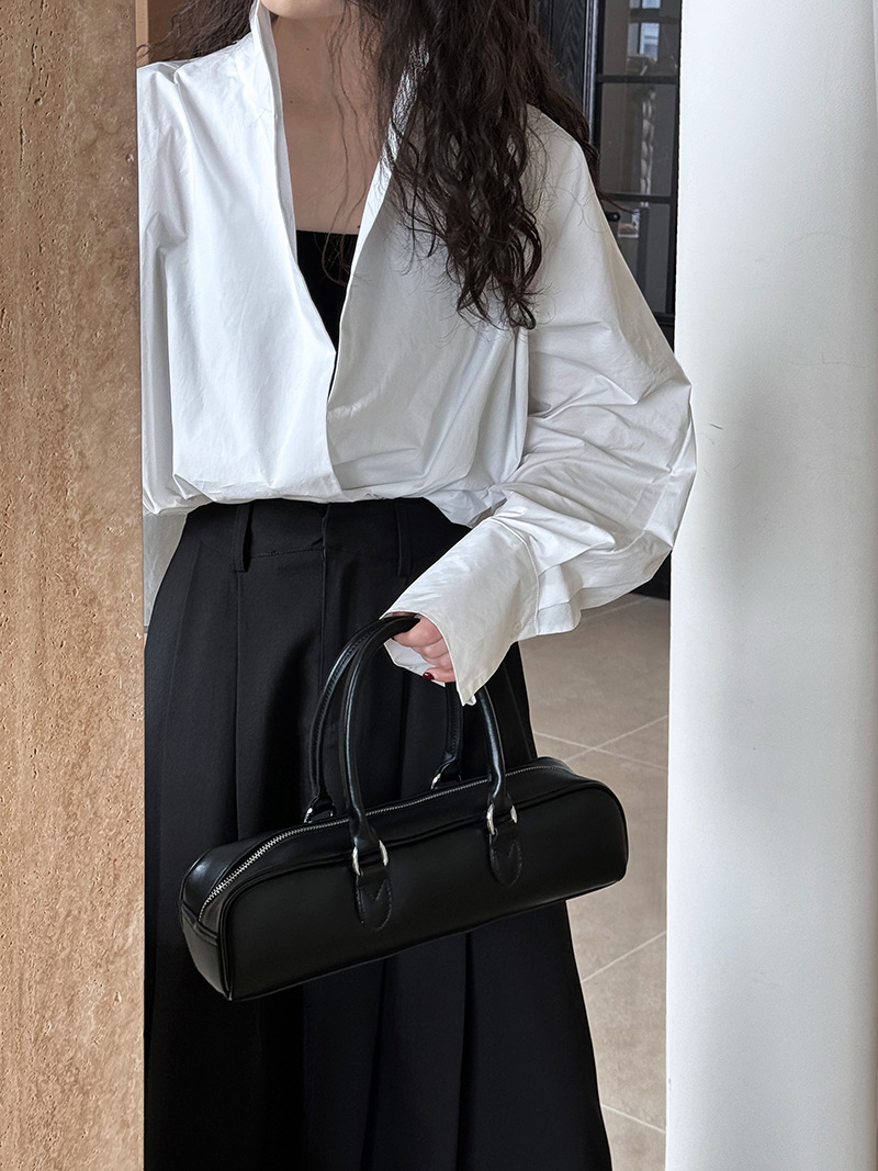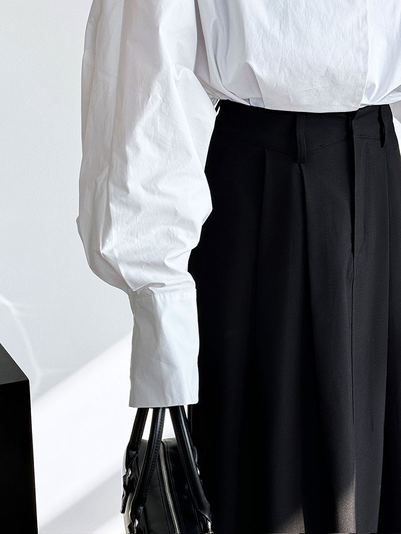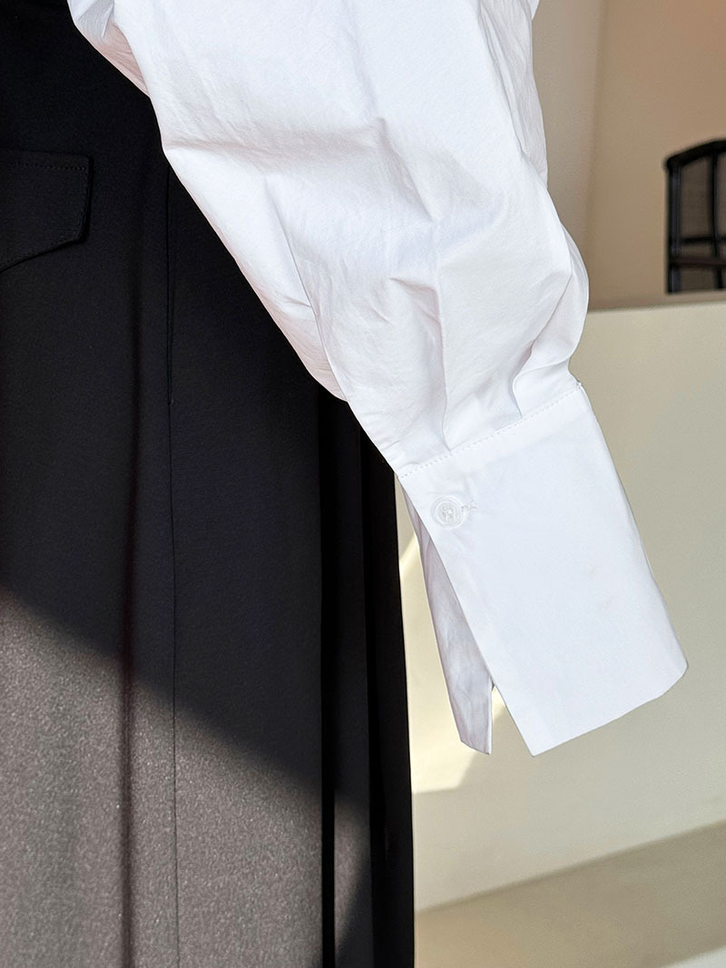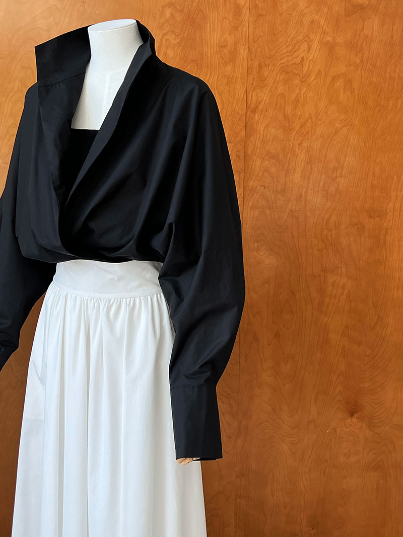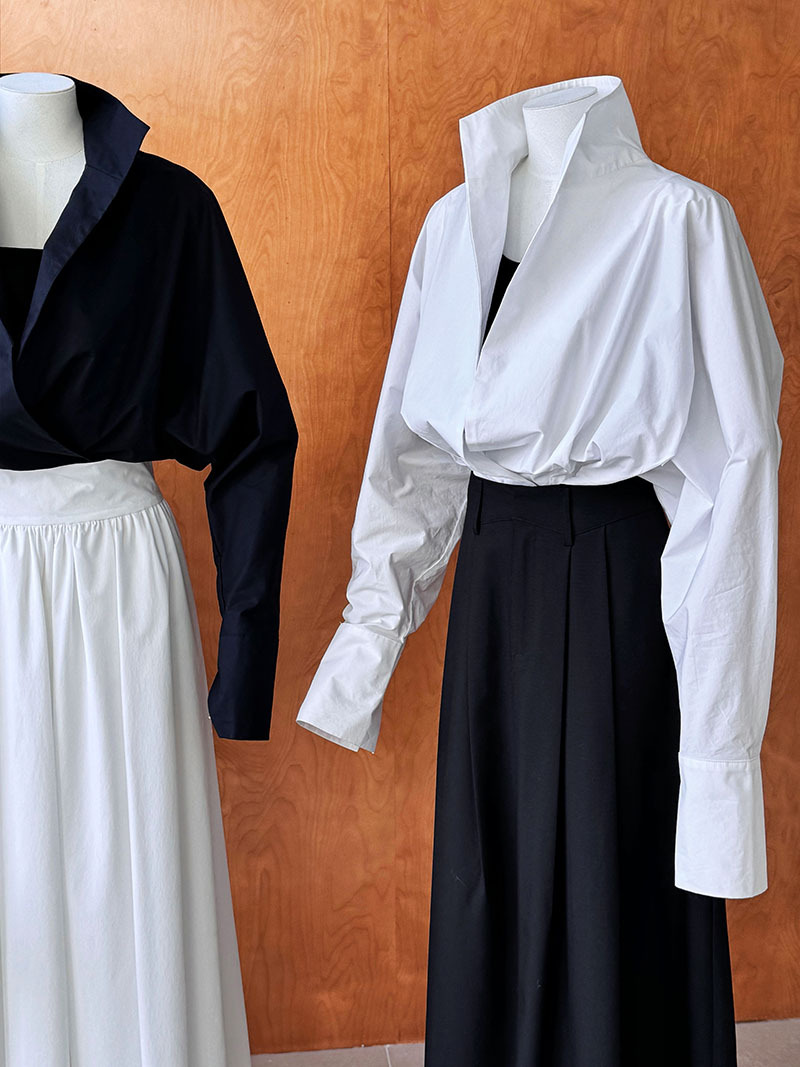 廓形疊穿蝙蝠袖深V立領襯衫-2色