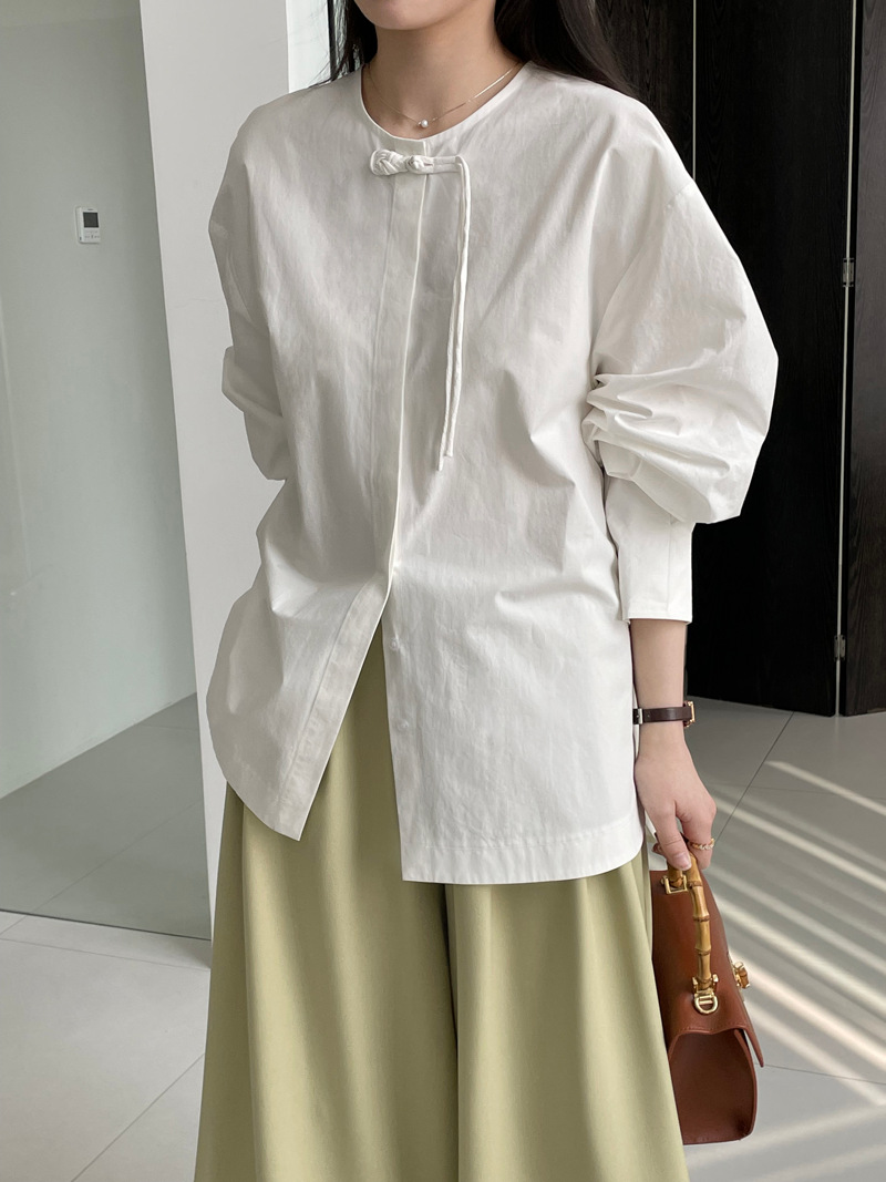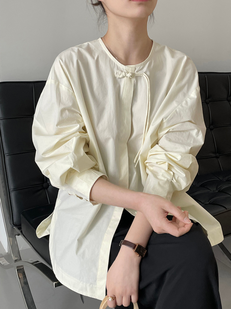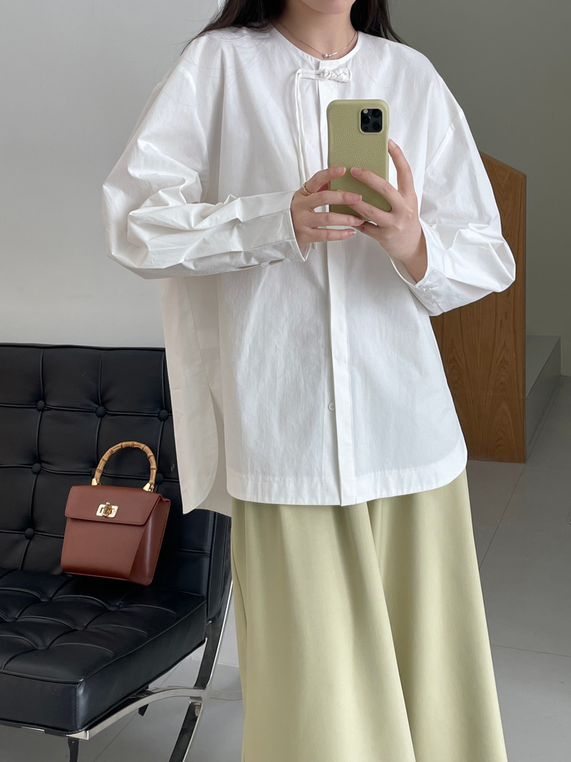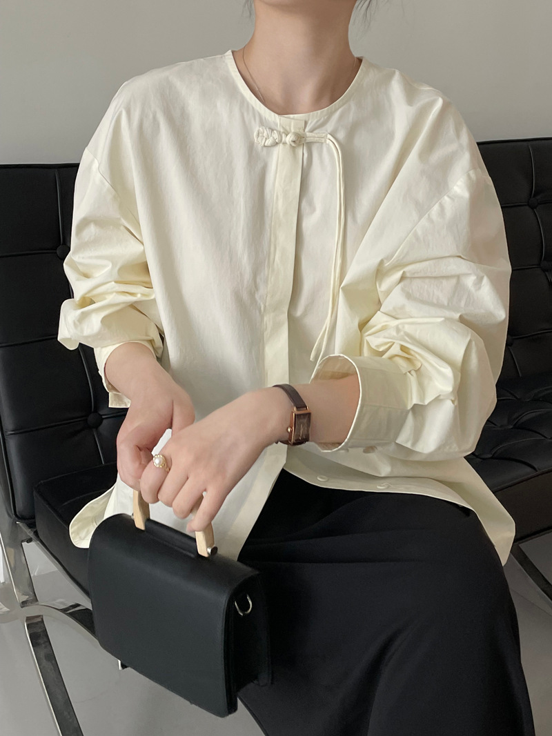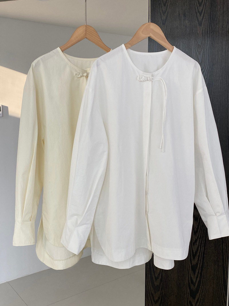 (48H出貨)古典白茶盤扣設計寬鬆襯衫-2色