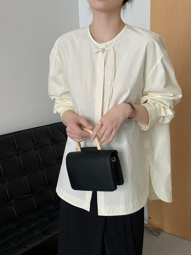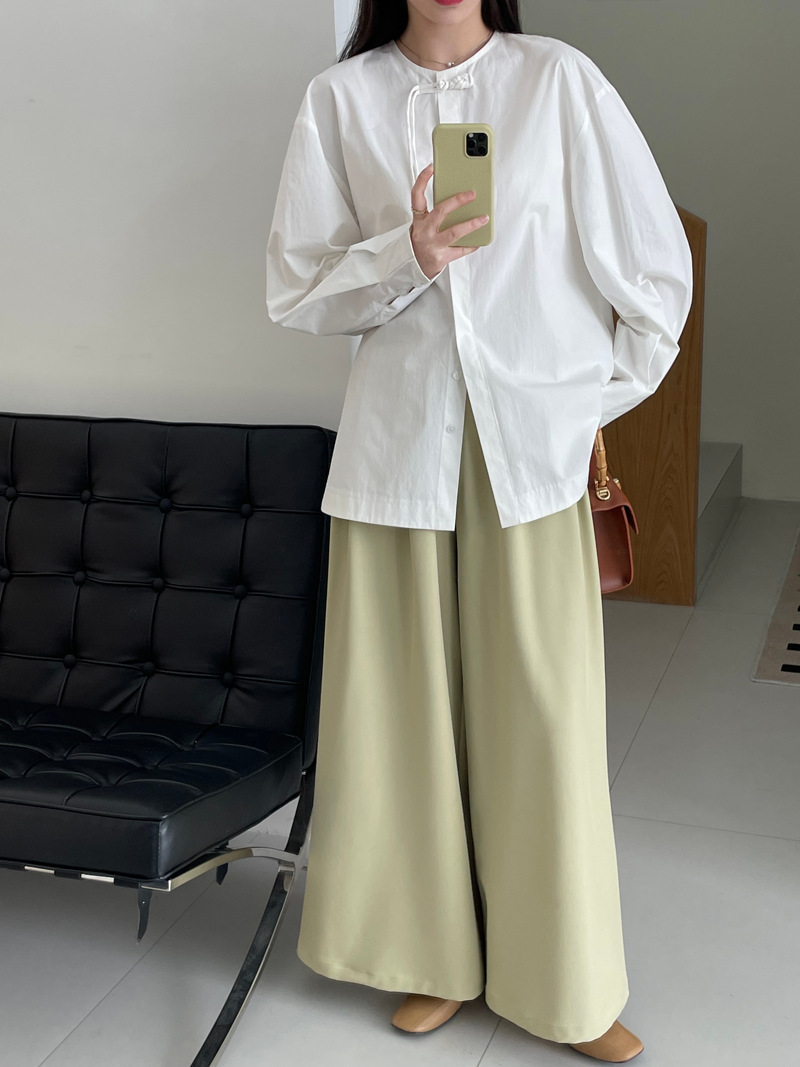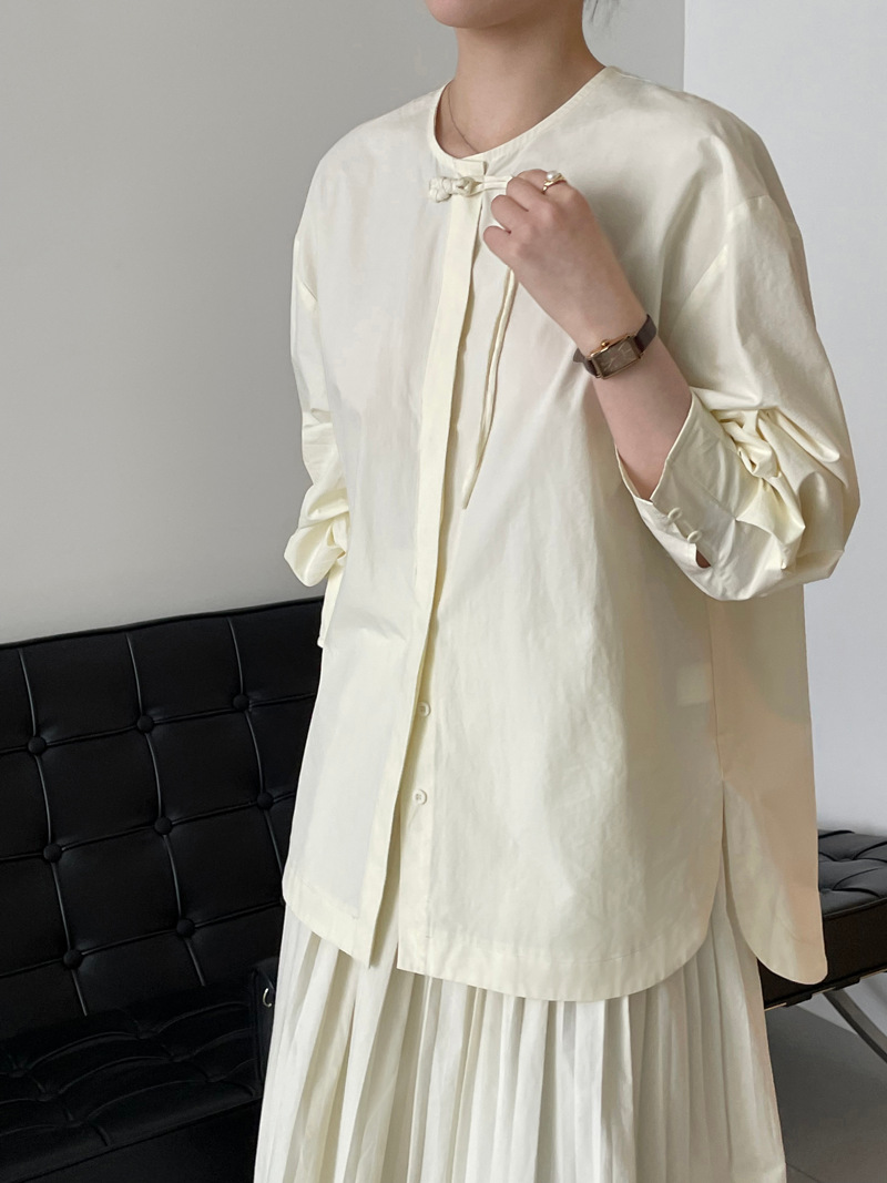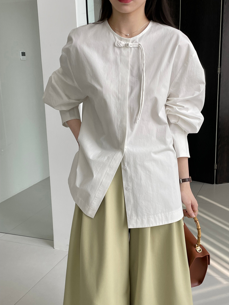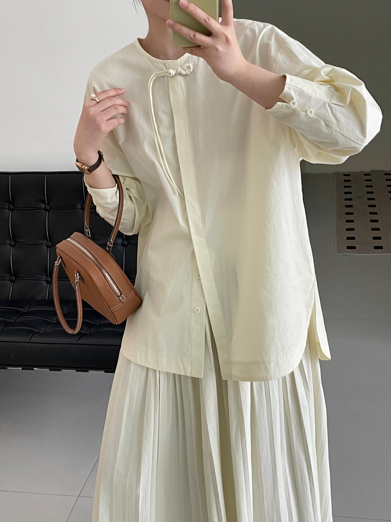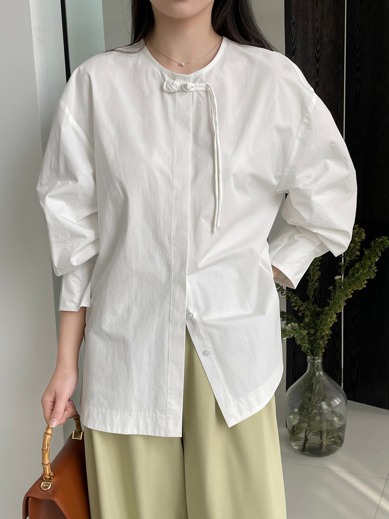 (48H出貨)古典白茶盤扣設計寬鬆襯衫-2色