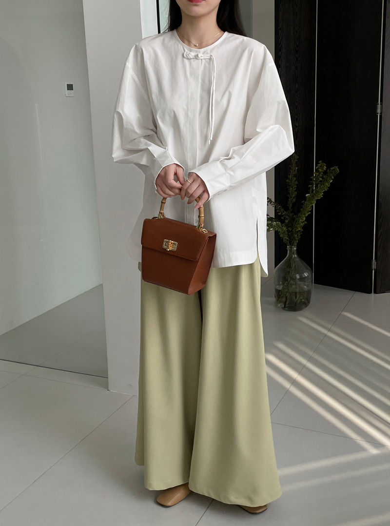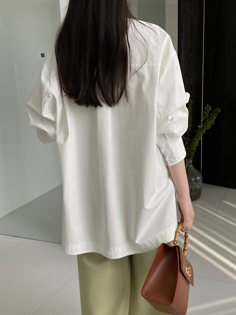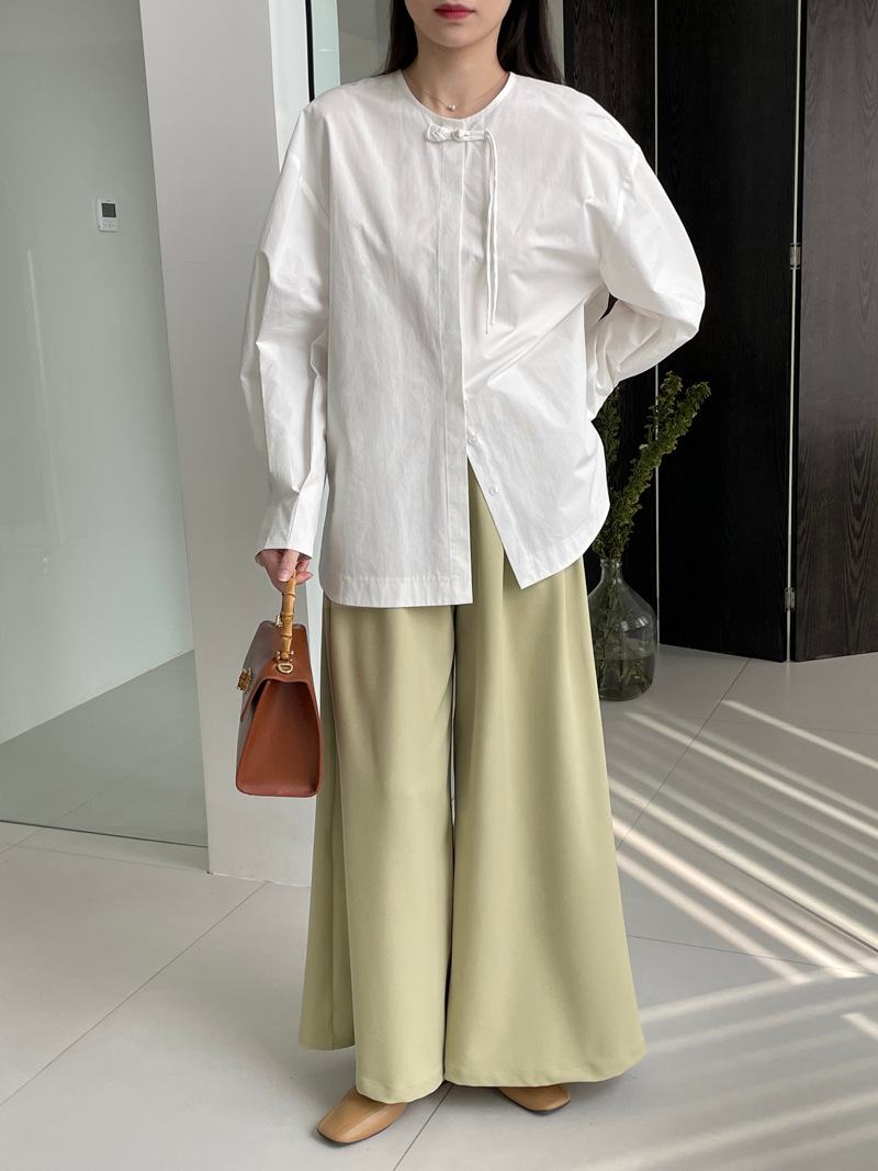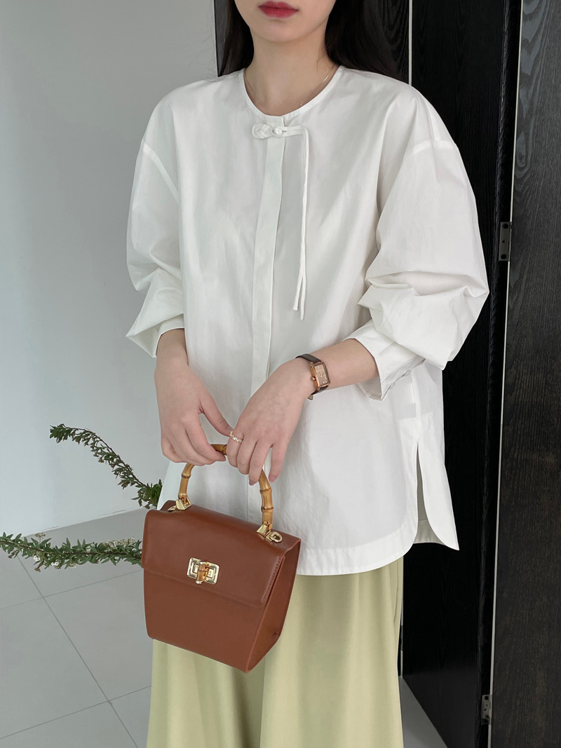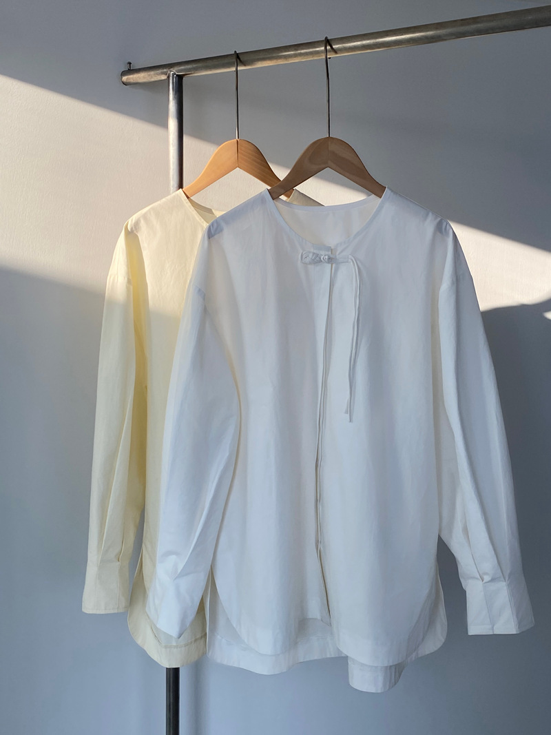 (48H出貨)古典白茶盤扣設計寬鬆襯衫-2色