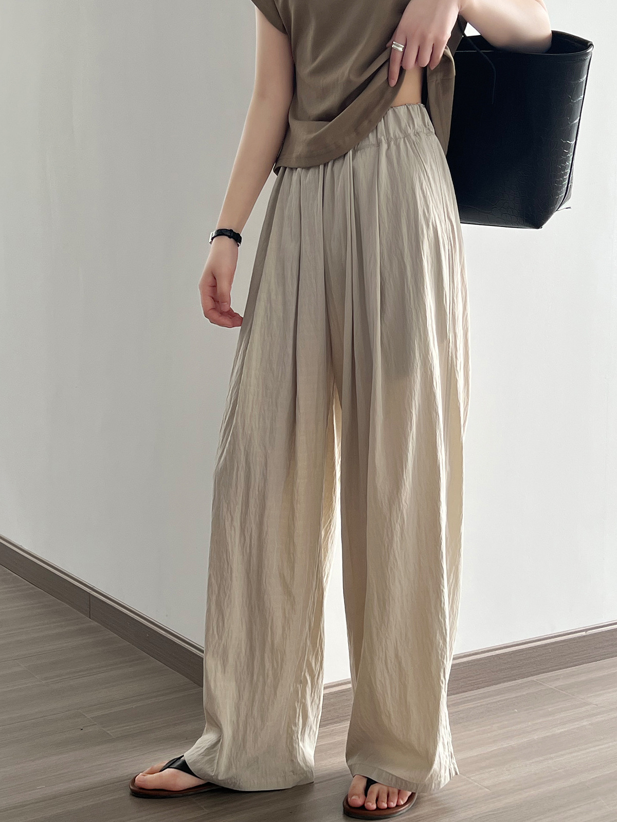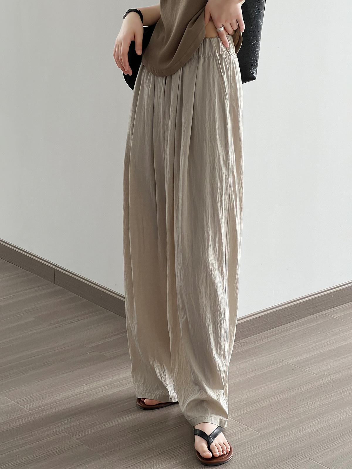 (48H出貨)日系慵懶褶皺闊腿休閒褲