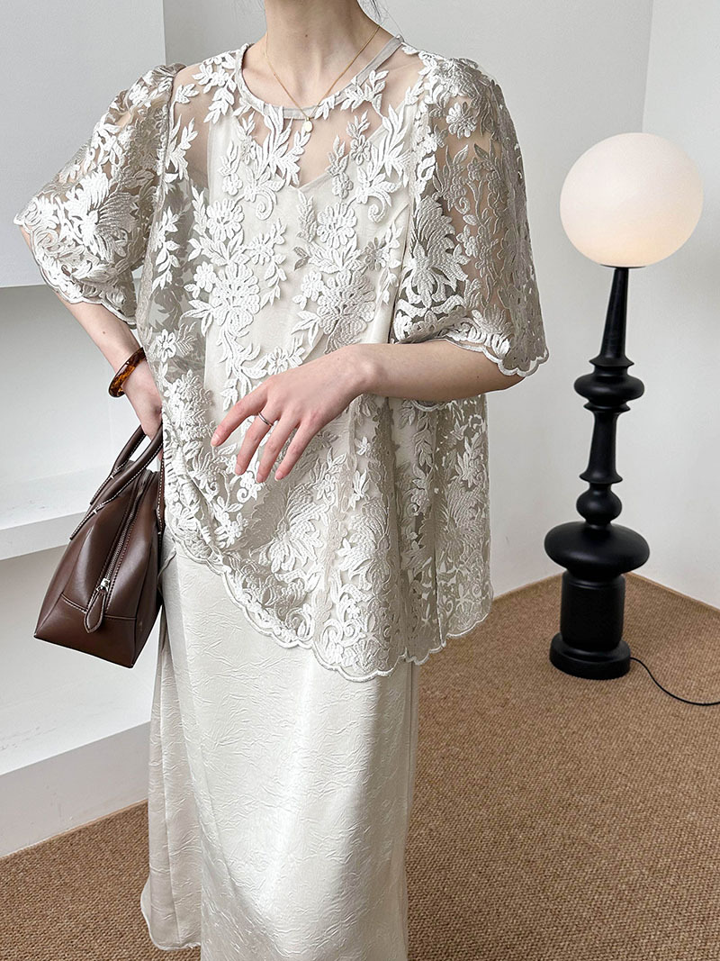(48H出貨)法式優雅刺繡花朵圓領襯衫