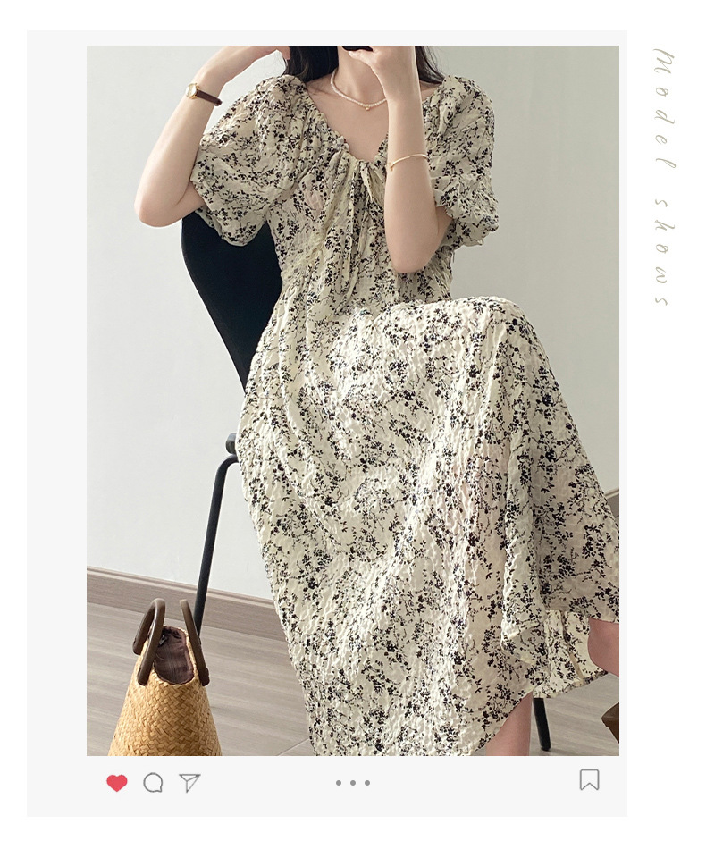 (48H出貨)法式碎花V領水墨花連身裙-2色