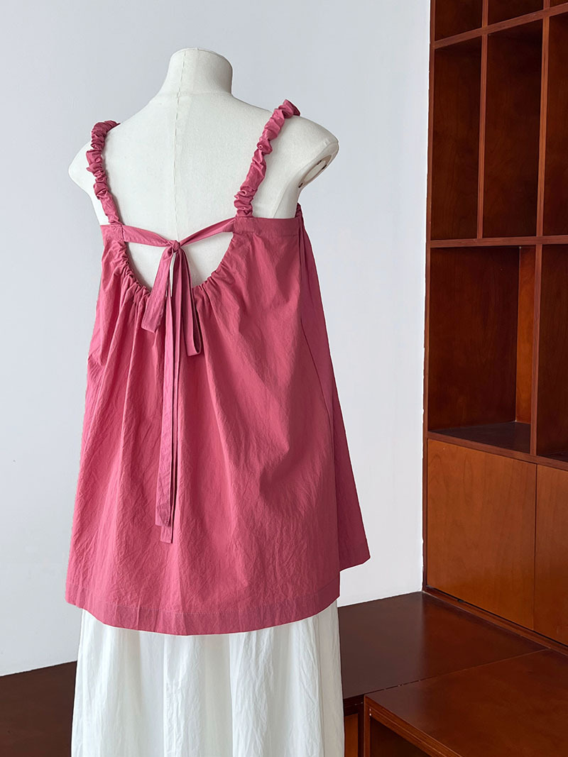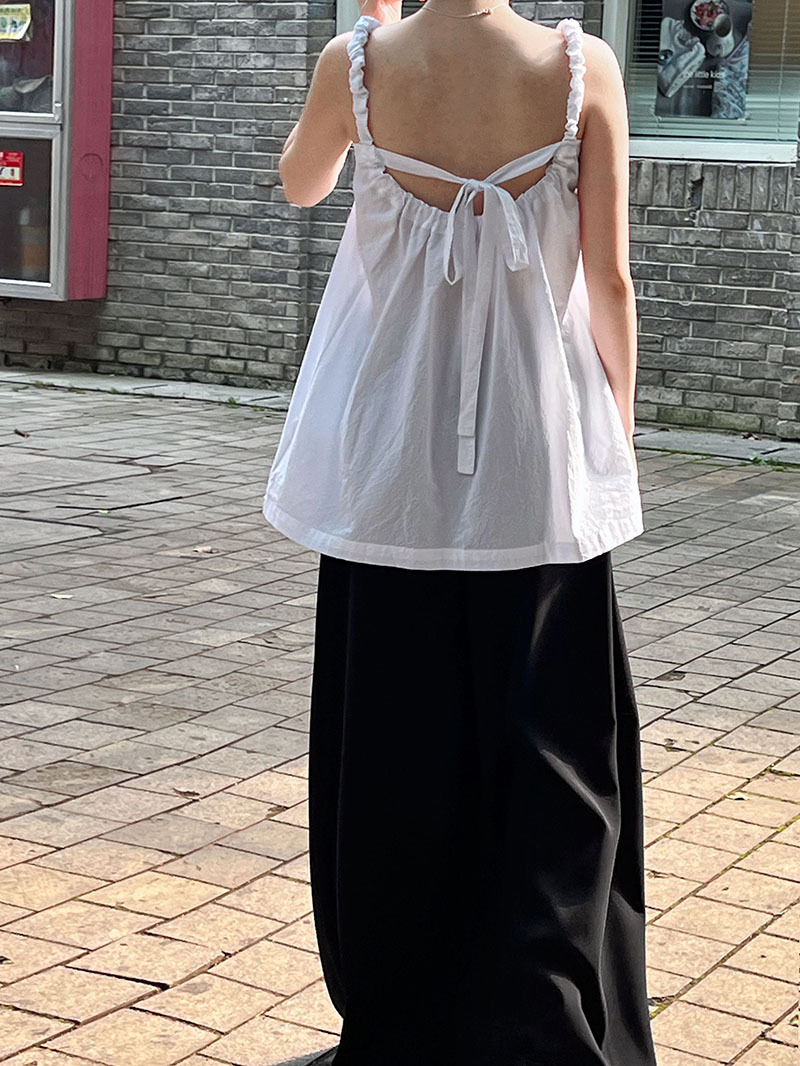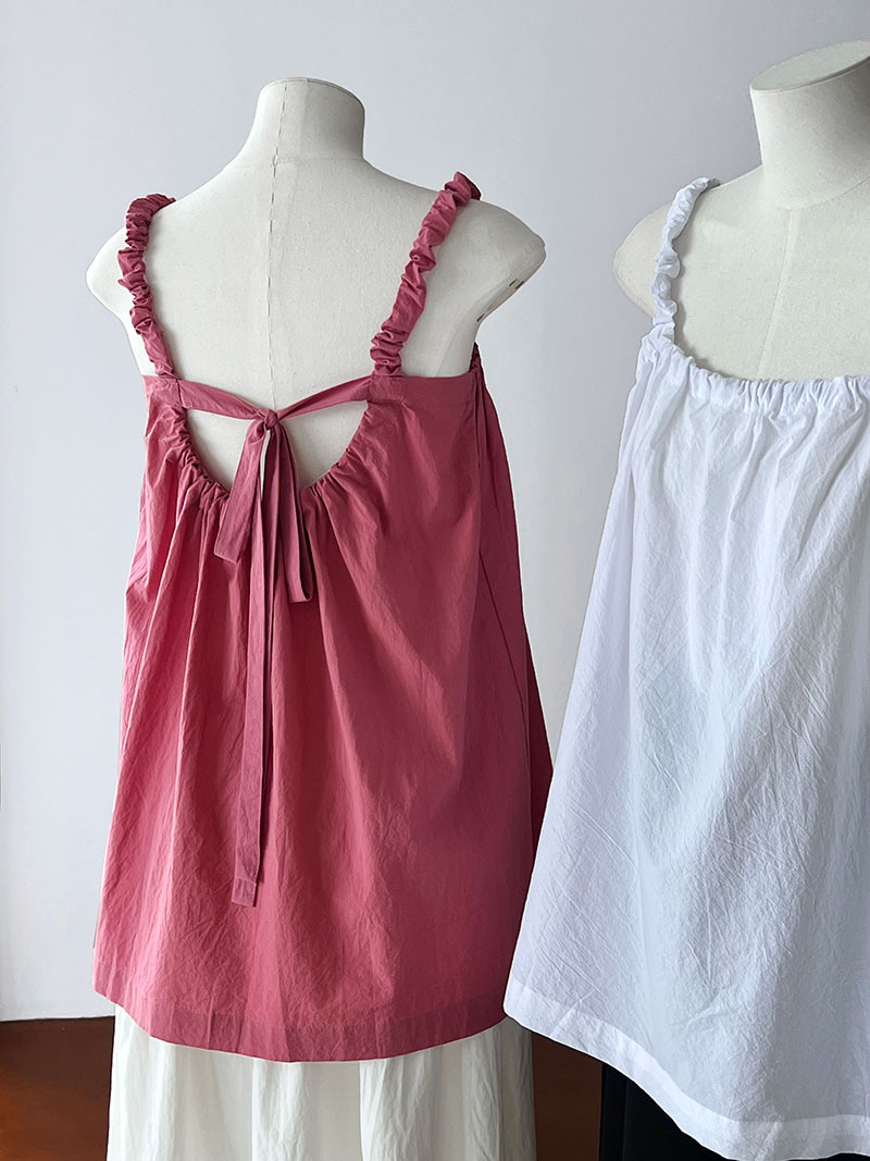(48H出貨)甜美露背蝴蝶結無袖娃娃衫吊帶背心-2色