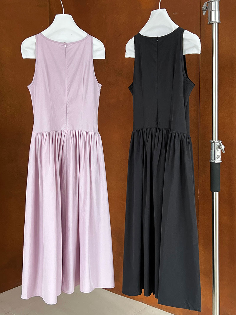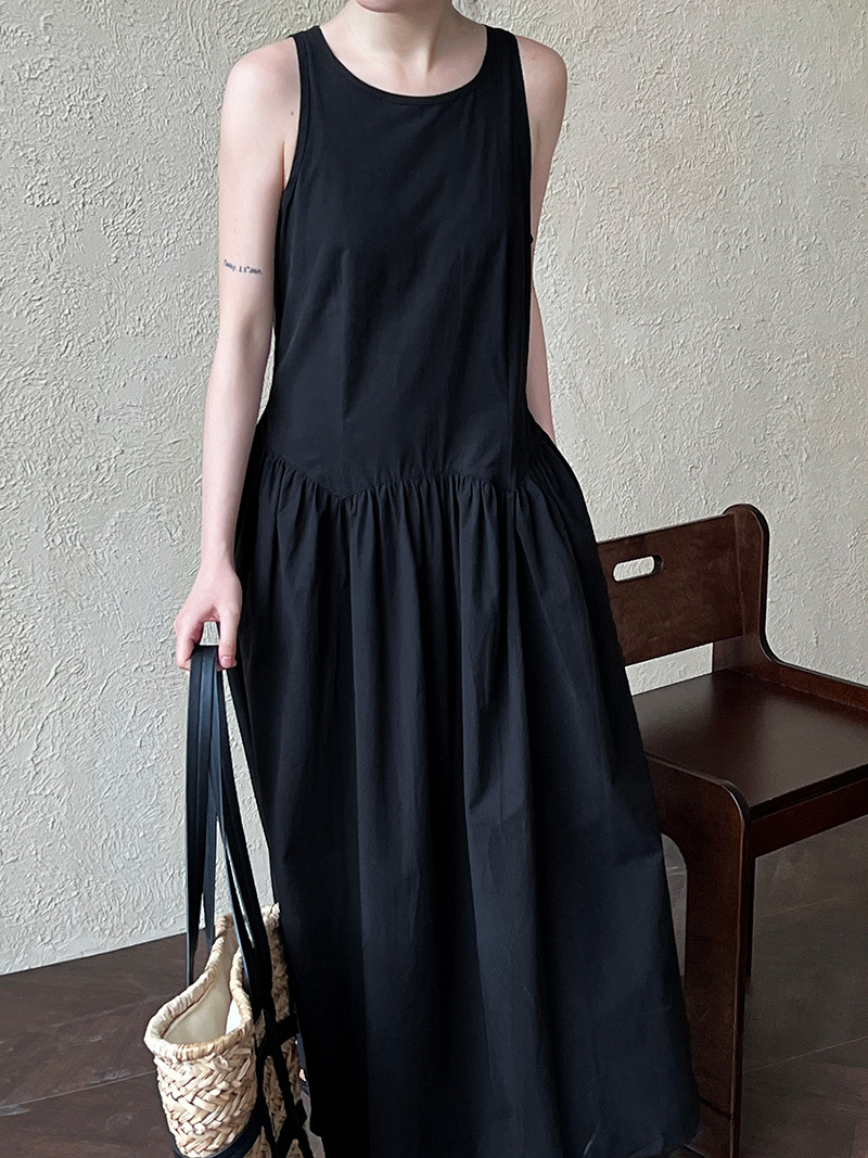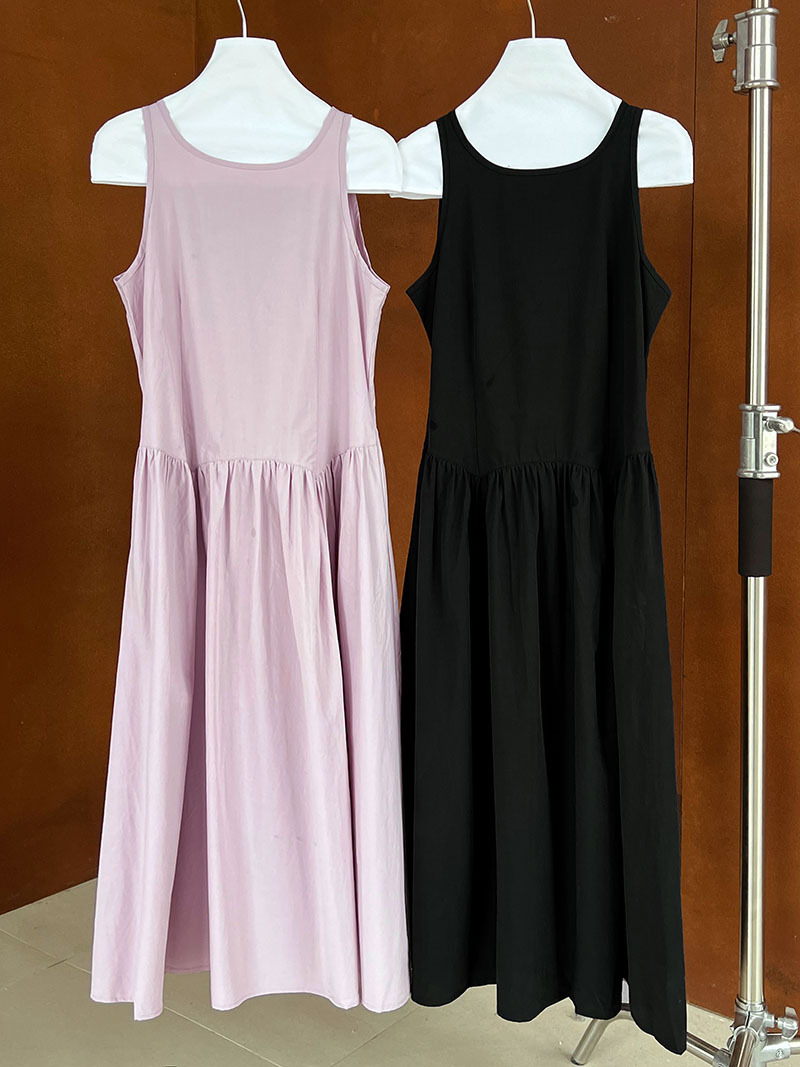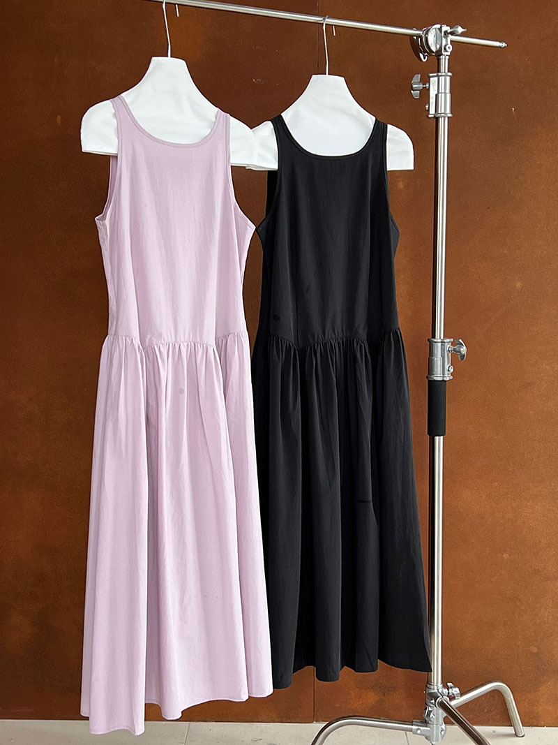 (48H出貨)簡約氣質褶皺背心無袖連身裙-2色