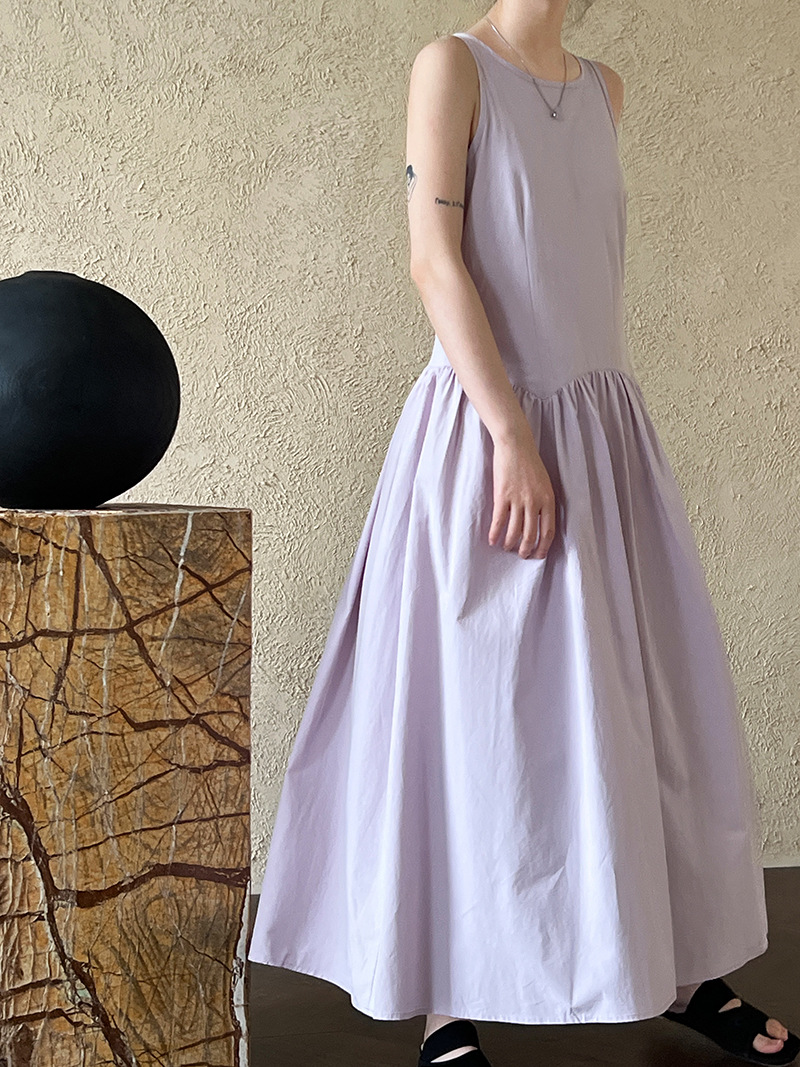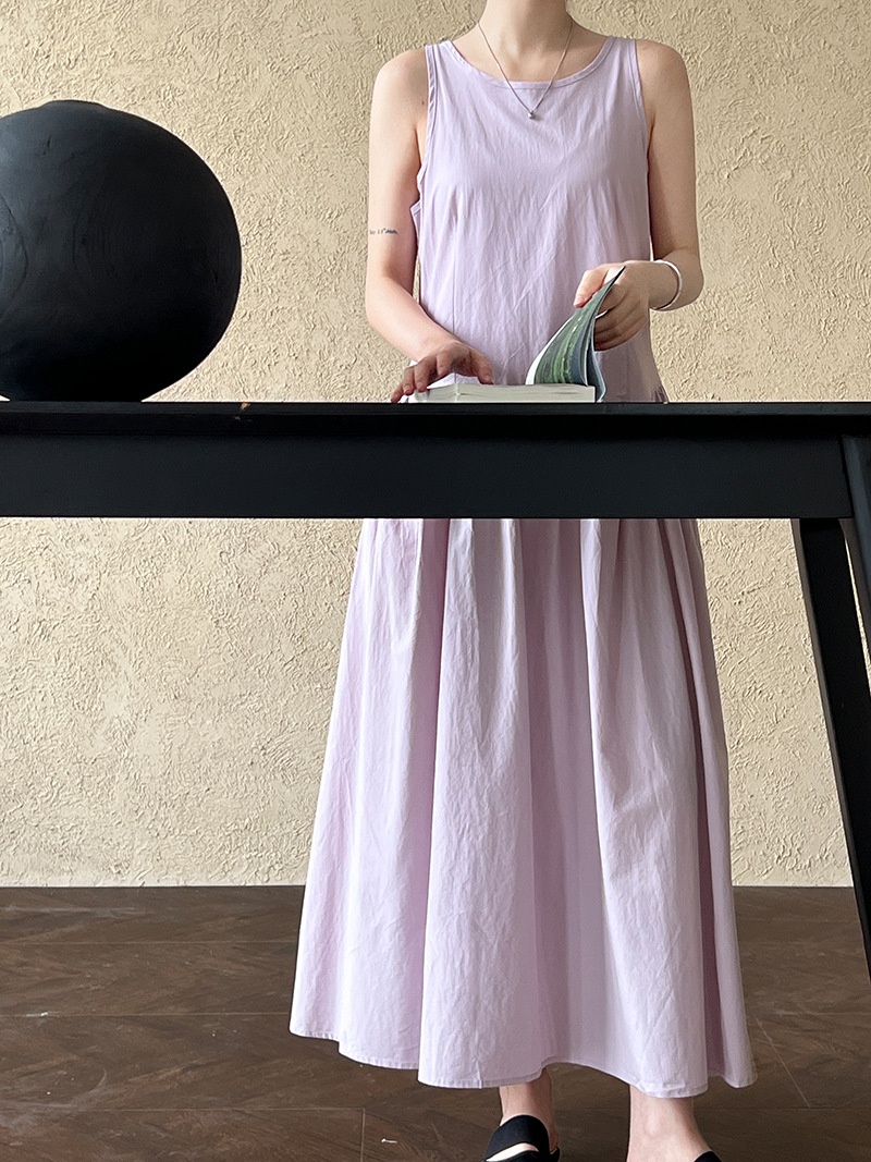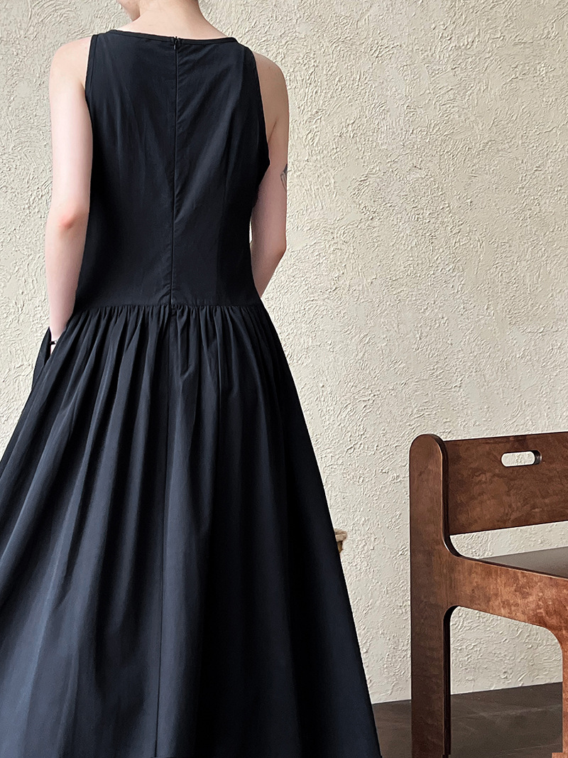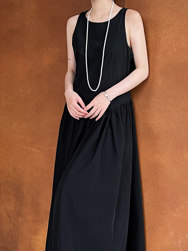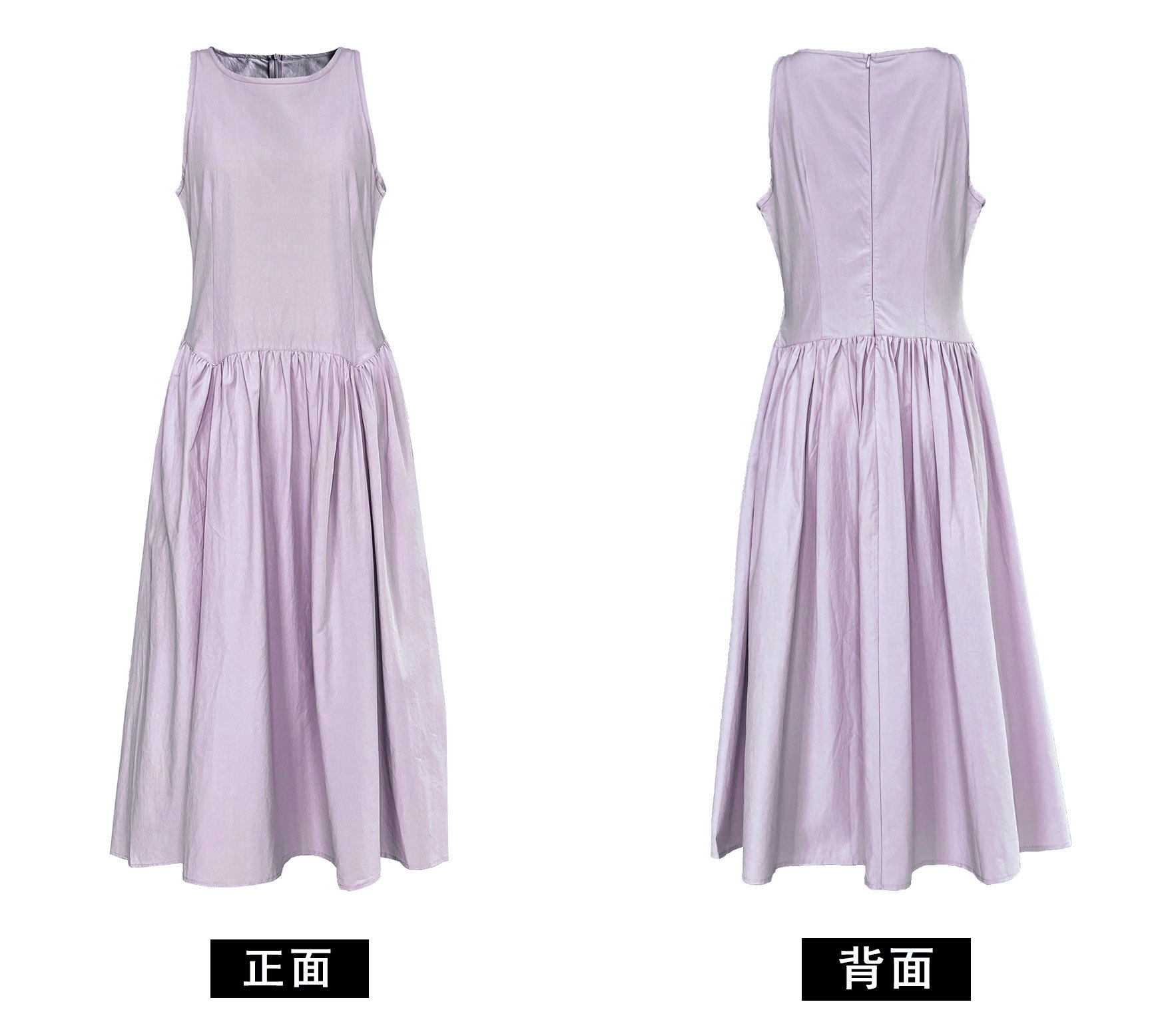 (48H出貨)簡約氣質褶皺背心無袖連身裙-2色
