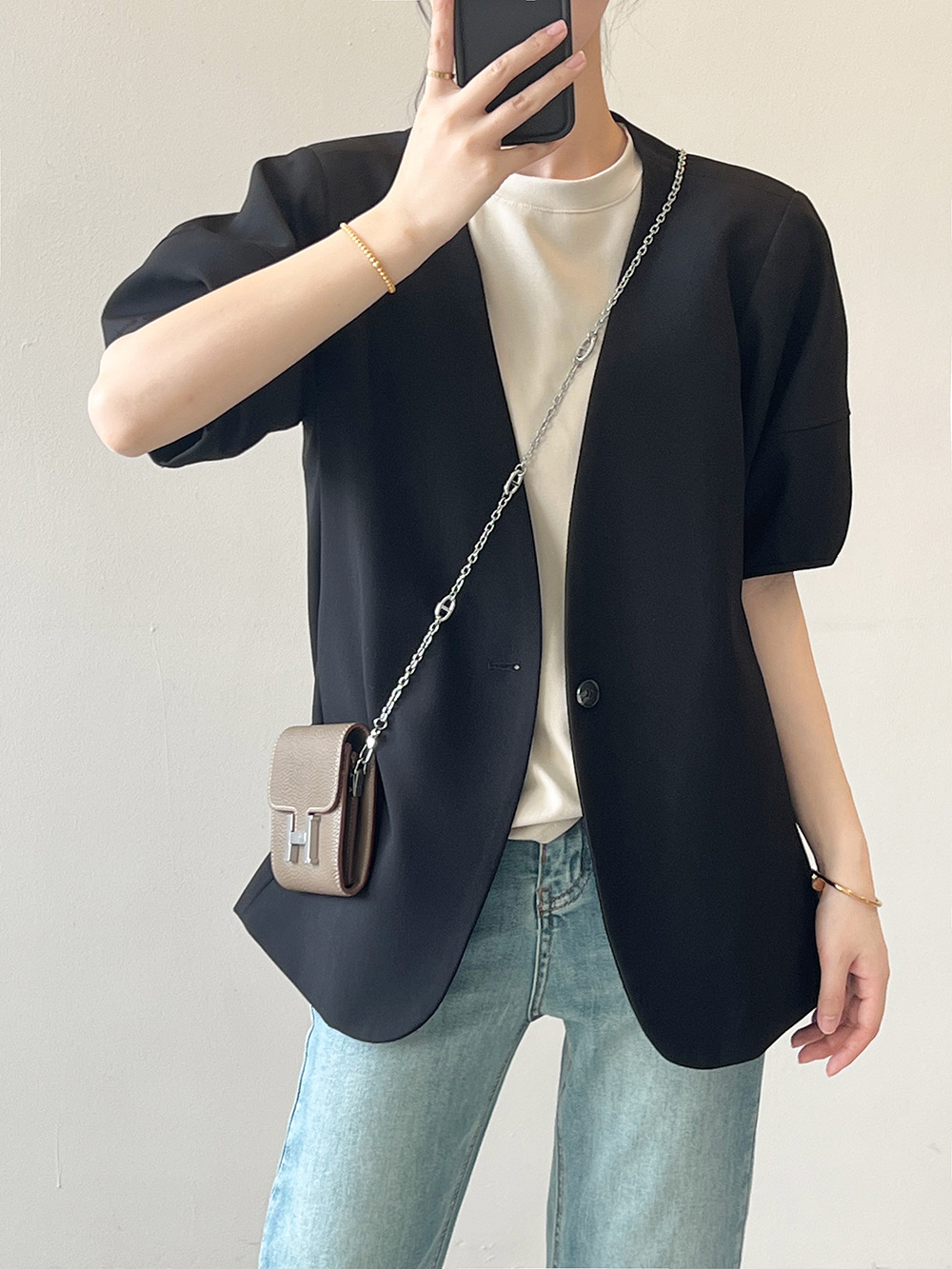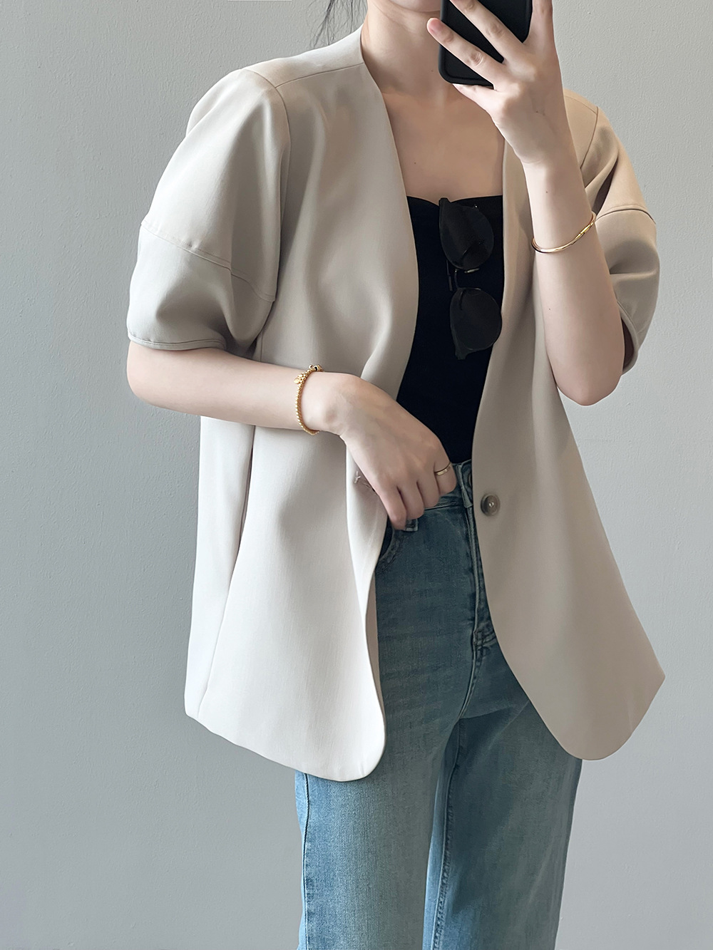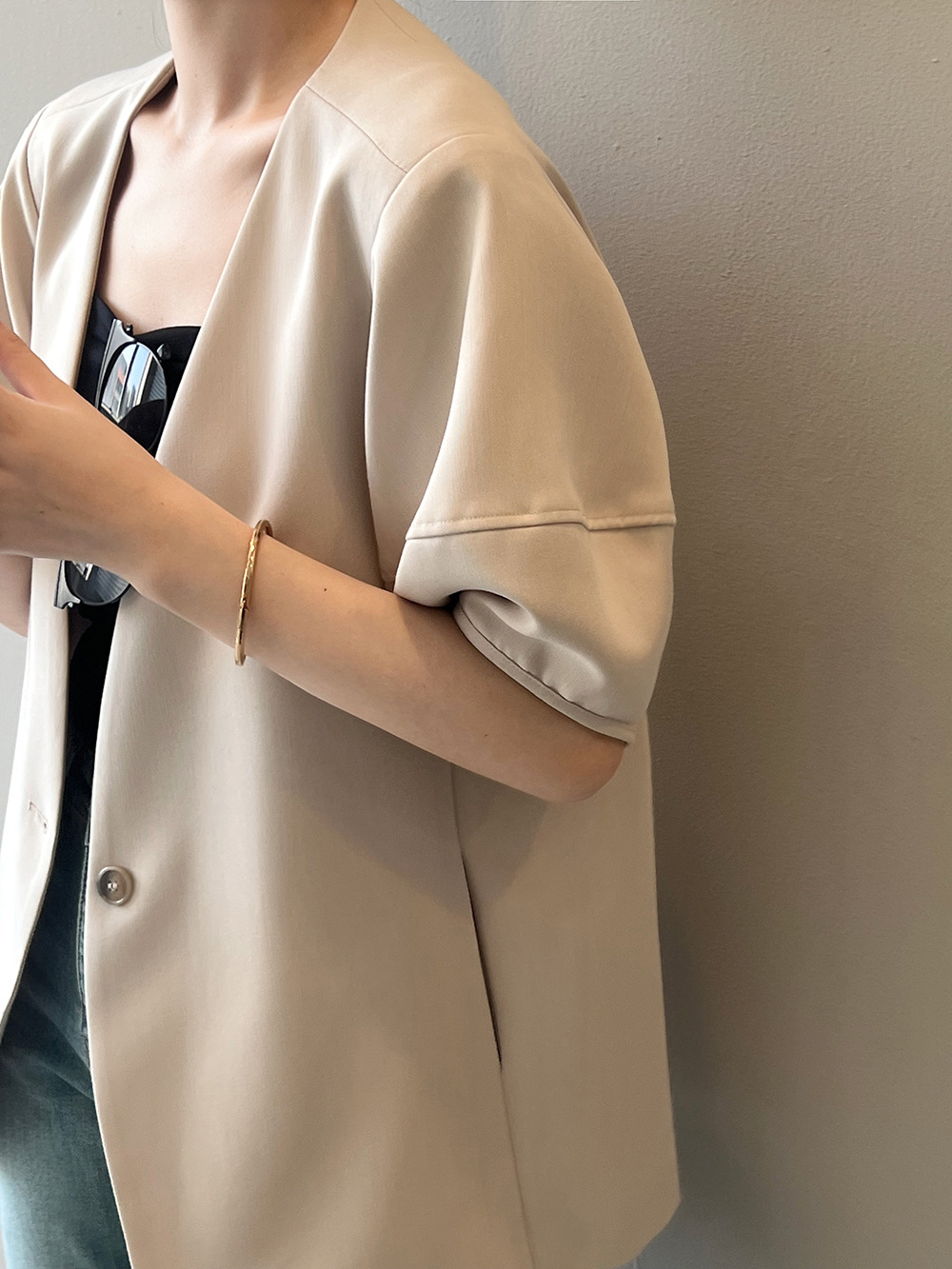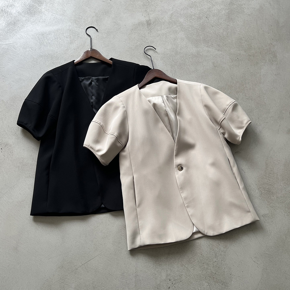 (48H出貨)韓版泡泡袖短袖西裝外套-2色