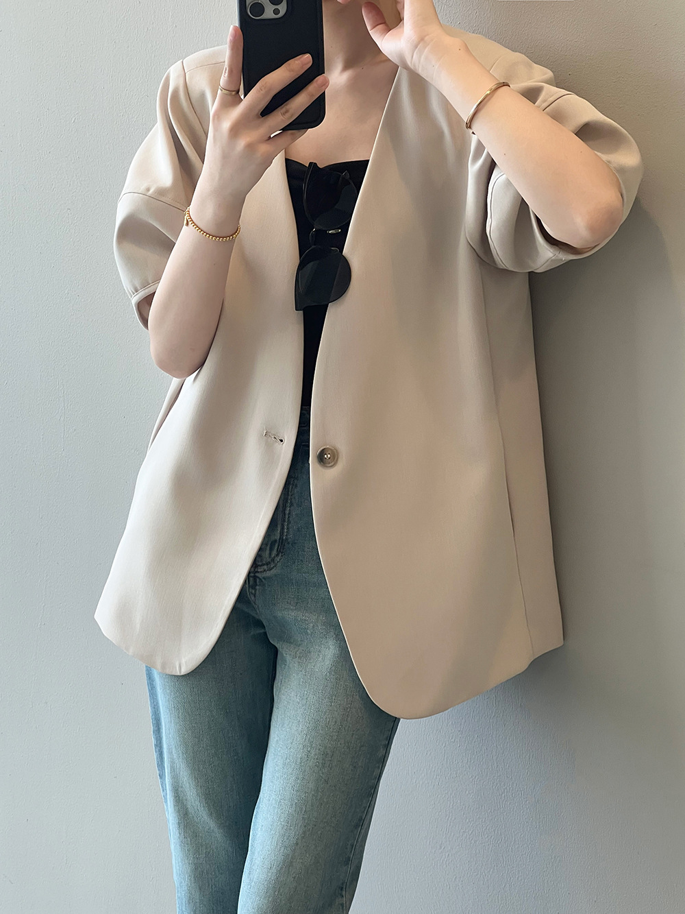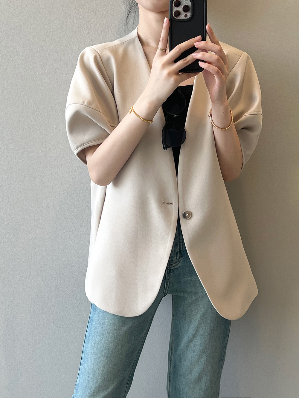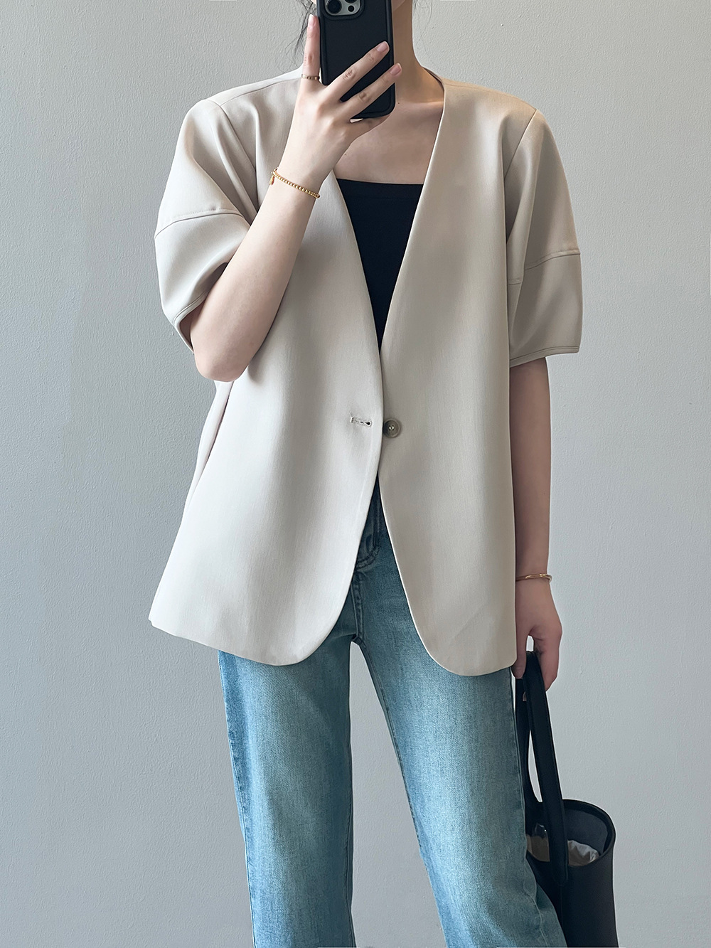 (48H出貨)韓版泡泡袖短袖西裝外套-2色