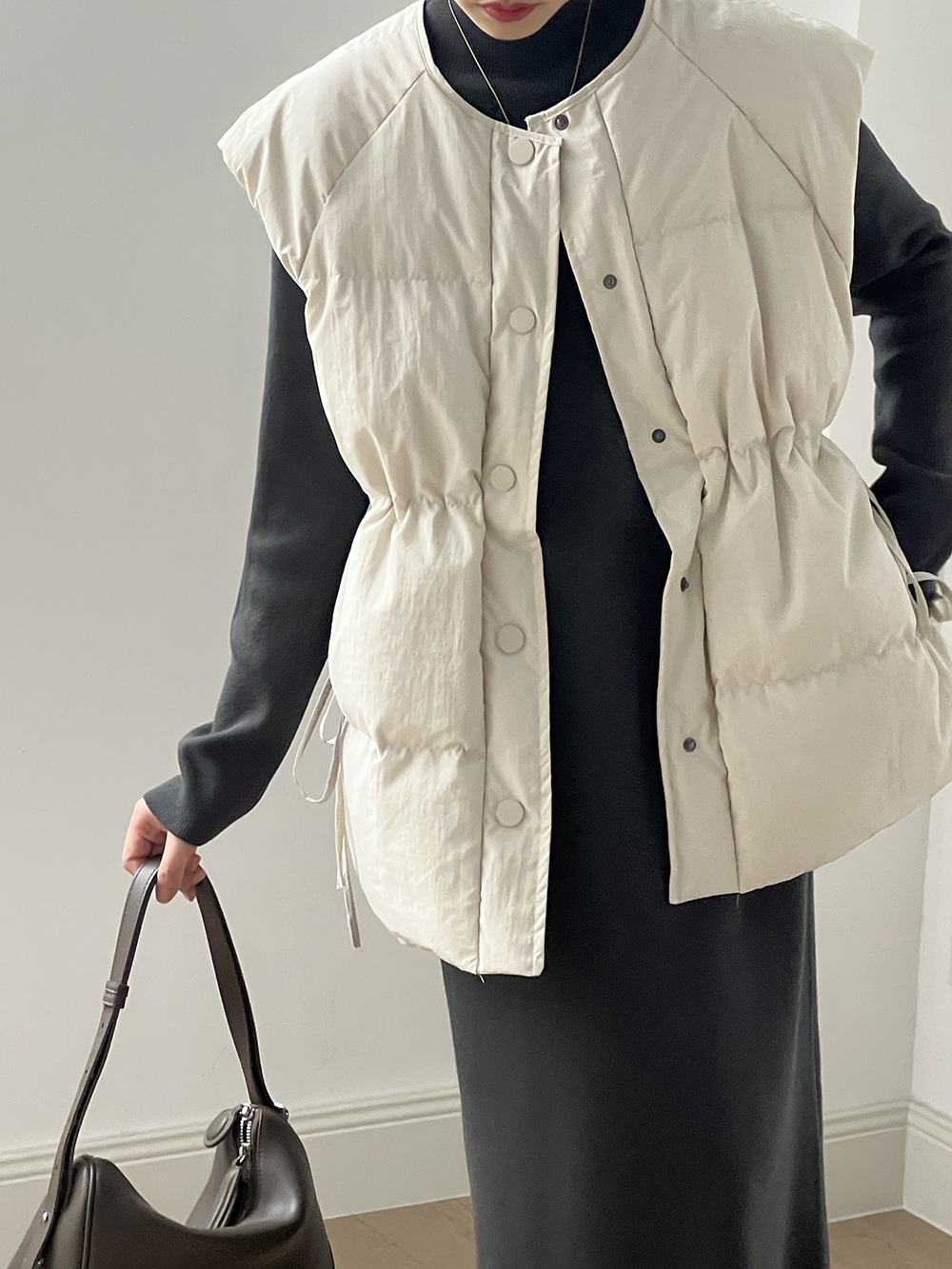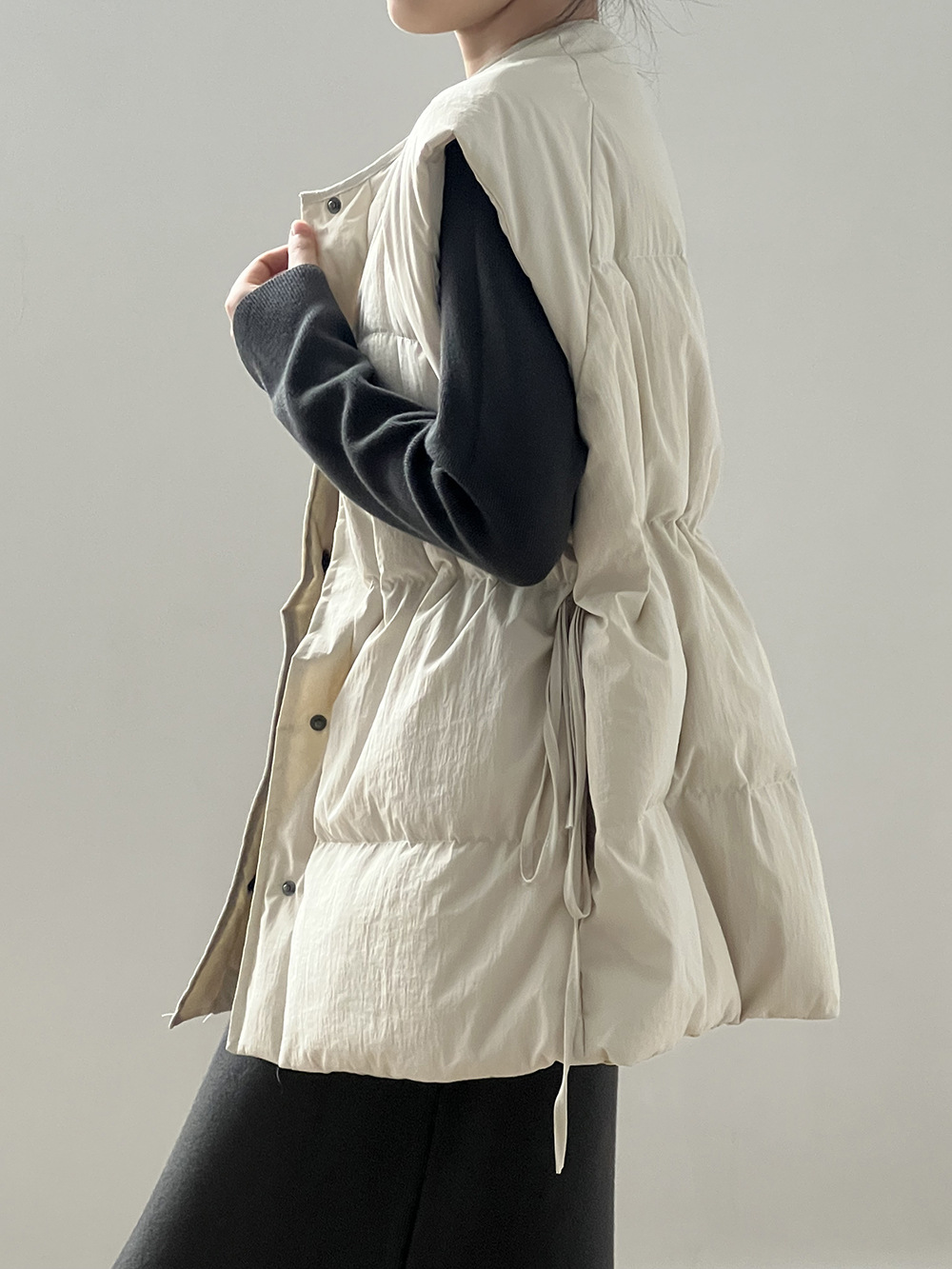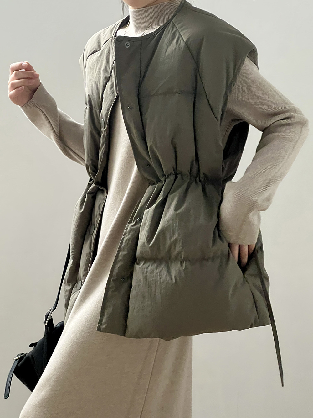 (48H出貨)韓版特色收腰中長羽絨馬甲外套-3色