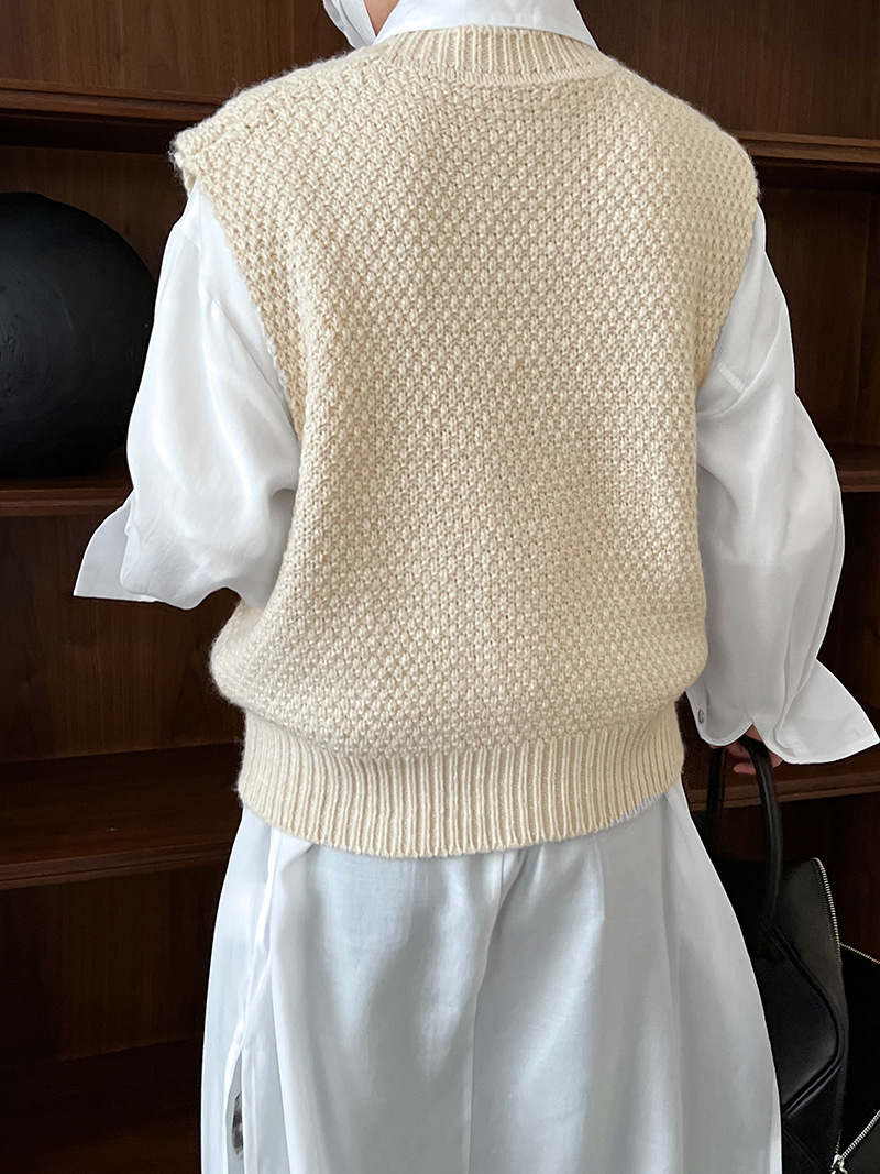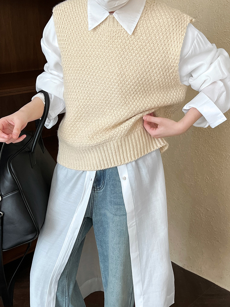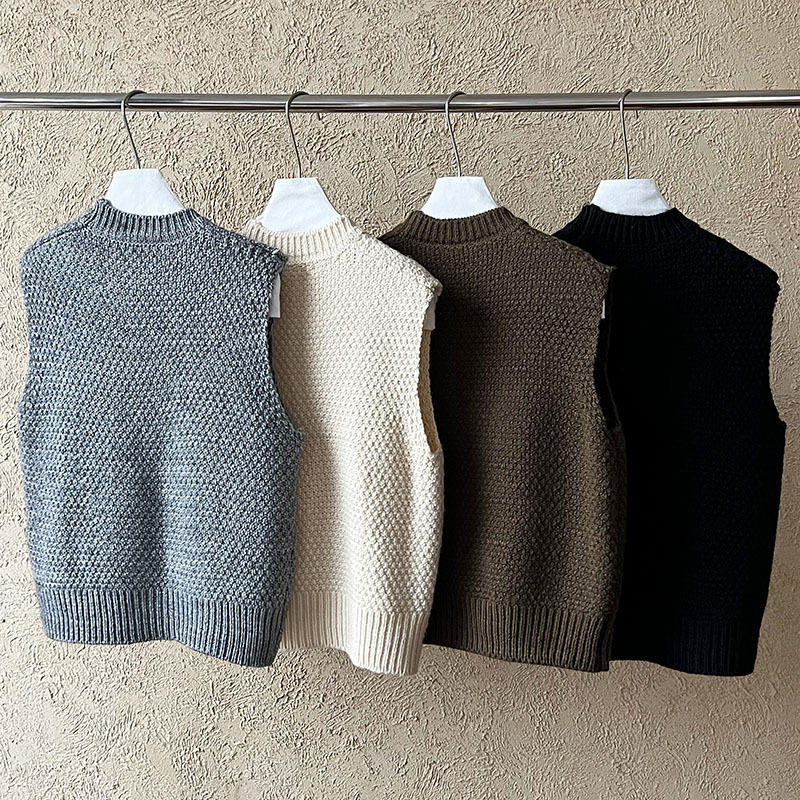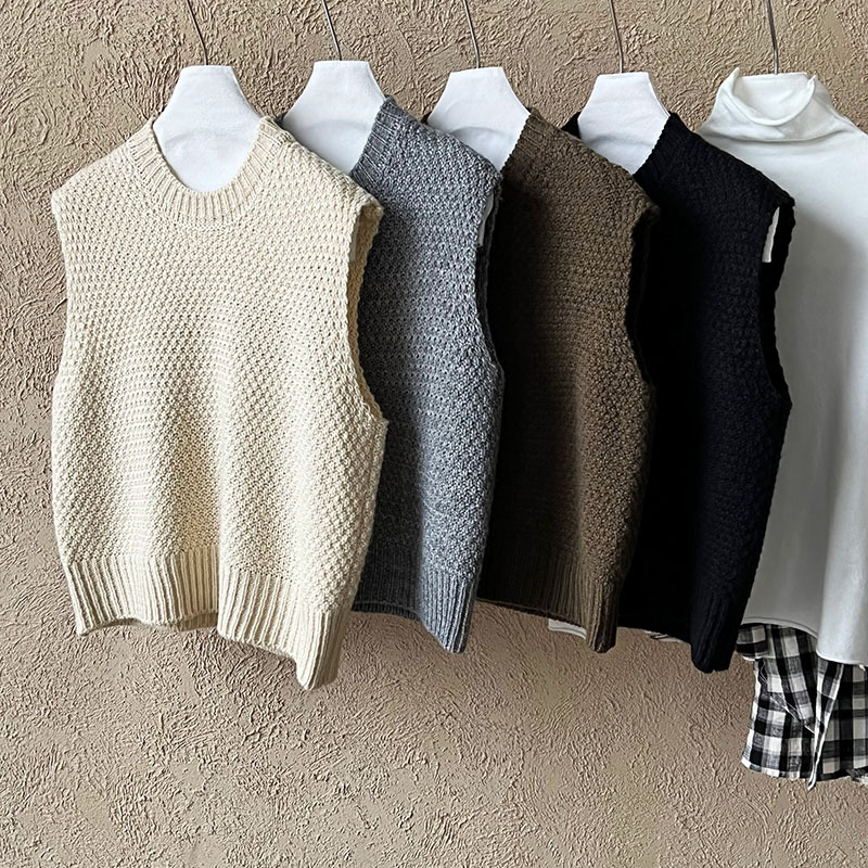 (48H出貨)復古純色軟糯馬甲圓領疊穿針織背心-4色