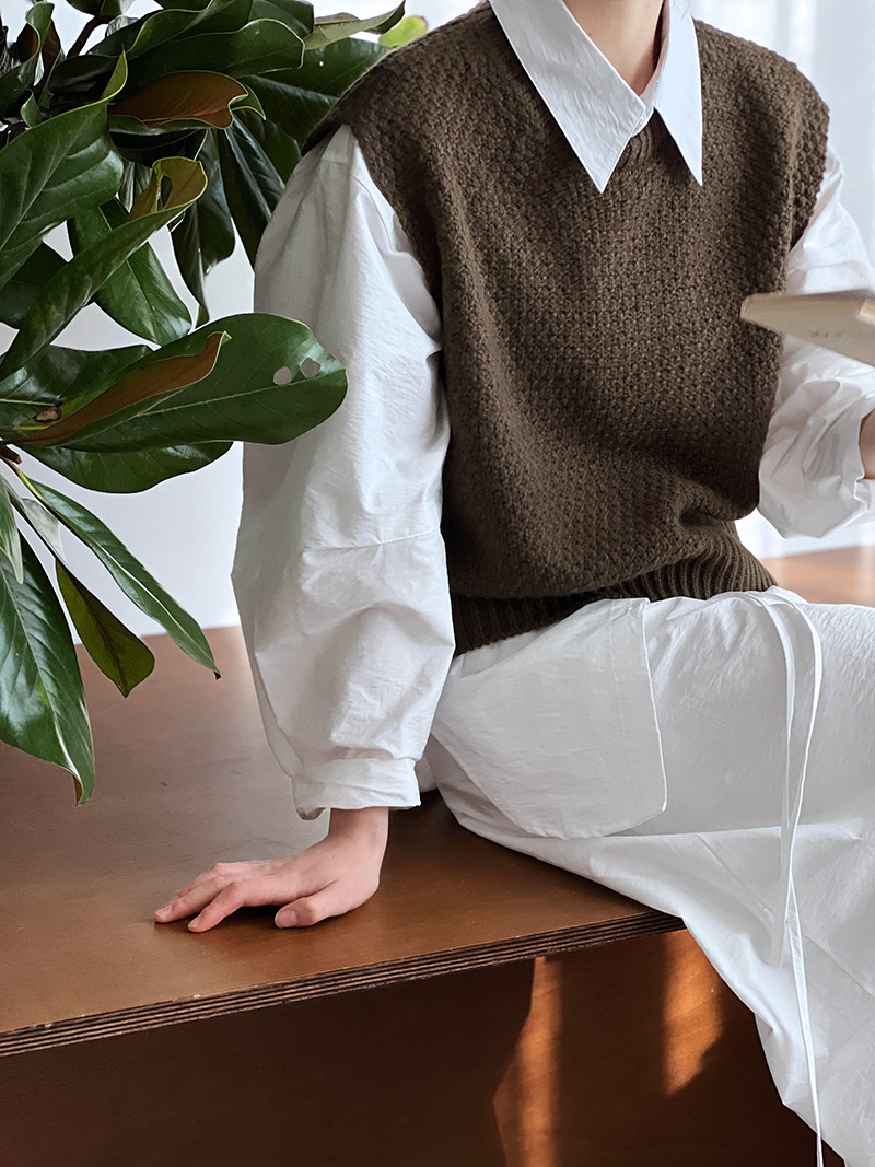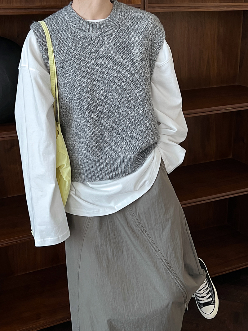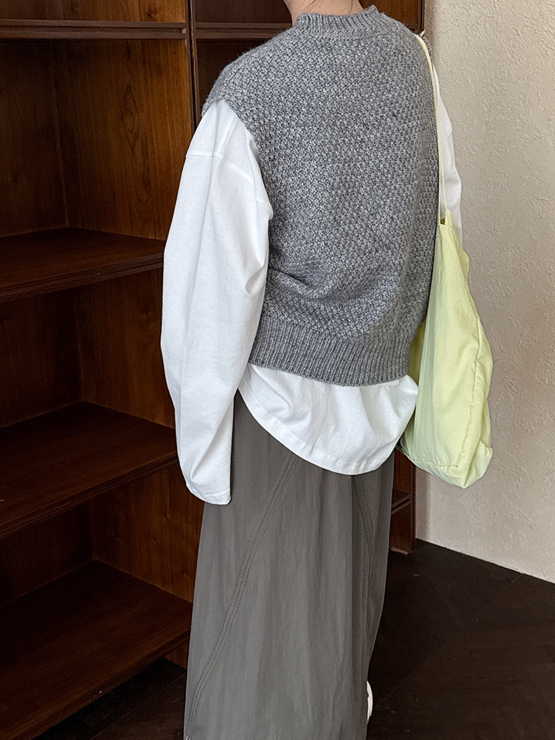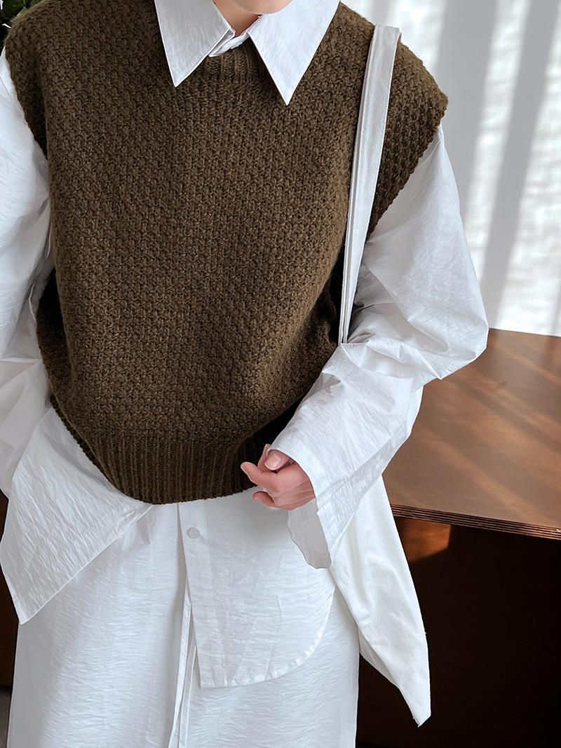 (48H出貨)復古純色軟糯馬甲圓領疊穿針織背心-4色