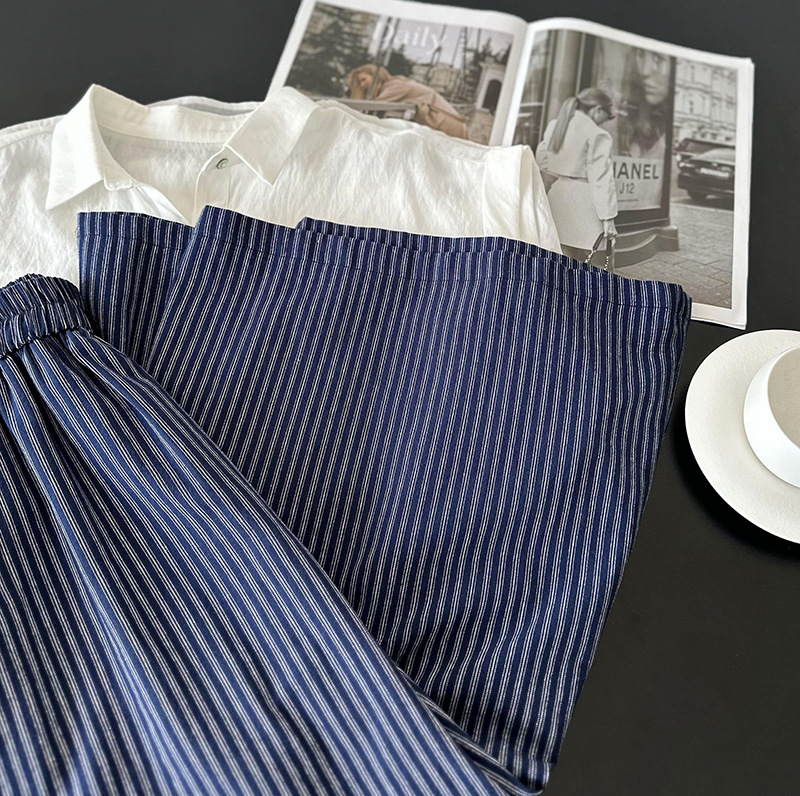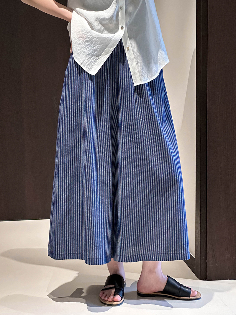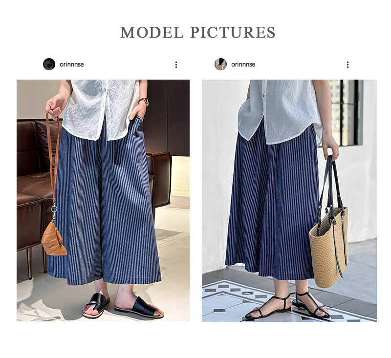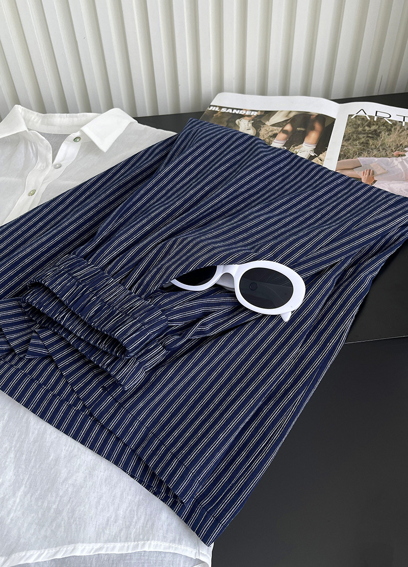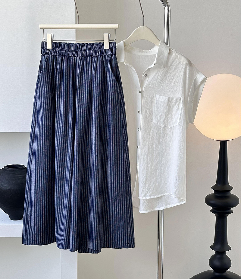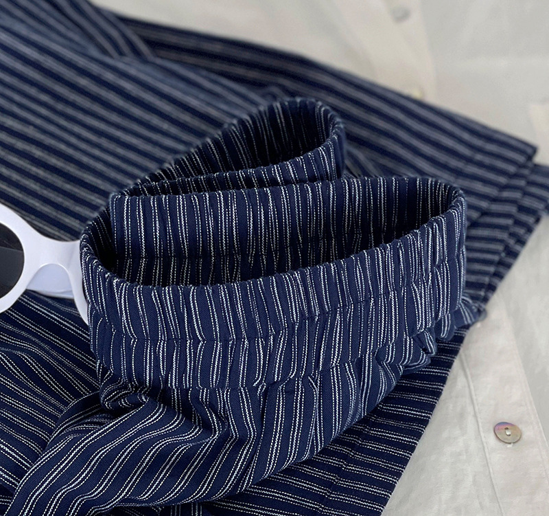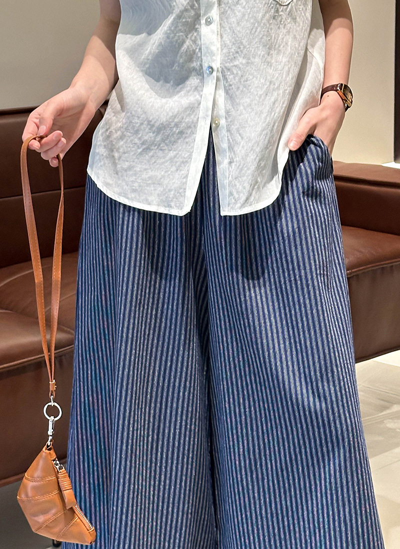 (48H出貨)日系條紋鬆緊高腰寬鬆度假風裙褲