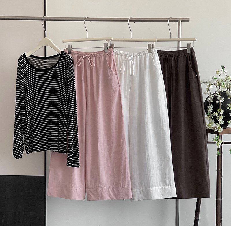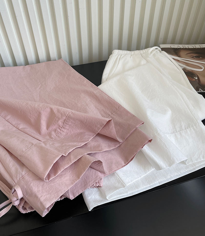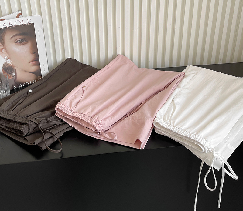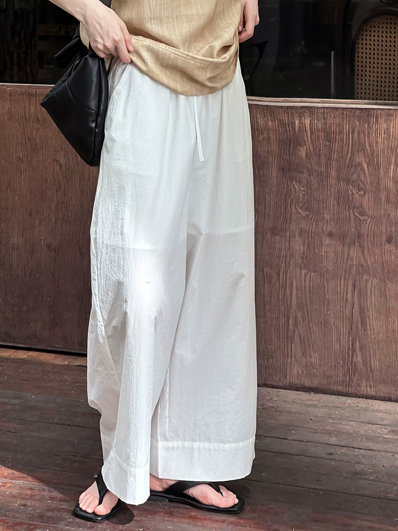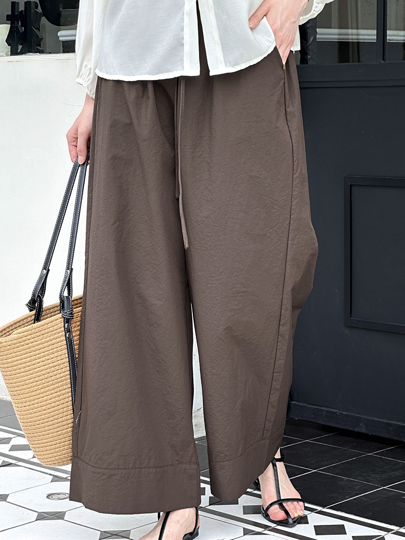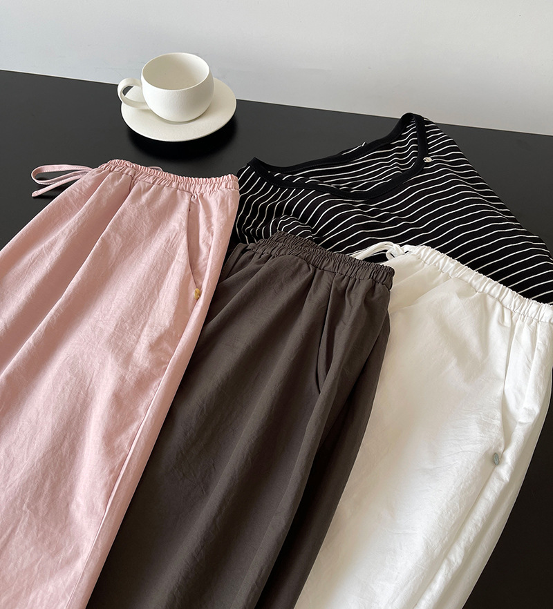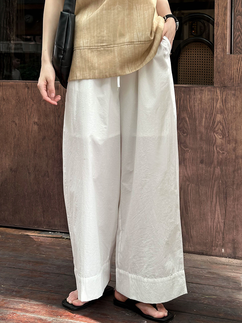 (48H出貨)日系簡約抽繩鬆緊百搭寬口褲-3色