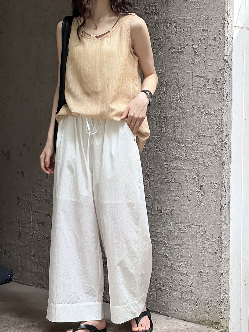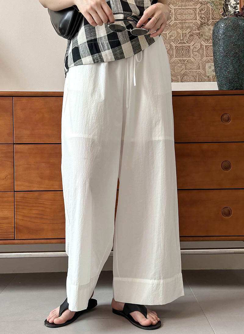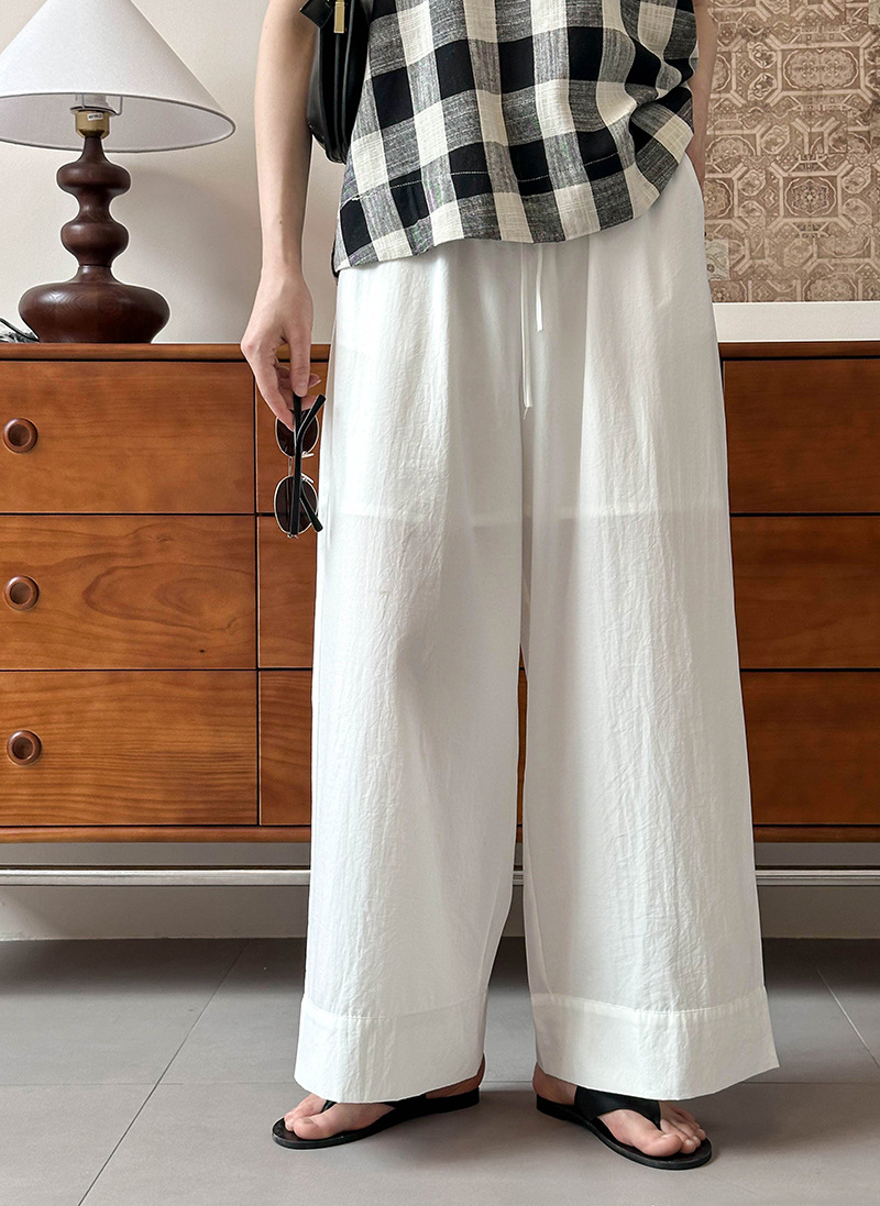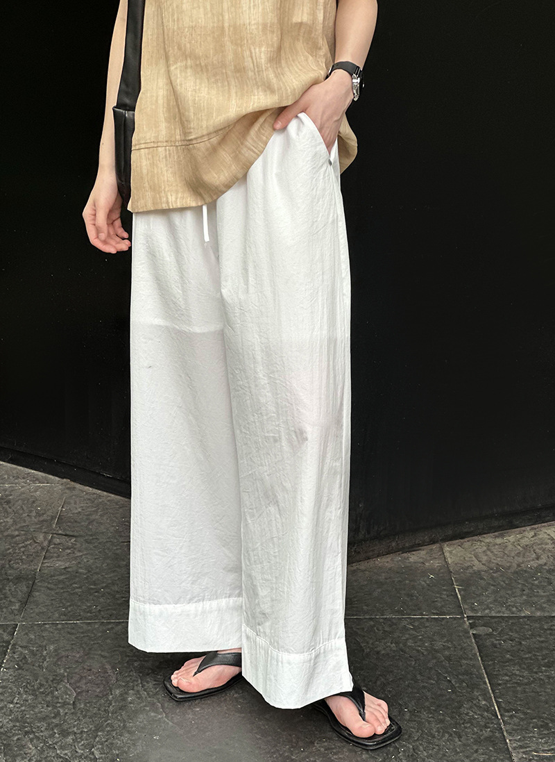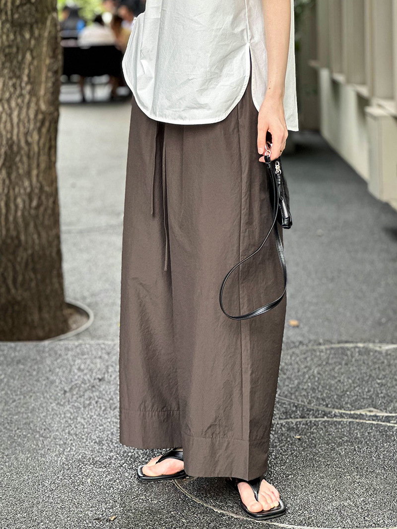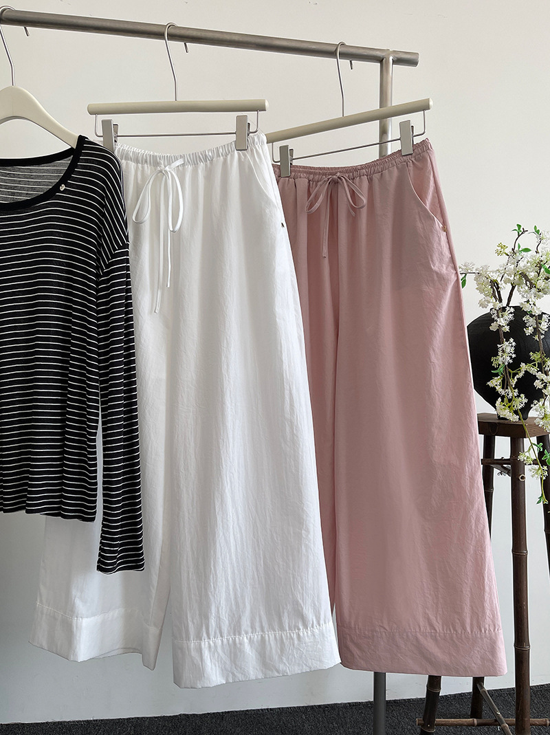 (48H出貨)日系簡約抽繩鬆緊百搭寬口褲-3色