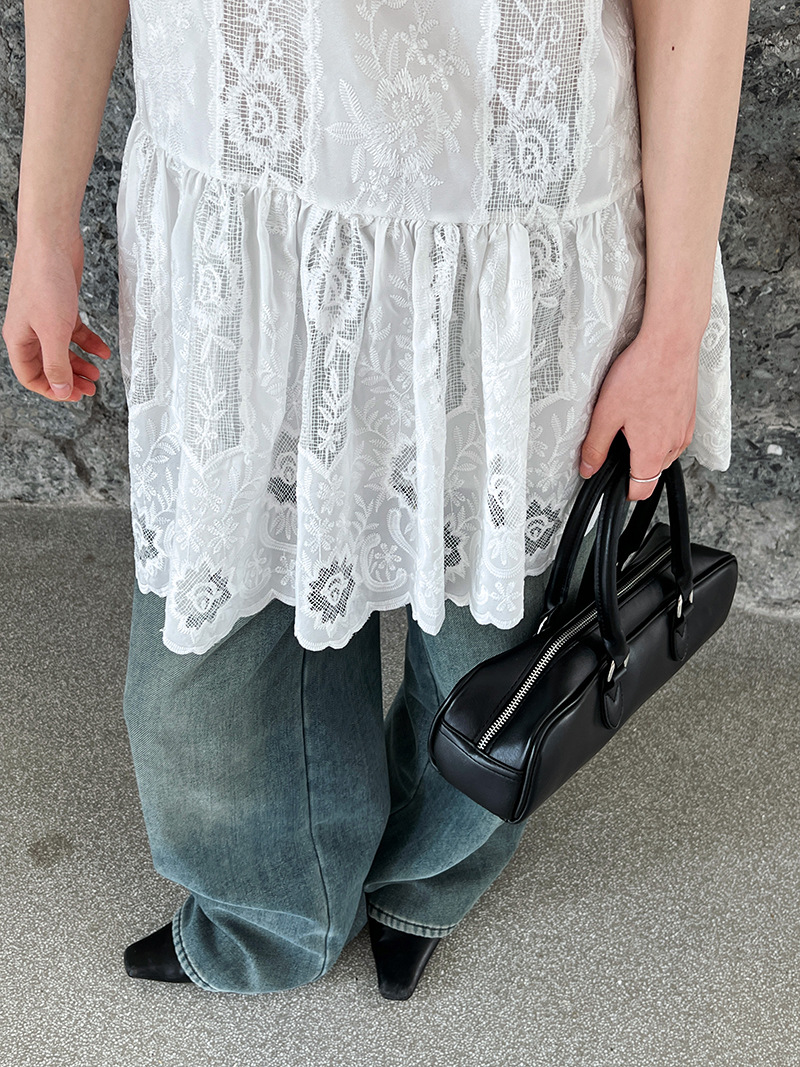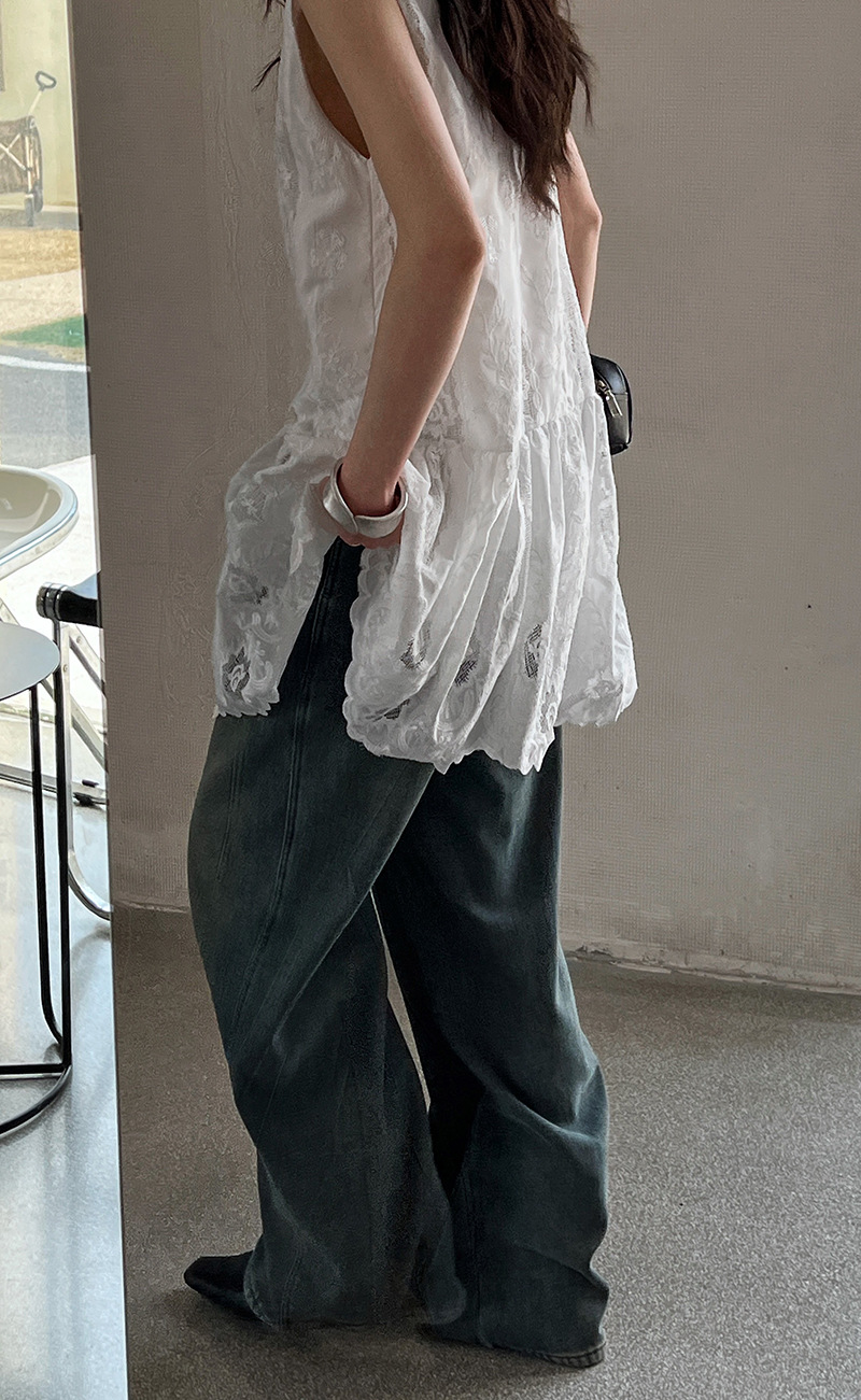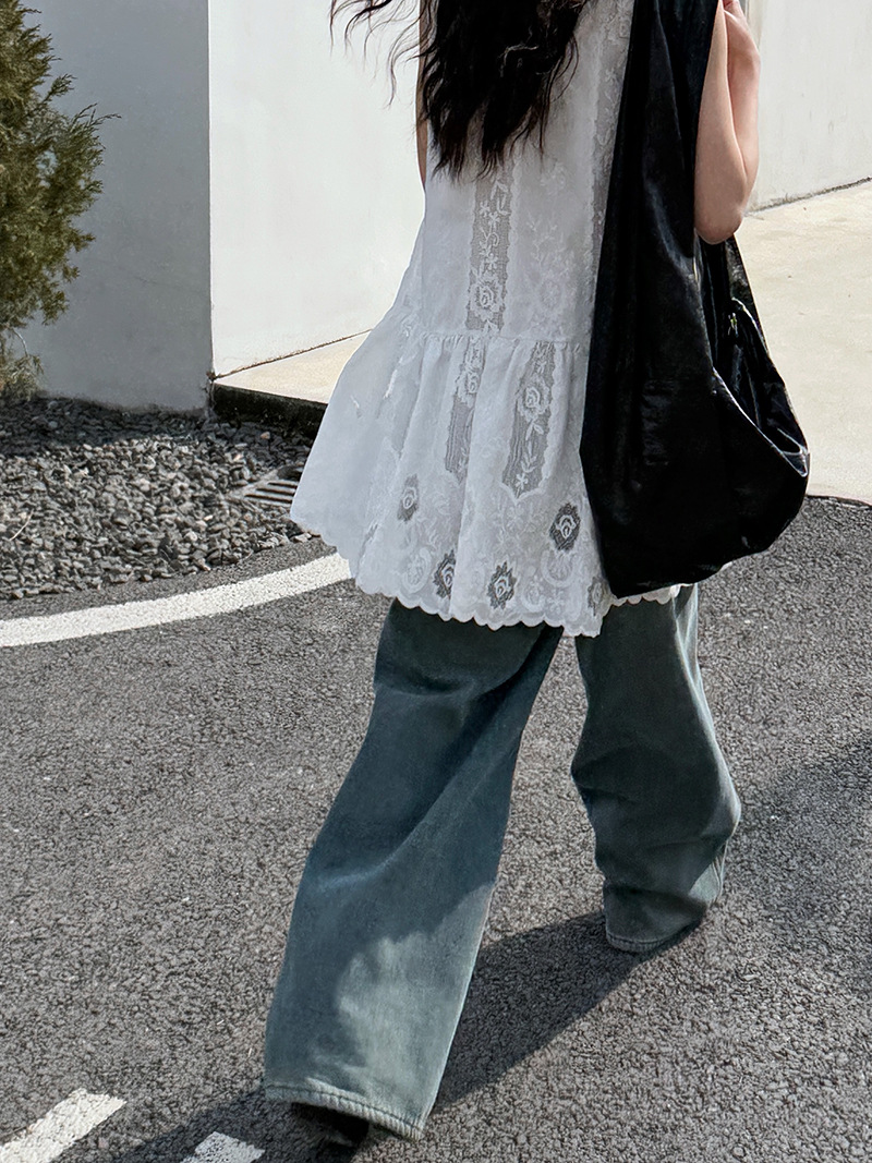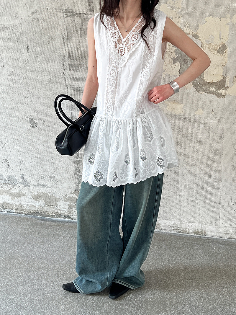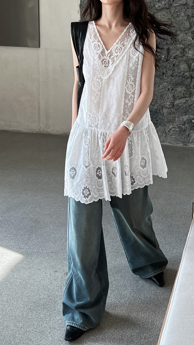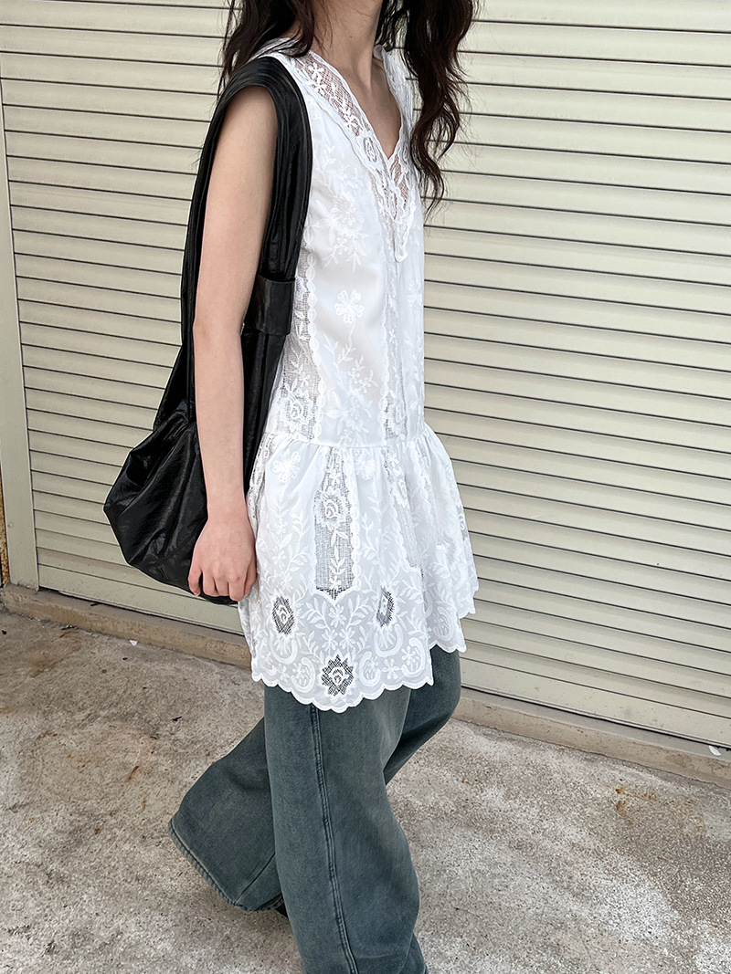 (48H出貨)法式蕾絲拼接刺繡背心裙上衣