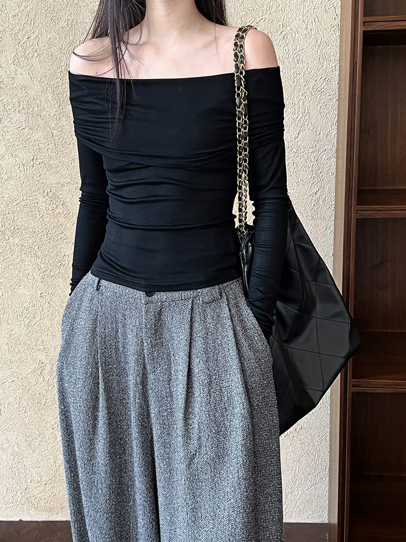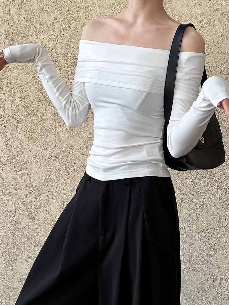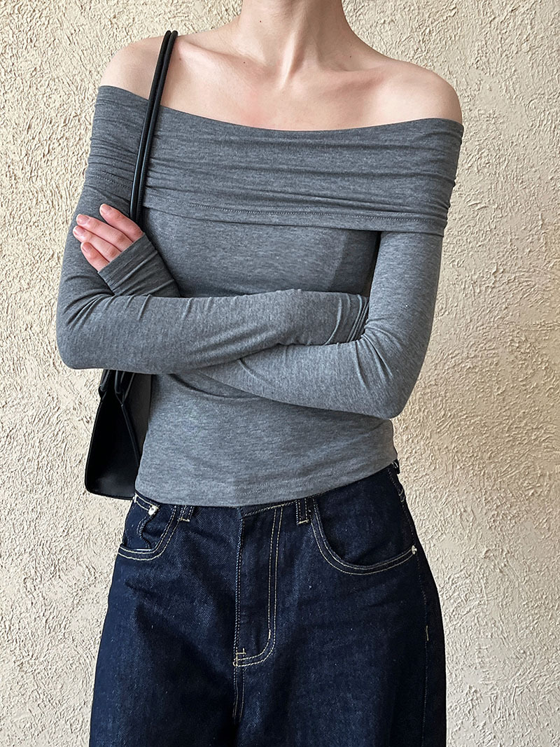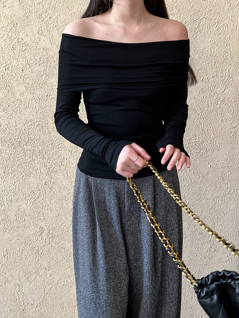 (48H出貨)純欲露肩性感設計一字肩長袖上衣-3色